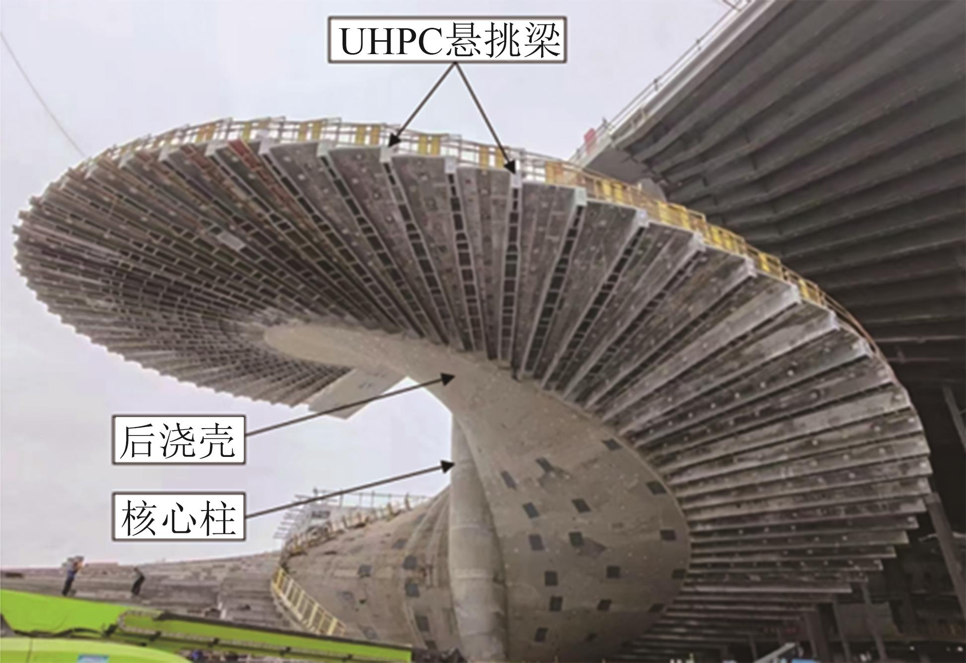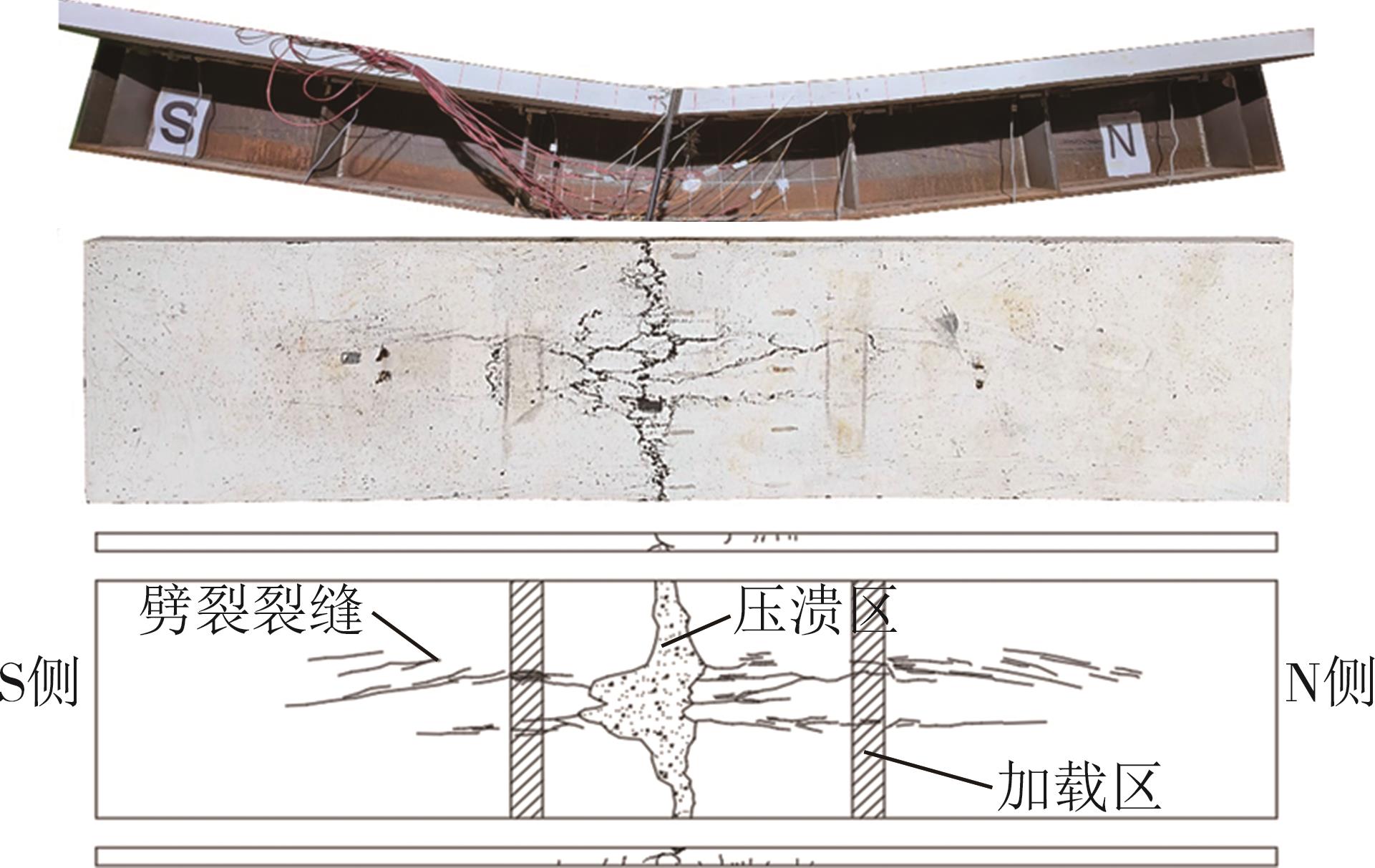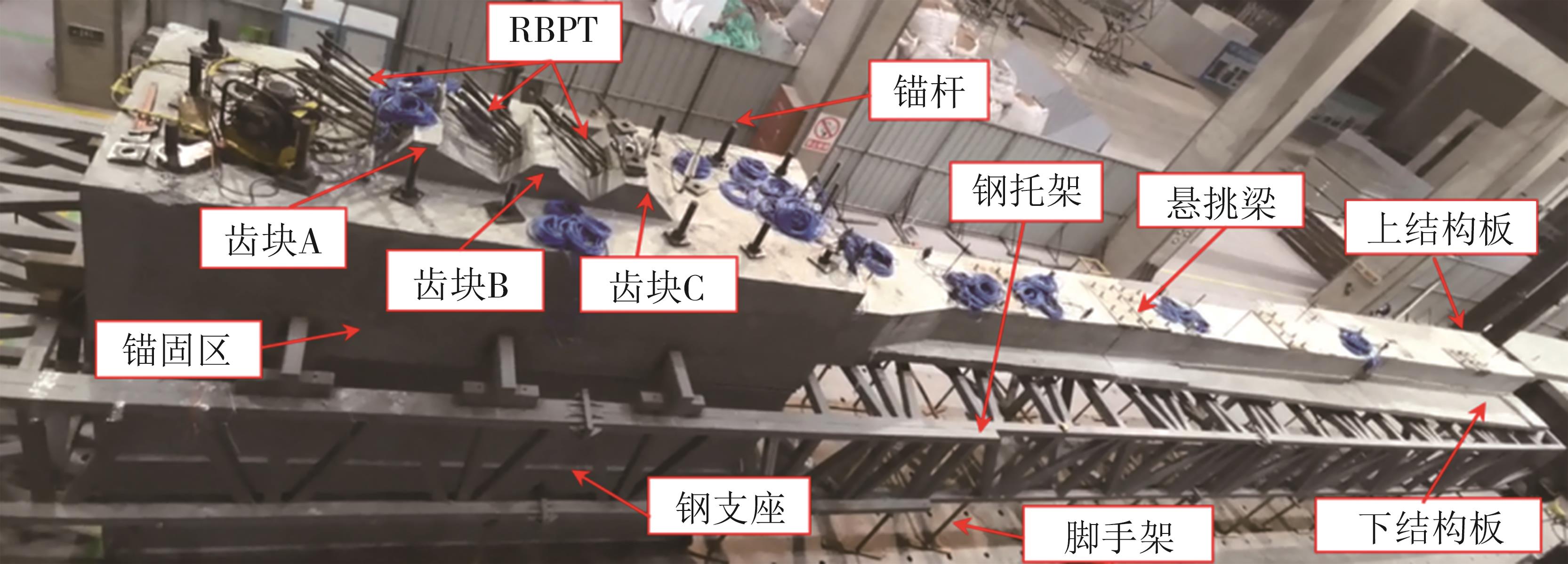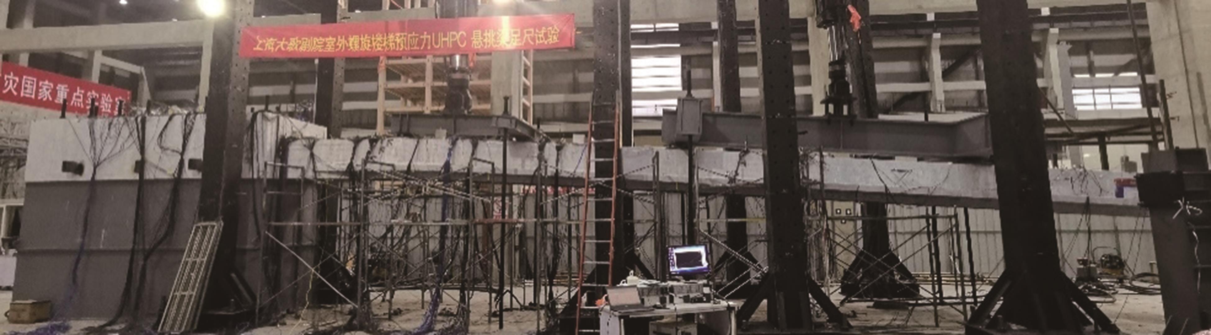 摘要:为了探究缓粘结预应力超高性能混凝土(RBP-UHPC)悬挑梁的受力性能,以上海大歌剧院悬挑楼梯为背景,进行了2根足尺RBP-UHPC变截面悬挑梁的受弯性能试验.试验结果表明,加载过程中,各关键截面依次开裂,关键截面附近裂缝最密集;离关键变截面越远,裂缝越短越稀疏;悬挑梁破坏截面在距离梁根部2.6 m;越接近破坏截面的UHPC和钢筋应变发展越快,越早达到UHPC的弹性压应变和钢筋的屈服应变;两根梁破坏截面的安全裕度分别为1.97和1.81,具有较好的结构性能,能够满足实际工程的强度要求.提出了带有结构板的π形变截面RBP-UHPC悬挑梁抗弯承载力的计算模型.相比于现有规范,本文模型的计算结果与已有试验的结果吻合最好,且偏于安全.
