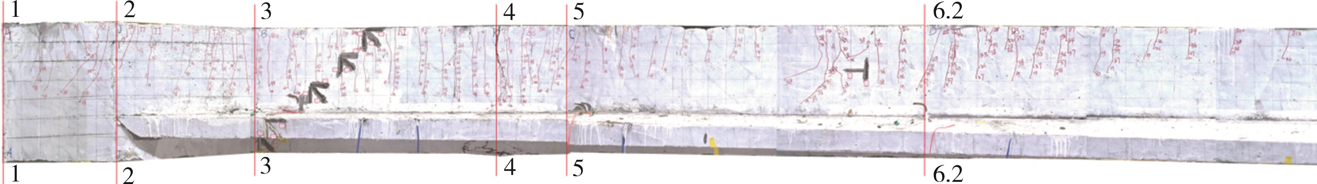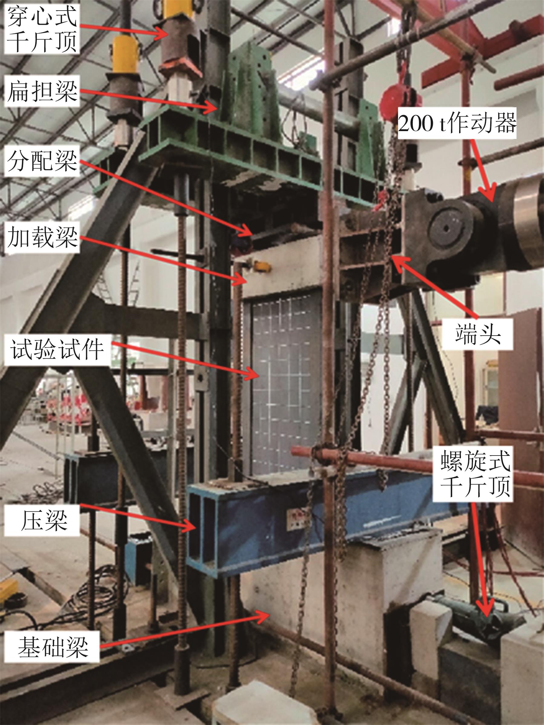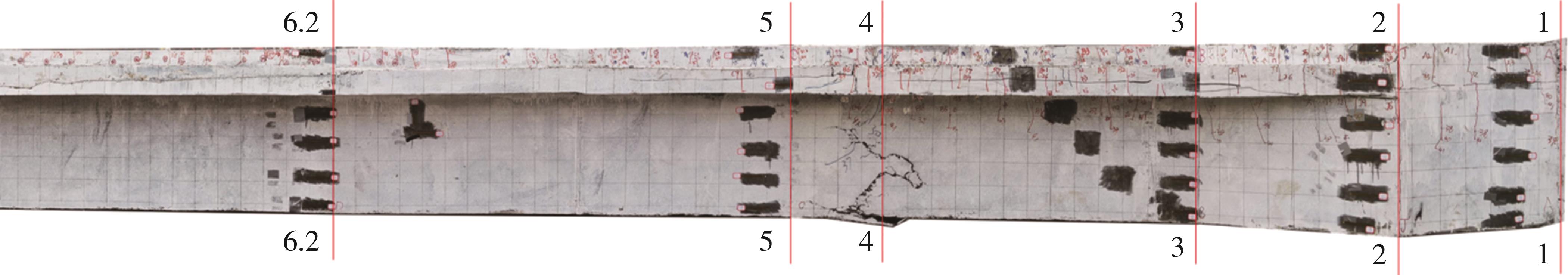摘要:为了探究缓粘结预应力超高性能混凝土(RBP-UHPC)悬挑梁的受力性能,以上海大歌剧院悬挑楼梯为背景,进行了2根足尺RBP-UHPC变截面悬挑梁的受弯性能试验.试验结果表明,加载过程中,各关键截面依次开裂,关键截面附近裂缝最密集;离关键变截面越远,裂缝越短越稀疏;悬挑梁破坏截面在距离梁根部2.6 m;越接近破坏截面的UHPC和钢筋应变发展越快,越早达到UHPC的弹性压应变和钢筋的屈服应变;两根梁破坏截面的安全裕度分别为1.97和1.81,具有较好的结构性能,能够满足实际工程的强度要求.提出了带有结构板的π形变截面RBP-UHPC悬挑梁抗弯承载力的计算模型.相比于现有规范,本文模型的计算结果与已有试验的结果吻合最好,且偏于安全.