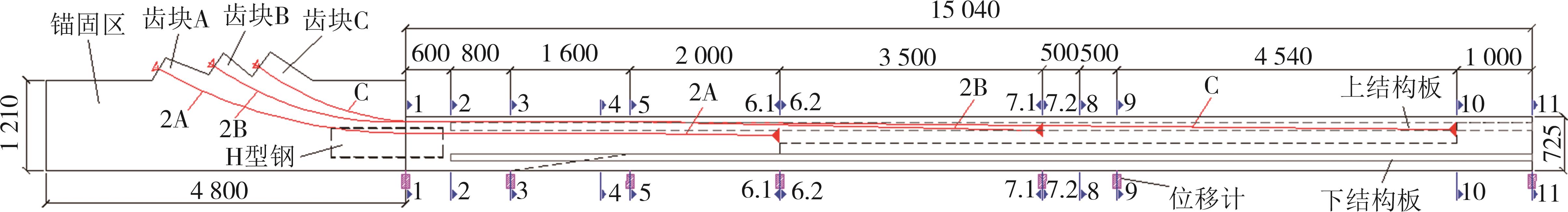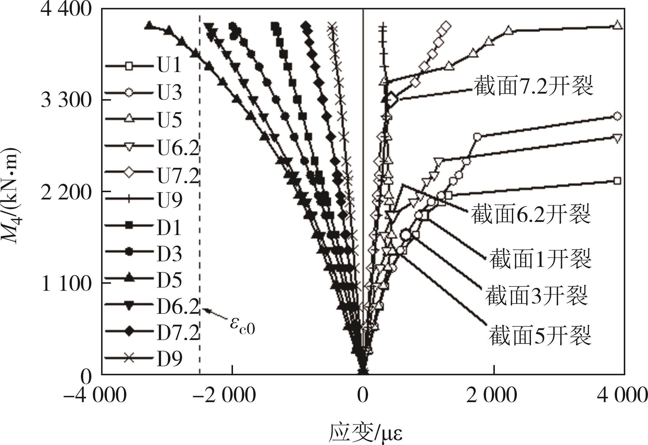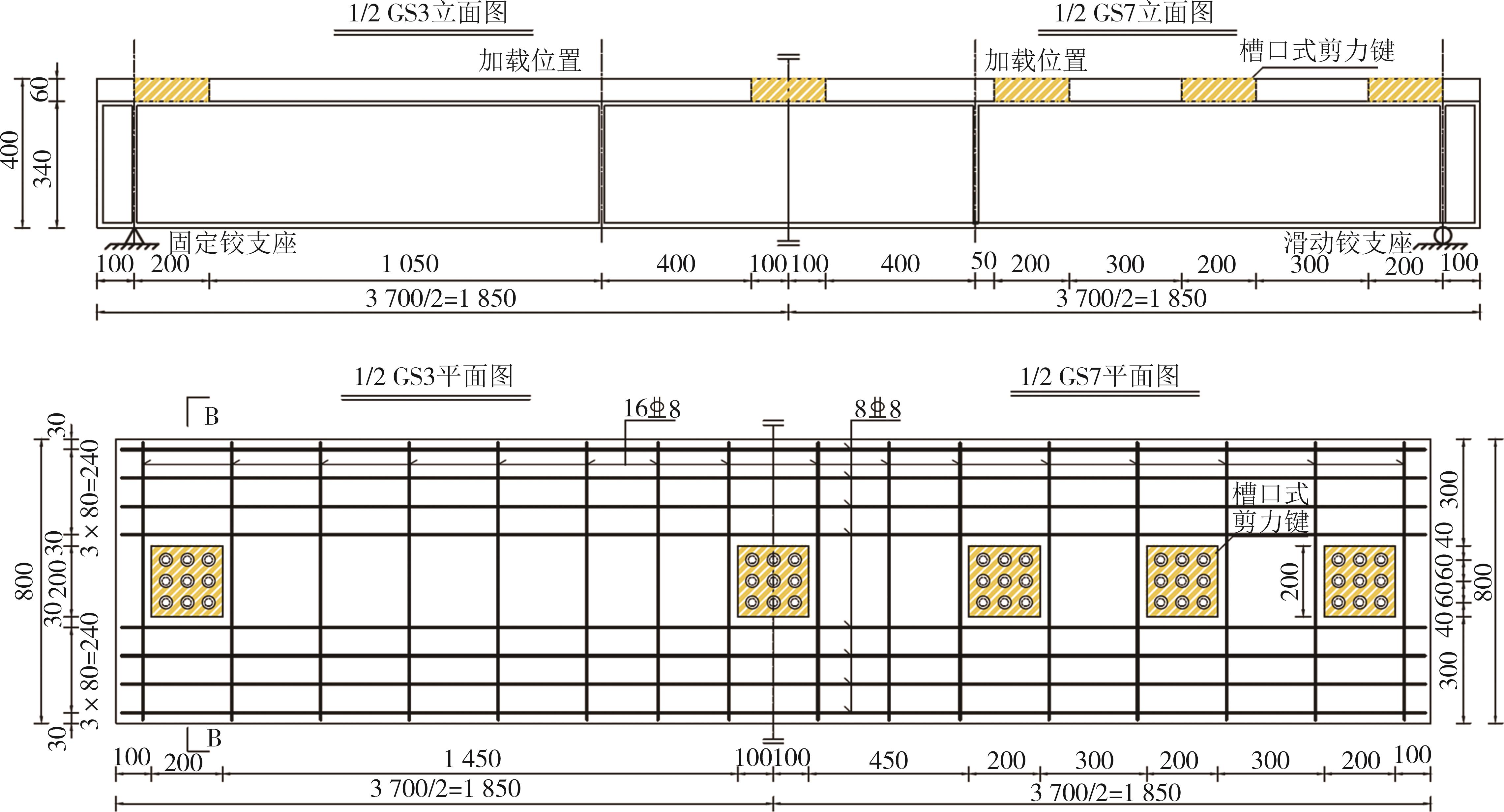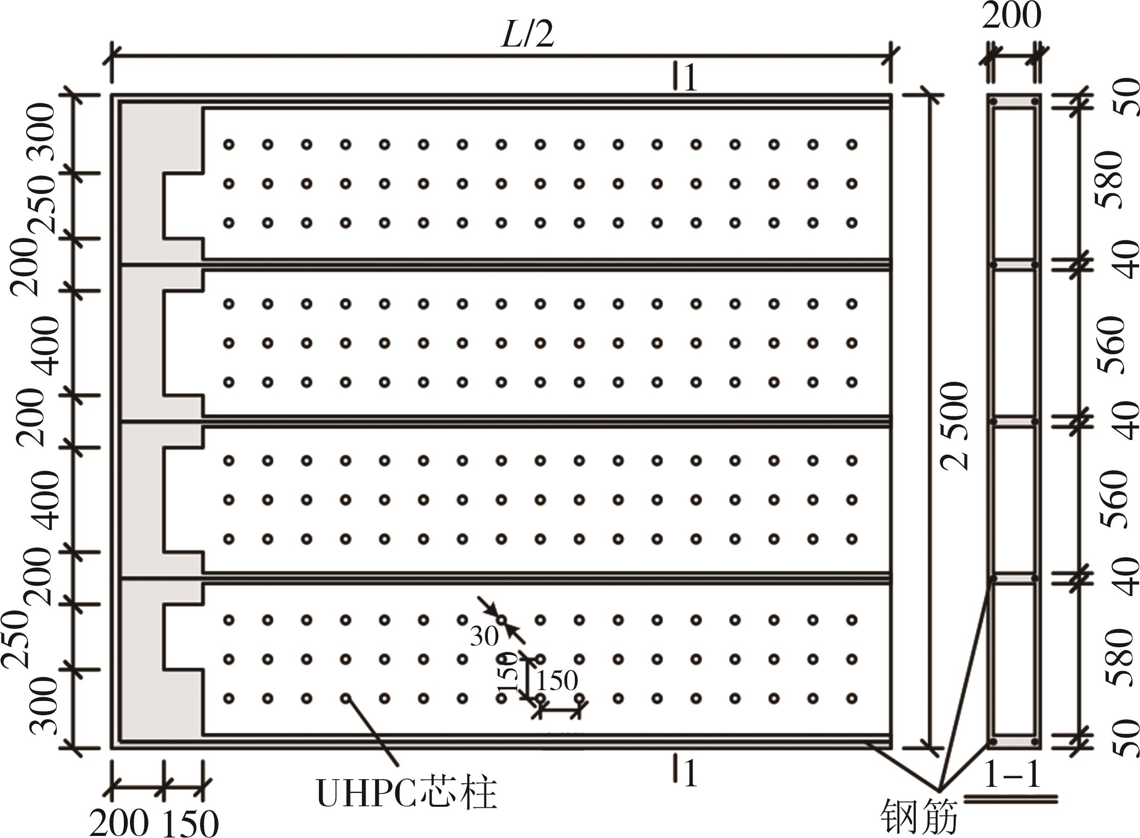 摘要:为了探究缓粘结预应力超高性能混凝土(RBP-UHPC)悬挑梁的受力性能,以上海大歌剧院悬挑楼梯为背景,进行了2根足尺RBP-UHPC变截面悬挑梁的受弯性能试验.试验结果表明,加载过程中,各关键截面依次开裂,关键截面附近裂缝最密集;离关键变截面越远,裂缝越短越稀疏;悬挑梁破坏截面在距离梁根部2.6 m;越接近破坏截面的UHPC和钢筋应变发展越快,越早达到UHPC的弹性压应变和钢筋的屈服应变;两根梁破坏截面的安全裕度分别为1.97和1.81,具有较好的结构性能,能够满足实际工程的强度要求.提出了带有结构板的π形变截面RBP-UHPC悬挑梁抗弯承载力的计算模型.相比于现有规范,本文模型的计算结果与已有试验的结果吻合最好,且偏于安全.
