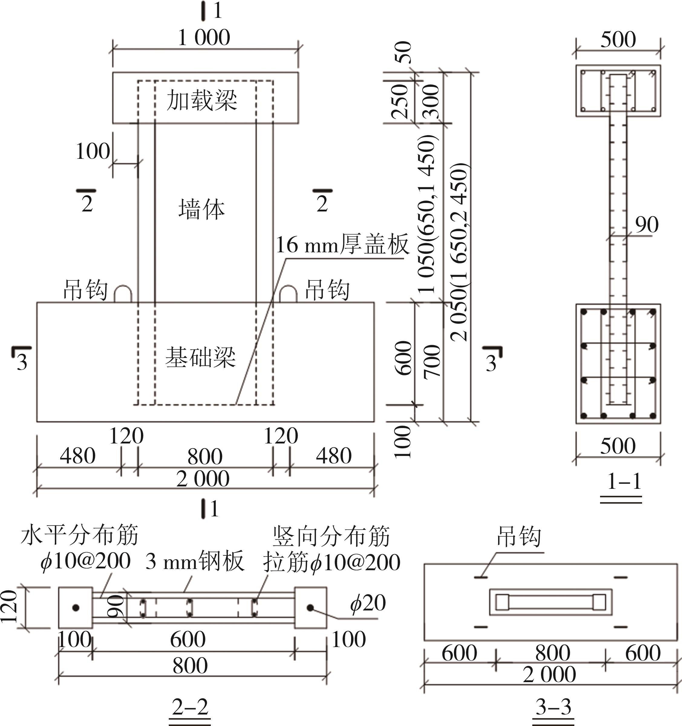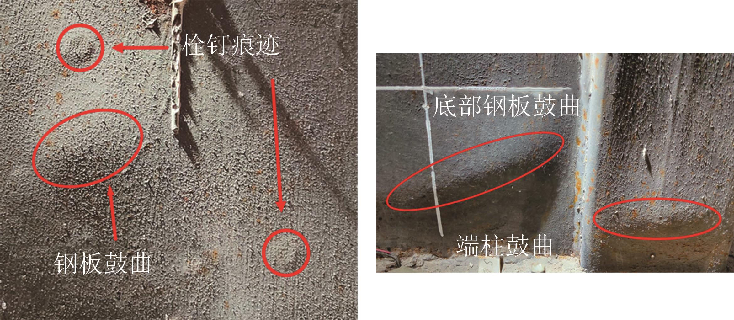 摘要:为研究栓钉连接双钢板-再生混凝土组合剪力墙的抗震性能,设计并完成了3组不同剪跨比试件拟静力加载试验.基于此试验建立数值模型,研究再生骨料取代率、混凝土强度等对抗震性能的影响.试验结果表明:结构钢板鼓曲现象主要出现在试件底部;剪跨比是影响结构破坏的重要因素,随剪跨比增大,试件破坏形态由剪切破坏转变为压弯破坏,钢板表面观察到明显栓钉痕迹;剪跨比从1分别增大至1.5和2,极限荷载分别降低了25.9%、45.0%,位移延性系数分别增大了9.2%、29.7%,等效粘滞阻尼系数分别增大了26.0%、89.3%;各试件破坏位移角在1/63~1/45之间,能够满足抗震规范的要求,具有良好的变形性能.通过数值模拟发现,提高再生混凝土强度等级,能够有效提高试件的初始抗侧刚度和极限承载力,减小轴压比、增大外包钢板强度均能提高试件抗剪承载力和抗侧刚度.考虑再生混凝土和钢板的组合作用,结合已有规范提出的组合剪力墙计算公式具有8%~15%的冗余度,计算结果偏于安全,计算方法较为合理.