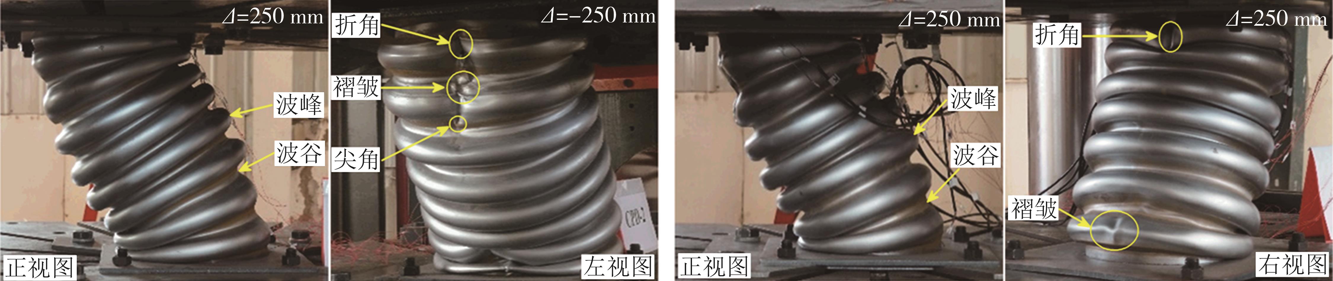摘要:提出一种用于基础隔震结构的新型耗能装置—低屈服点钢波纹管阻尼器,该阻尼器具有水平各向力学性能相同、水平剪切大变形能力等显著特征.首先,通过开展低周往复加载试验,对低屈服点钢波纹管阻尼器的破坏模式、滞回特性、承载能力、变形特征、耗能能力等进行了研究,并分析了波纹管高度、平均直径等构造参数对阻尼器力学性能的影响;接着,利用ABAQUS建立了阻尼器的精细化有限元模型,分析阻尼器构造参数对其力学性能的影响规律,并给出了阻尼器各力学性能指标的预测公式.结果表明:波纹管的破坏主要发生在与加载方向一致且靠近连接板的波纹管上,与加载方向垂直侧的变形相对较小;各阻尼器试件的滞回曲线均比较饱满,表现出良好的耗能能力和水平大变形能力;阻尼器均发生了明显的屈服和强化过程,屈服前水平刚度较大,屈服后显著降低,约为屈服前的20%~32%;增加波纹管高度或者减小波纹管直径时,阻尼器的承载能力降低,水平刚度减小,滞回耗能也减少,但变形能力增大;提高波纹管材料强度和厚度时,阻尼器的承载能力显著提高,耗能能力增强.提出的计算公式能够较准确地预测阻尼器的基本力学性能.