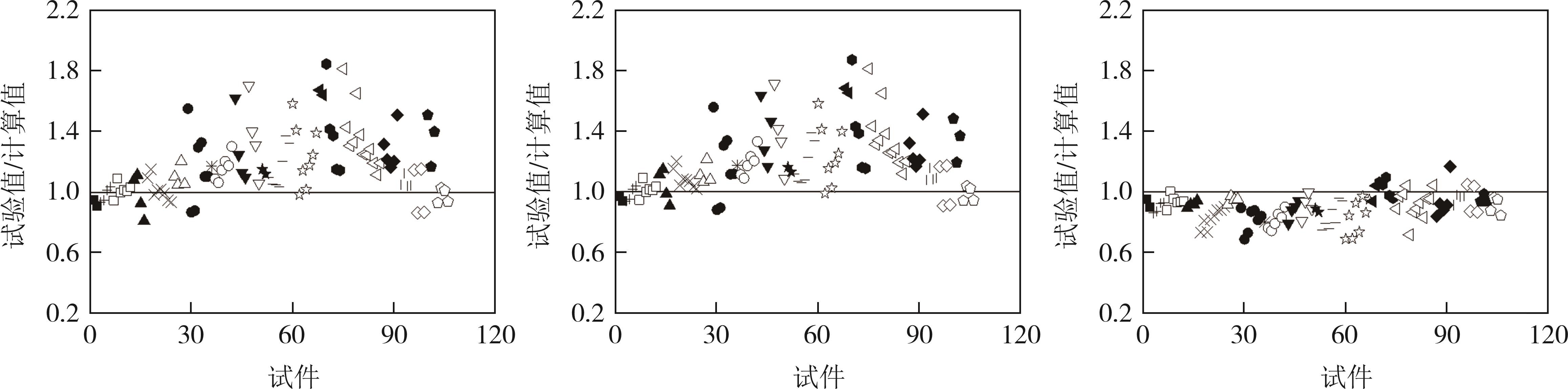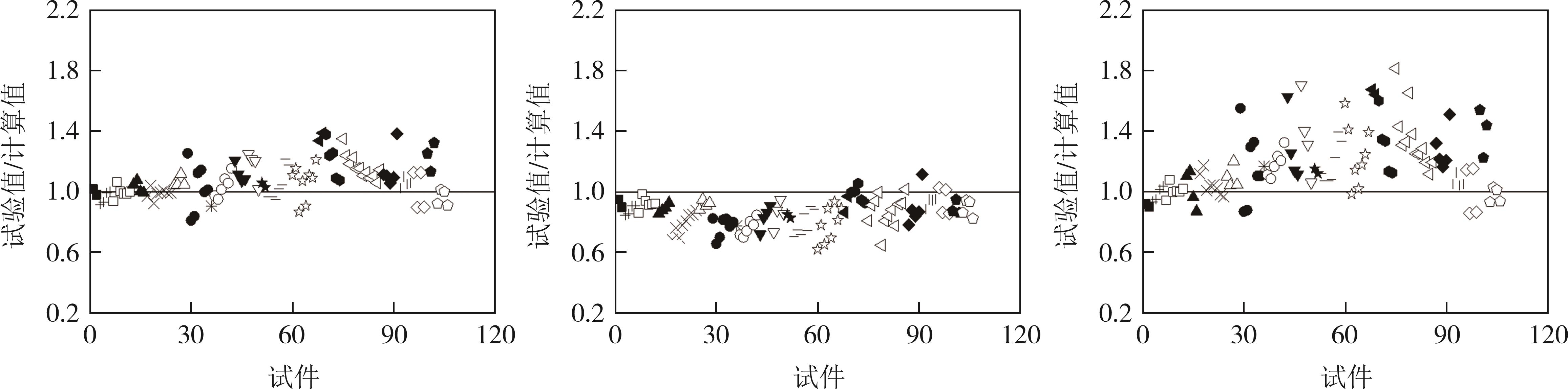 摘要:为了弥补现有钢筋混凝土开洞梁抗剪承载能力模型的不足,考虑破坏模式、洞口形状、洞口尺寸、洞口位置(水平和竖向)、加固配筋形式以及混凝土强度等参数,基于规范建立了抗剪承载力统一模型.通过159个试验数据确定抗剪承载力统一模型,并用来评估现有模型和统一模型.结果表明:按照破坏模式建立抗剪承载力模型是合理的;抗剪承载力统一模型具有较高的准确度,孔侧剪压破坏模式下抗剪承载力模型的均值AV、整体绝对误差IAE和相对平均误差MRE分别为1.035、0.177和0.231,弦杆剪切破坏模式下抗剪承载力模型的AV、IAE和MRE分别为1.007、0.166和0.212;随着混凝土强度的增加,可靠指标β逐渐增加,随着洞口高度的增加,可靠指标β逐渐降低;当洞口高度为0.5de(截面有效高度),可靠指标β仍然能够满足规范要求,建议洞口高度不超过0.4de.本文建立的抗剪承载力统一模型具有较高的适用性、准确性和可靠性.