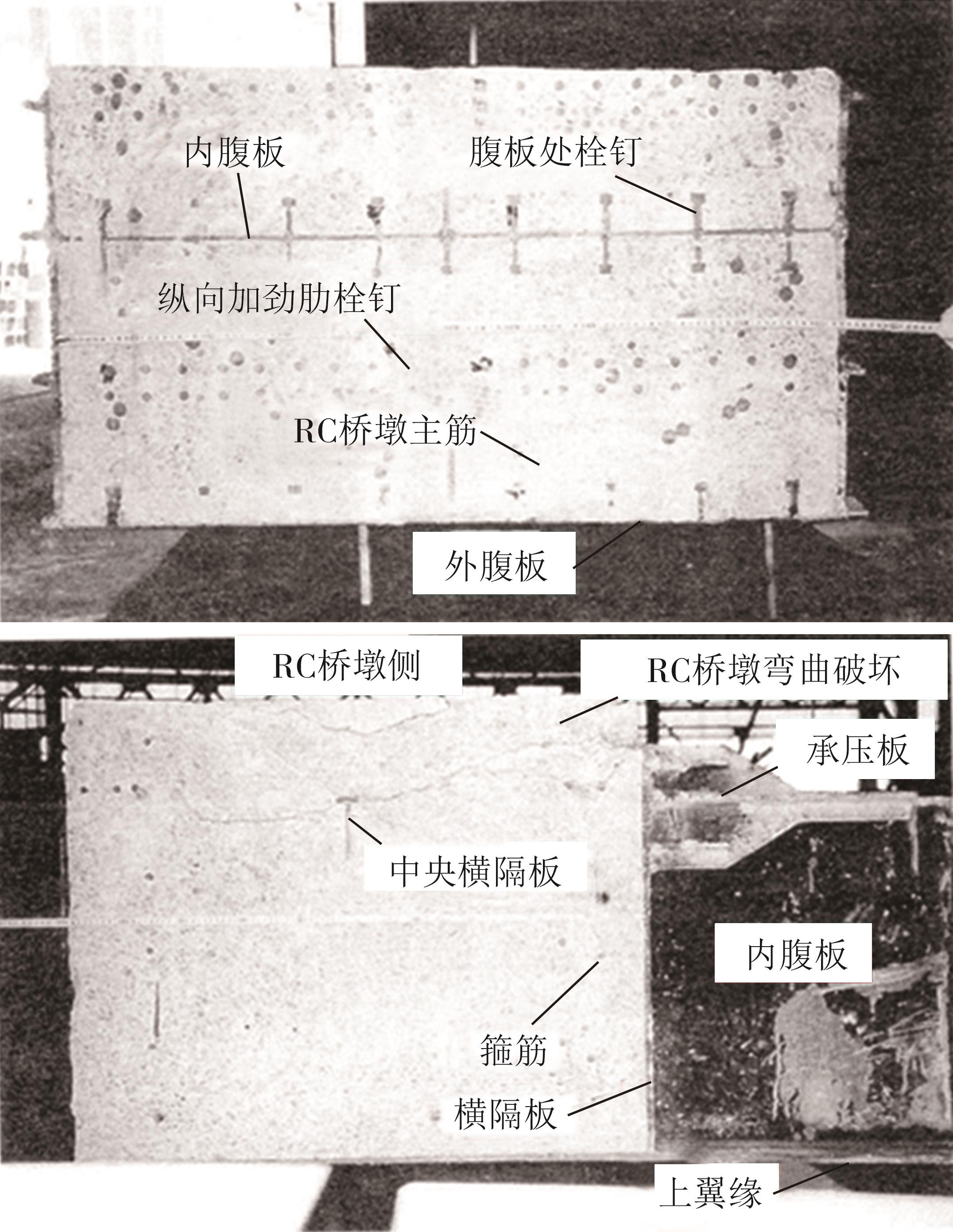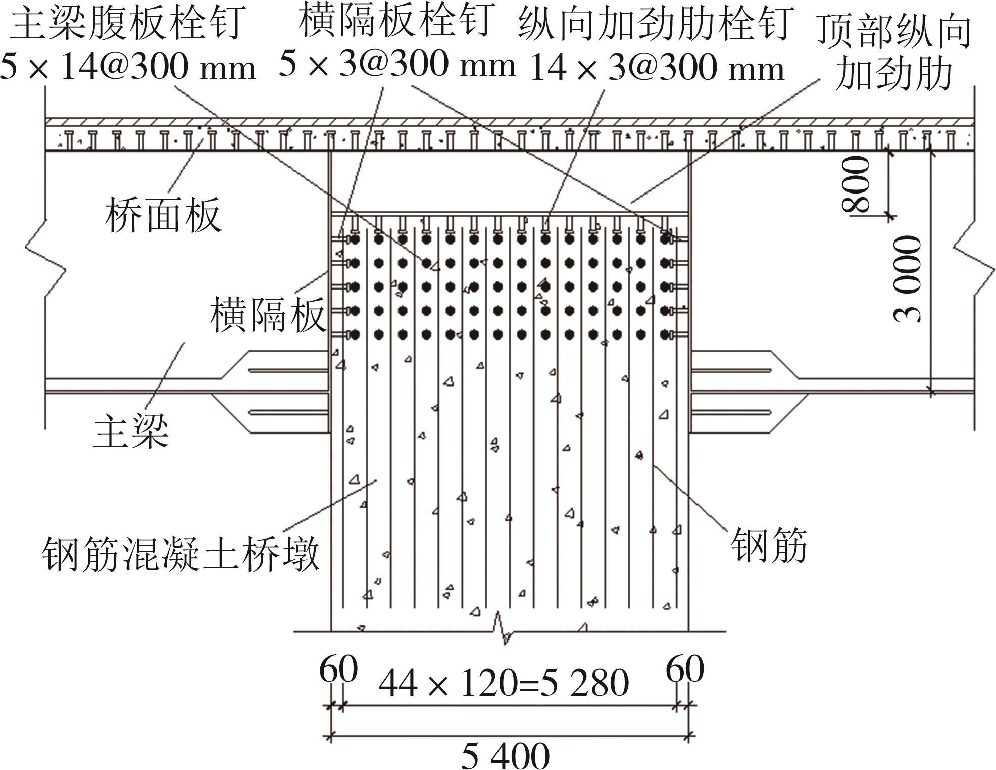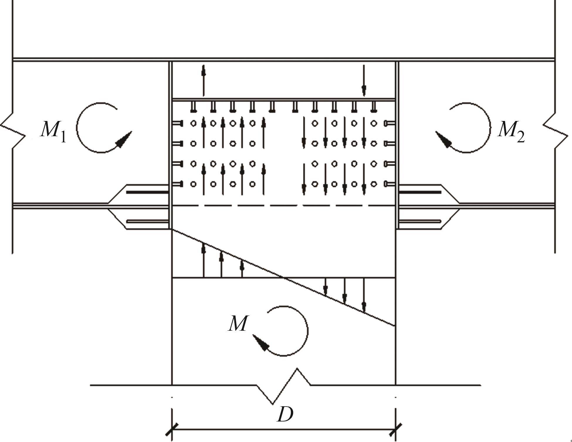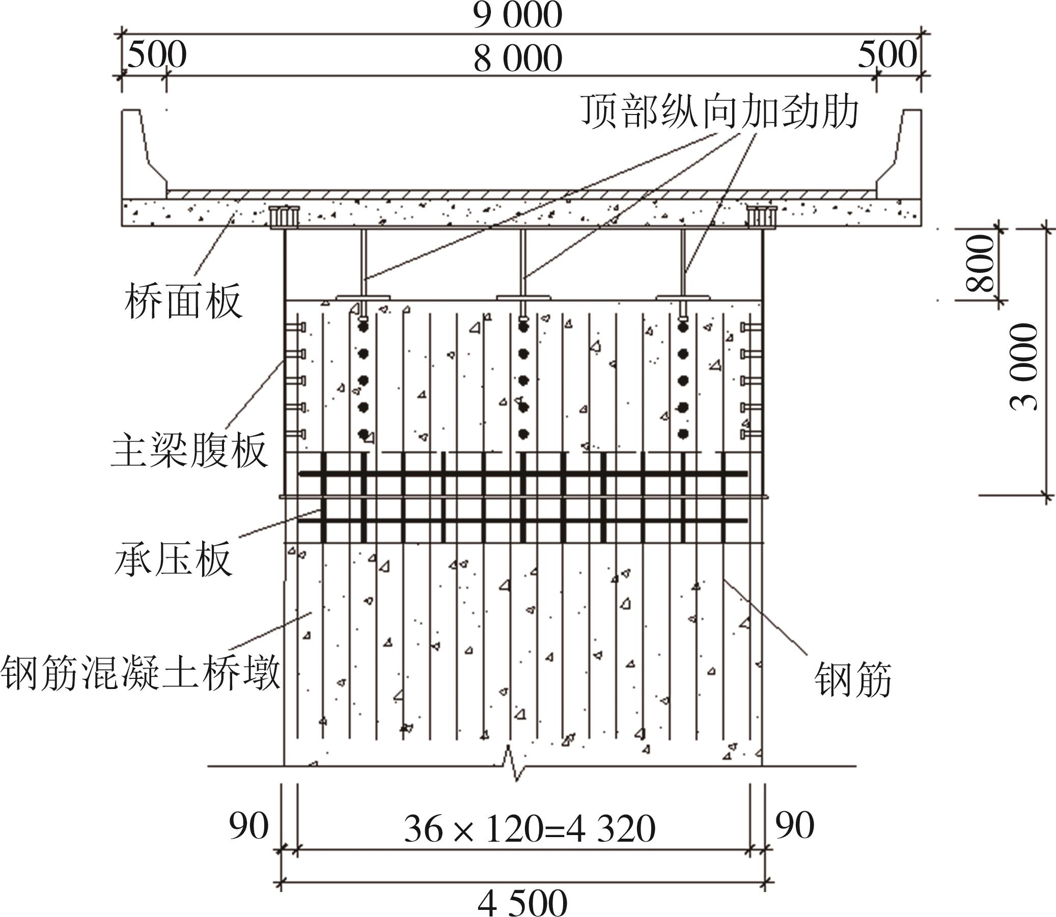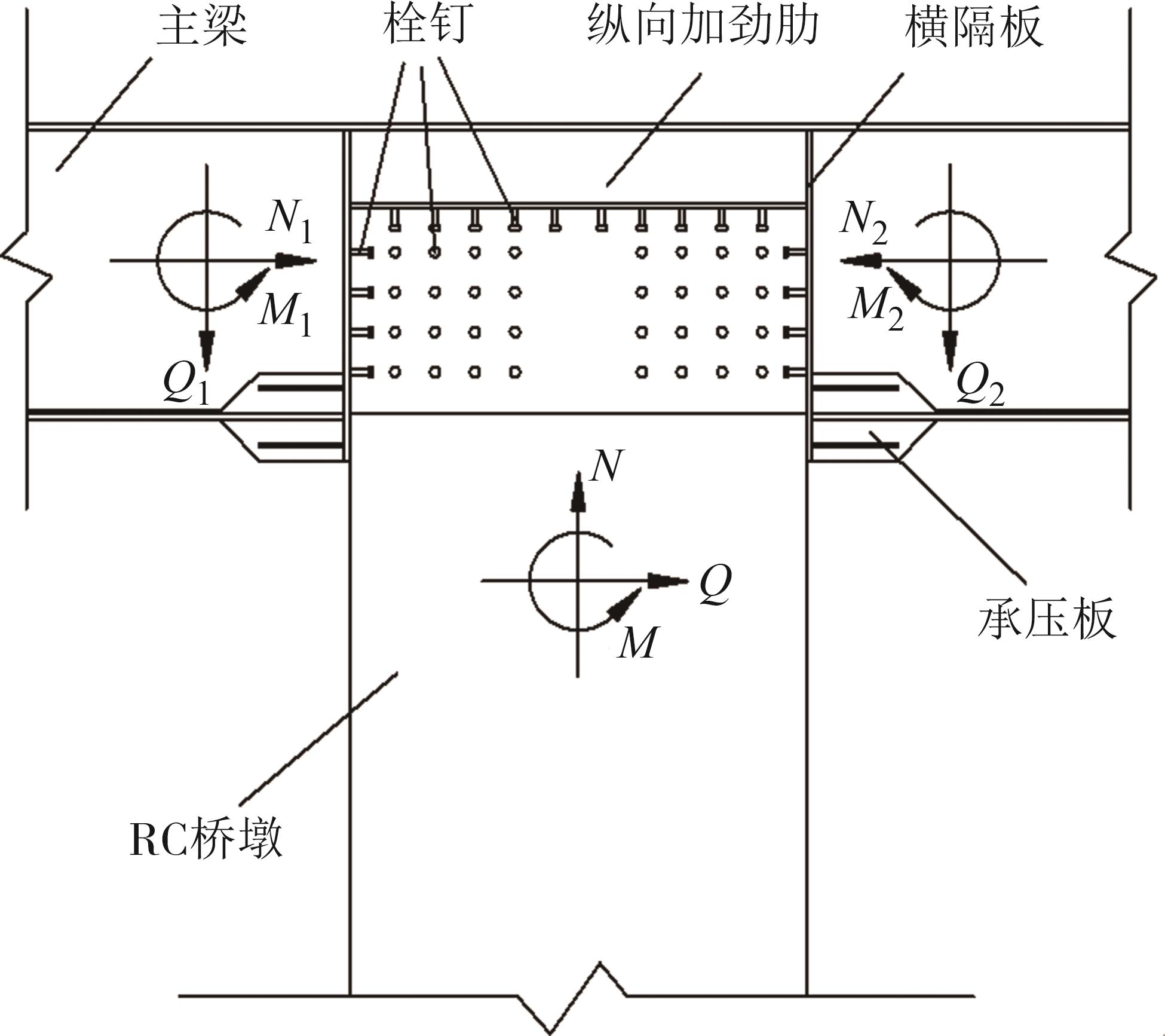 摘要:在箱形组合刚构桥墩梁节点位置的受压区箱梁底部设置承压板,可增大受压面积,避免箱梁底板应力集中和局部屈曲.承压板式墩梁节点传力机理与适用性尚不明确,缺乏相应的节点构造设计方法.鉴于此,本文通过验证后的实体有限元计算模型,开展承压板式箱形组合刚构桥试设计,研究承压板式墩梁节点的传力机理和荷载占比,建立墩梁节点内力计算方法,开展承压板构造参数和适用性分析.研究结果表明:在试设计构造尺寸和材料特性确定基础上,承压板式墩梁节点在轴压力和轴拉力作用时,主要通过箱梁腹板传力,占比分别约为60%和50%.弯矩传力机理与轴力类似,剪力作用下,剪力背向侧主要通过纵向加劲肋传力,占比约为-80%;剪力同向侧主要通过承压板传力,占比约为80%.理论计算结果与有限元计算结果偏差不大于8.8%,可用于承压板式墩梁节点内力计算.建议承压板构造设计中,相对横向间距取1/6、相对板厚取1.当墩高超过15 m,梁墩线刚度比大于0.047,承压板式墩梁节点的钢梁应力小于常规形式墩梁节点的钢梁应力;当墩高超过30 m后,采用承压板构造,可显著降低箱形组合刚构桥墩梁节点位置的钢梁应力.