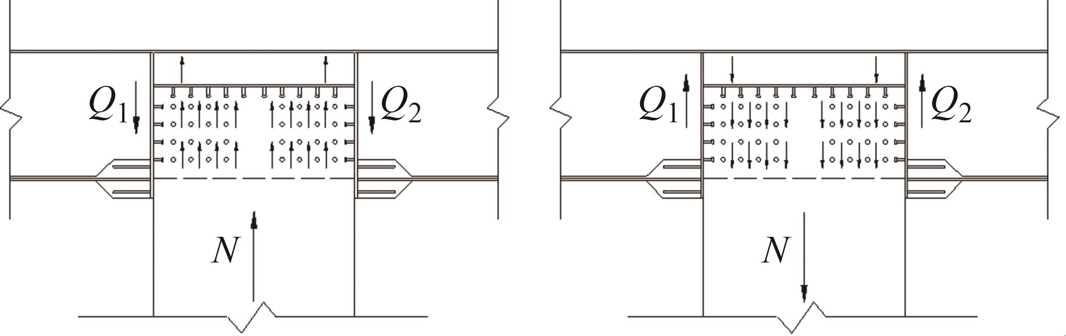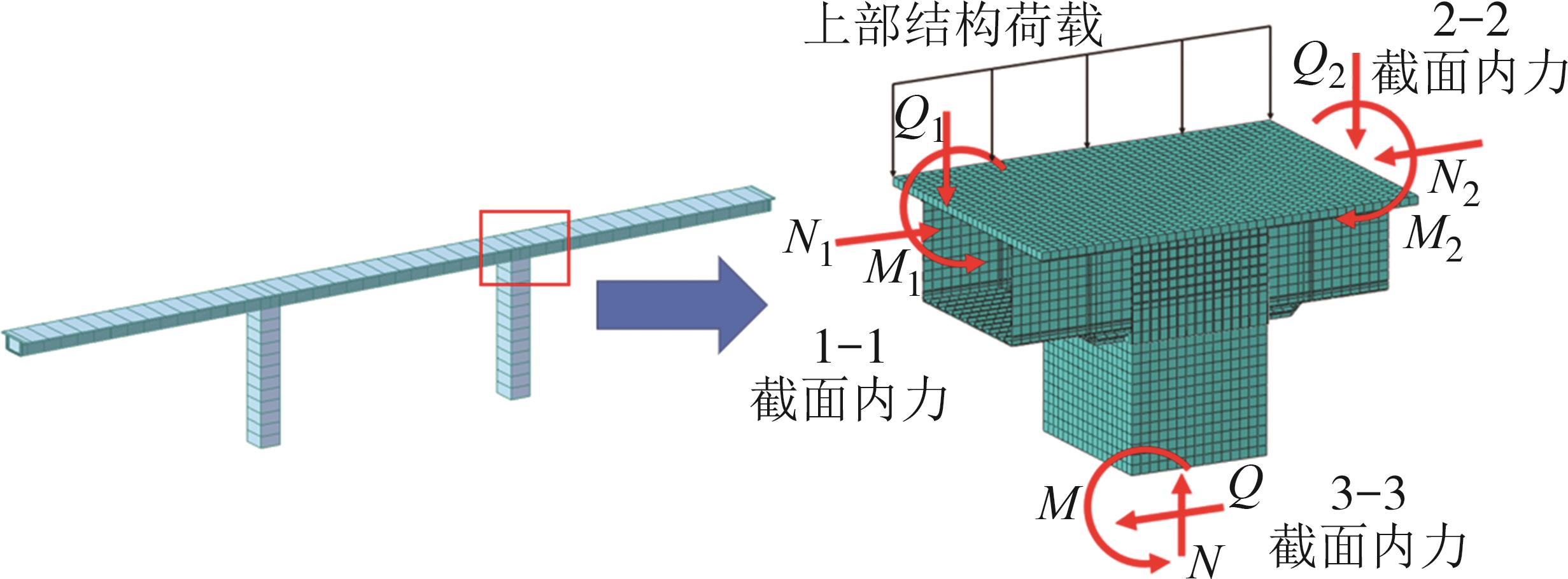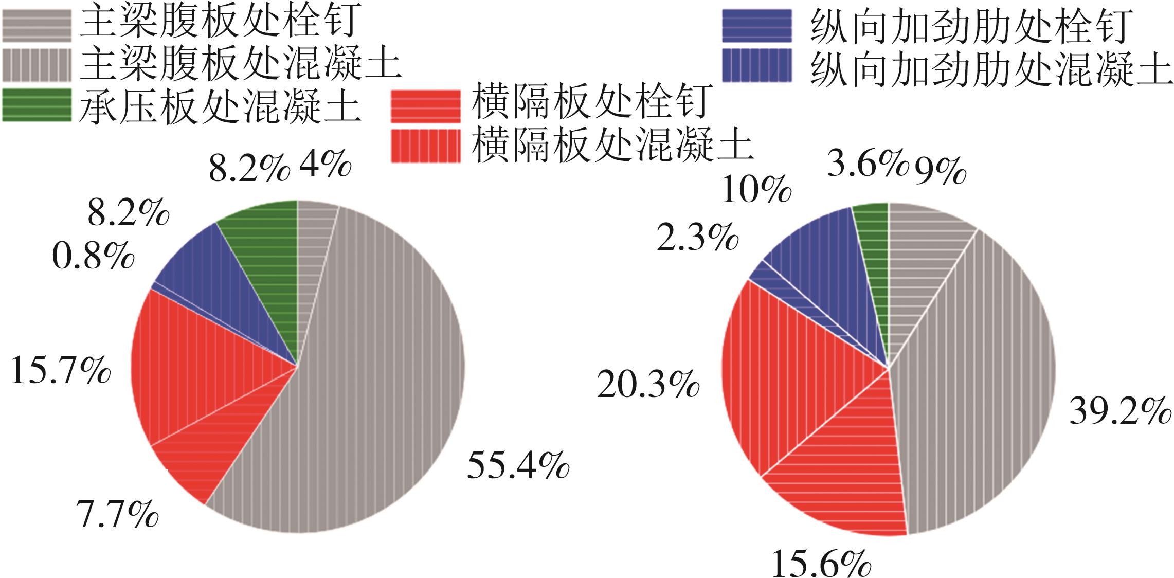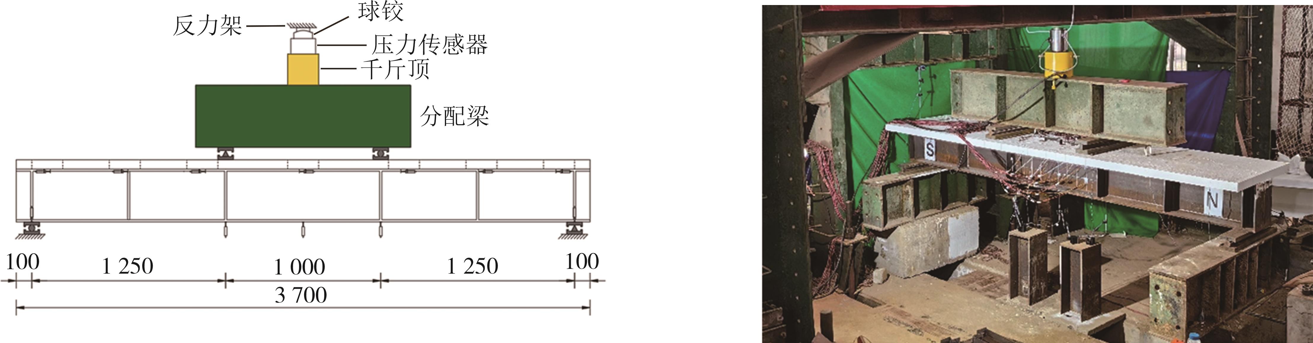 摘要:在箱形组合刚构桥墩梁节点位置的受压区箱梁底部设置承压板,可增大受压面积,避免箱梁底板应力集中和局部屈曲.承压板式墩梁节点传力机理与适用性尚不明确,缺乏相应的节点构造设计方法.鉴于此,本文通过验证后的实体有限元计算模型,开展承压板式箱形组合刚构桥试设计,研究承压板式墩梁节点的传力机理和荷载占比,建立墩梁节点内力计算方法,开展承压板构造参数和适用性分析.研究结果表明:在试设计构造尺寸和材料特性确定基础上,承压板式墩梁节点在轴压力和轴拉力作用时,主要通过箱梁腹板传力,占比分别约为60%和50%.弯矩传力机理与轴力类似,剪力作用下,剪力背向侧主要通过纵向加劲肋传力,占比约为-80%;剪力同向侧主要通过承压板传力,占比约为80%.理论计算结果与有限元计算结果偏差不大于8.8%,可用于承压板式墩梁节点内力计算.建议承压板构造设计中,相对横向间距取1/6、相对板厚取1.当墩高超过15 m,梁墩线刚度比大于0.047,承压板式墩梁节点的钢梁应力小于常规形式墩梁节点的钢梁应力;当墩高超过30 m后,采用承压板构造,可显著降低箱形组合刚构桥墩梁节点位置的钢梁应力.