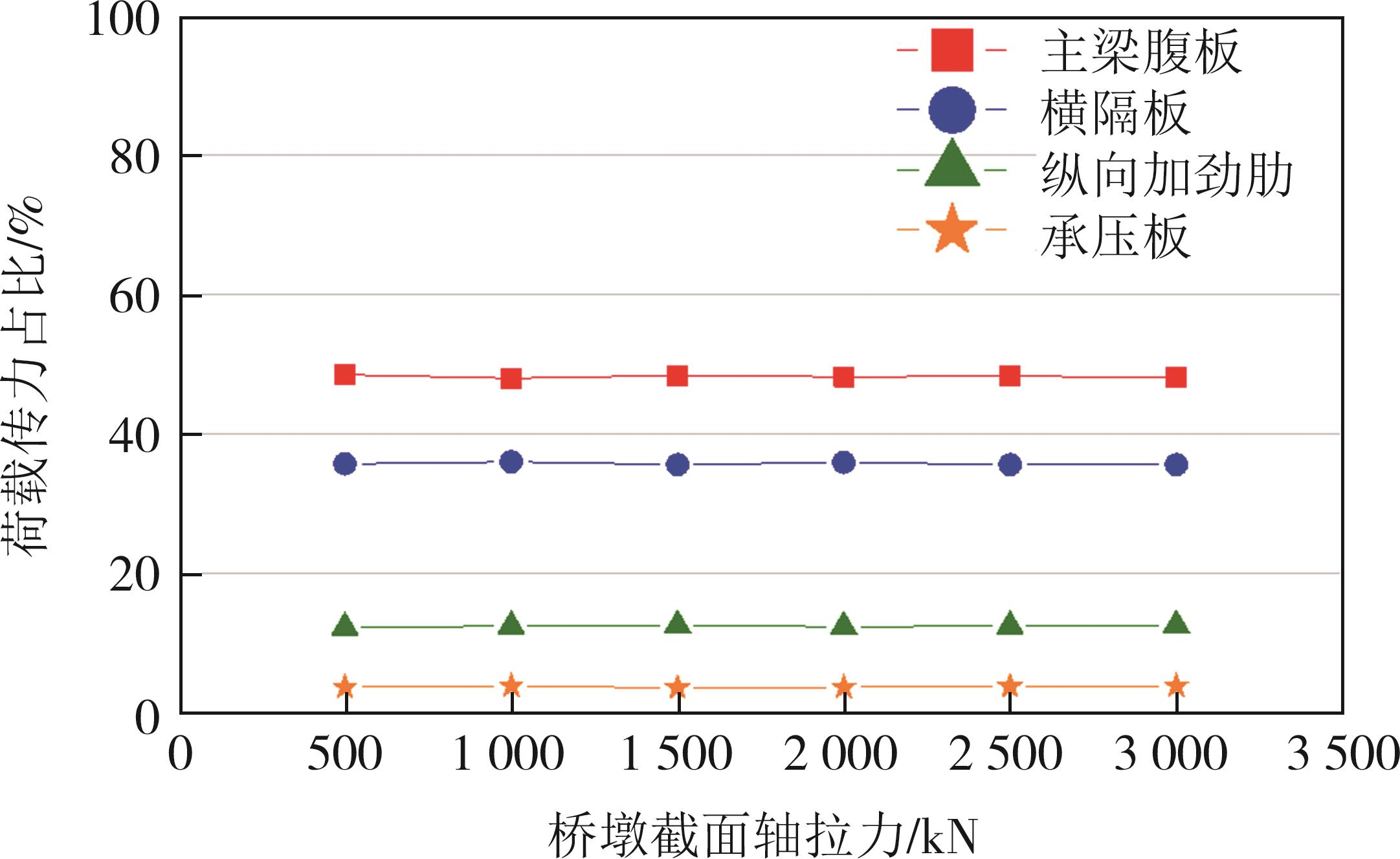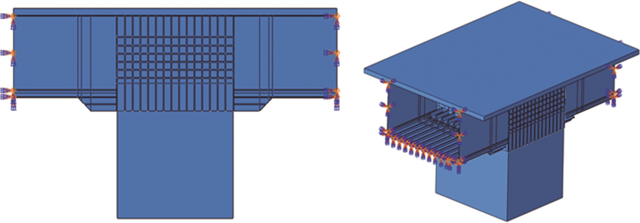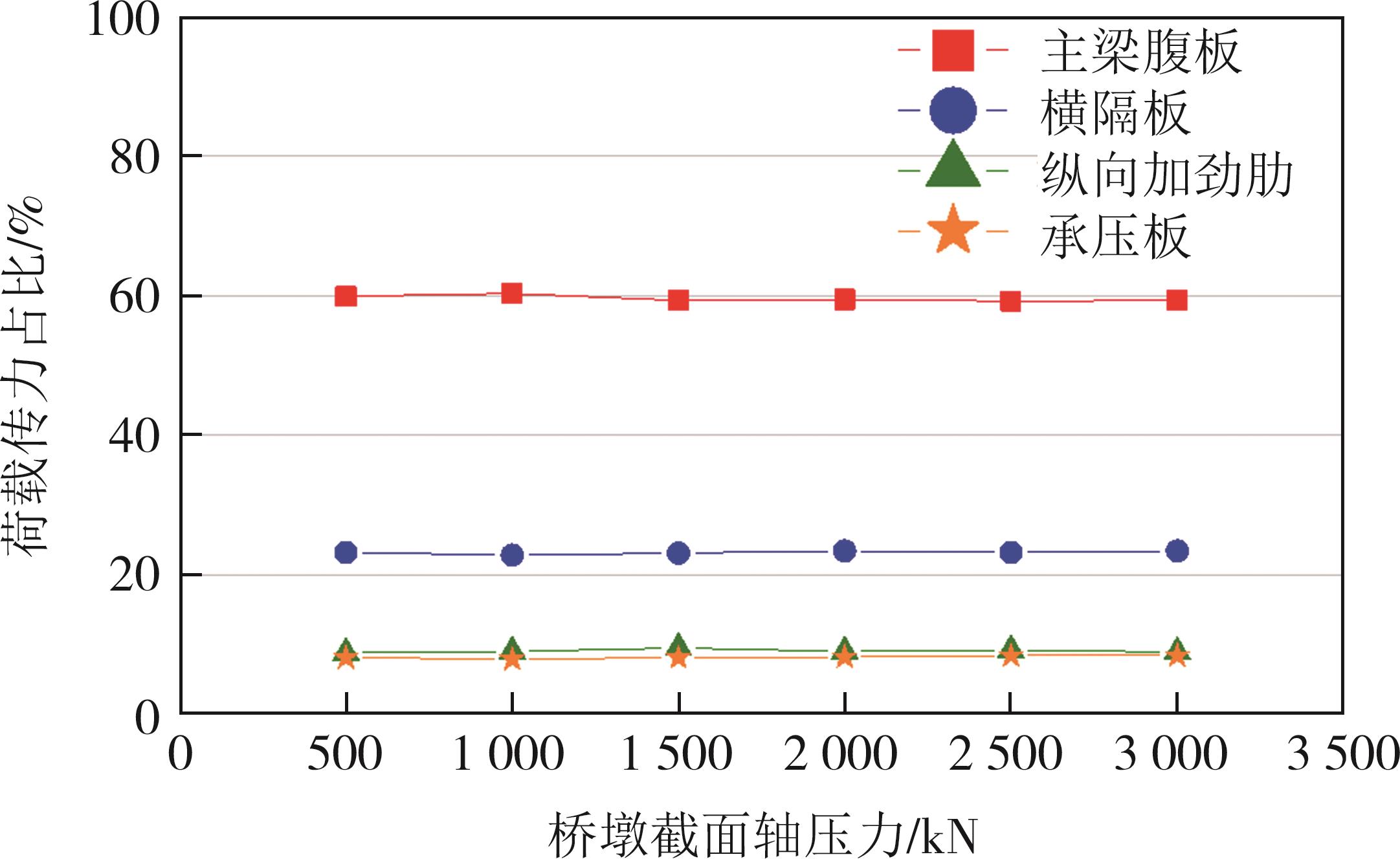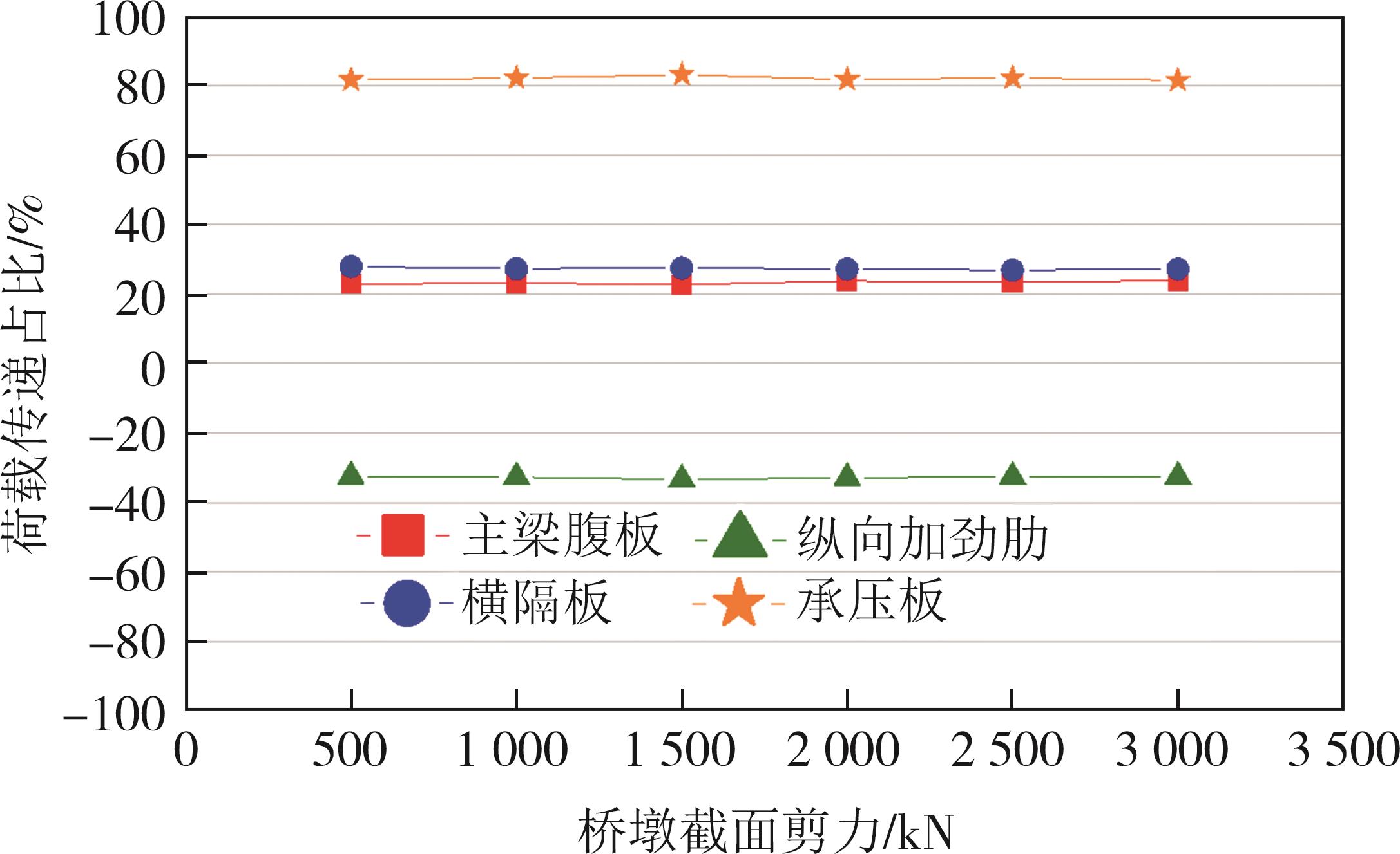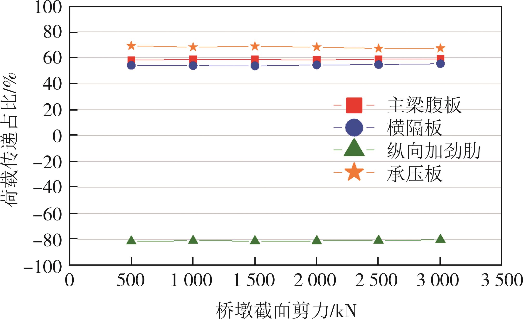 摘要:在箱形组合刚构桥墩梁节点位置的受压区箱梁底部设置承压板,可增大受压面积,避免箱梁底板应力集中和局部屈曲.承压板式墩梁节点传力机理与适用性尚不明确,缺乏相应的节点构造设计方法.鉴于此,本文通过验证后的实体有限元计算模型,开展承压板式箱形组合刚构桥试设计,研究承压板式墩梁节点的传力机理和荷载占比,建立墩梁节点内力计算方法,开展承压板构造参数和适用性分析.研究结果表明:在试设计构造尺寸和材料特性确定基础上,承压板式墩梁节点在轴压力和轴拉力作用时,主要通过箱梁腹板传力,占比分别约为60%和50%.弯矩传力机理与轴力类似,剪力作用下,剪力背向侧主要通过纵向加劲肋传力,占比约为-80%;剪力同向侧主要通过承压板传力,占比约为80%.理论计算结果与有限元计算结果偏差不大于8.8%,可用于承压板式墩梁节点内力计算.建议承压板构造设计中,相对横向间距取1/6、相对板厚取1.当墩高超过15 m,梁墩线刚度比大于0.047,承压板式墩梁节点的钢梁应力小于常规形式墩梁节点的钢梁应力;当墩高超过30 m后,采用承压板构造,可显著降低箱形组合刚构桥墩梁节点位置的钢梁应力.