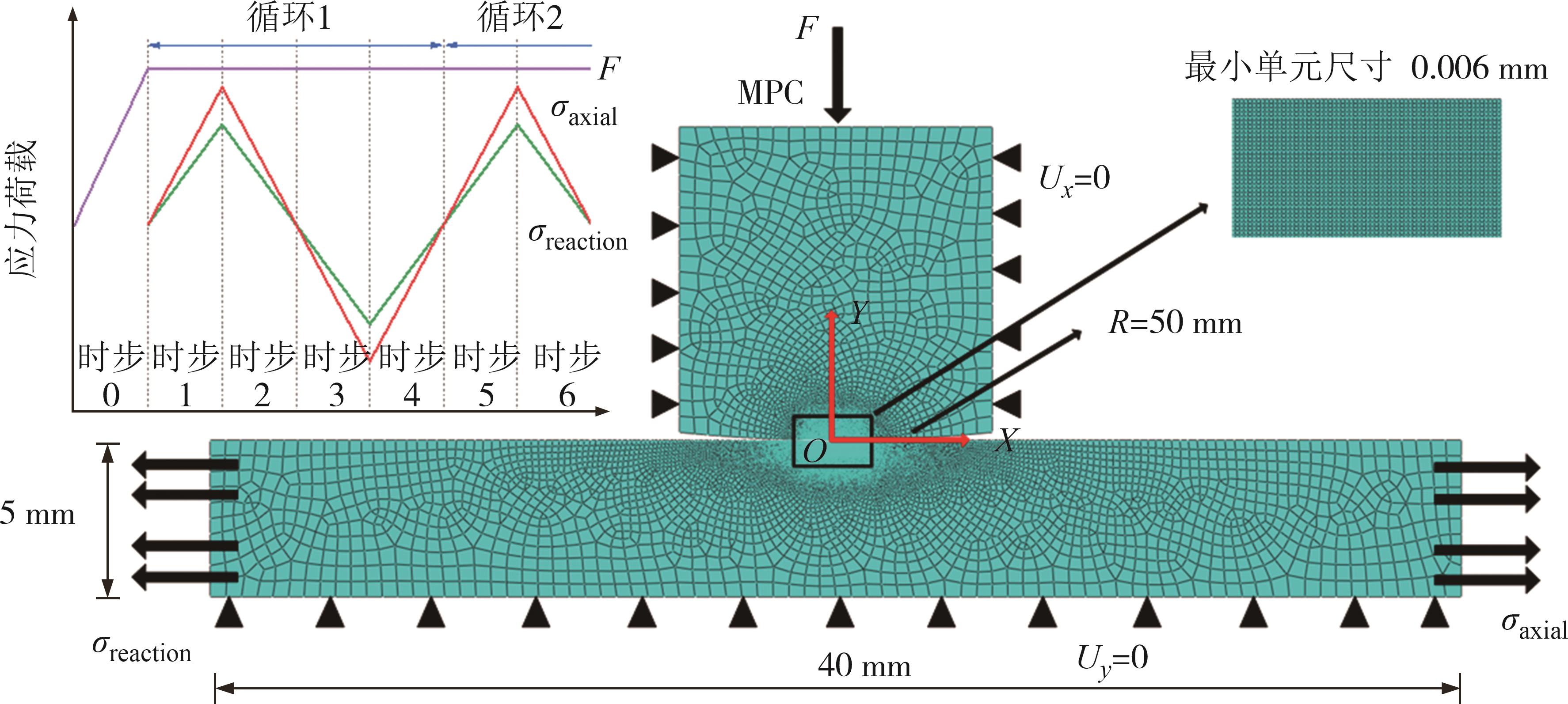 摘要:准确辨识微动疲劳的影响因素是微动疲劳评估和控制的关键. 针对AA2024-T351合金微动疲劳断裂问题,采用考虑细观结构敏感性的晶体塑性有限元模型,探讨了以晶粒梯度表征的材料细观结构对AA2024-T351合金微动疲劳的影响;同时,结合子模型方法对微动疲劳试样接触区域进行计算,通过累积塑性滑移来确定微动疲劳裂纹萌生位置并预测裂纹萌生寿命. 研究发现,晶粒梯度由于晶粒尺寸差异和晶粒边界条件的影响,导致金属材料应力场分布不均匀;相较于微动疲劳接触面,晶粒梯度对亚表面的裂纹萌生位置有显著改变;晶粒梯度对微动疲劳裂纹萌生寿命有明显影响. 研究结果表明,晶粒梯度分布会改变晶粒间的塑性变形特征;随着晶粒梯度增大,亚表面的裂纹萌生寿命逐渐超过接触表面; 晶粒梯度的变化对亚表面裂纹形核位置产生显著影响,从而决定了裂纹扩展趋势. 基于该研究结论,使用材料加工方法改变金属的晶粒梯度分布,将有效抑制微动疲劳裂纹萌生和扩展.