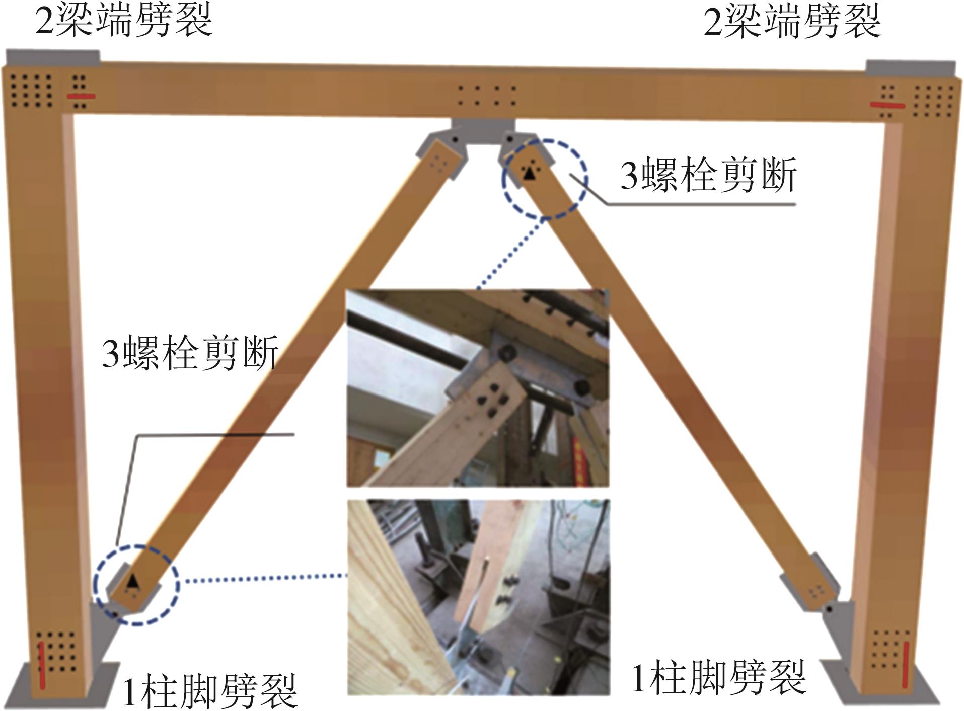摘要:为了建立适用于梁柱式胶合木结构的损伤评估模型,了解其在地震作用下的行为,对4个足尺试件进行水平加载试验.试验考察了有无支撑、不同水平加载程序以及两种类型的人字支撑等多种情况,结果表明:纯框架的破坏模式主要集中在节点处并伴随着较大的水平变形,而增设人字形支撑的试件破坏模式主要表现为支撑构件的失稳破坏.将人字形支撑集成到梁柱式胶合木框架中,有效提升了结构的刚度和最大承载力,并减小了侧向变形.此外,根据试验数据和试件破坏特征提出了考虑变形和耗能的双参数评估模型,该模型能够反映试件破坏前期由大变形造成的损伤,有潜力为梁柱式胶合木框架及框架支撑结构的加固及设计提供可靠理论依据.