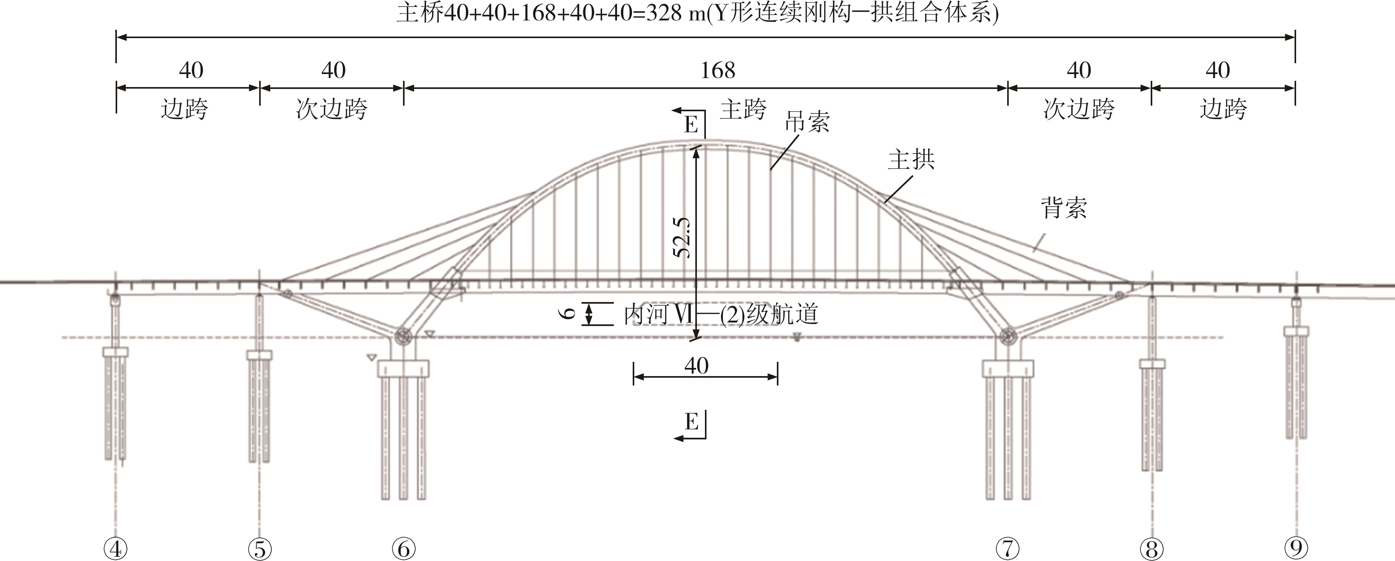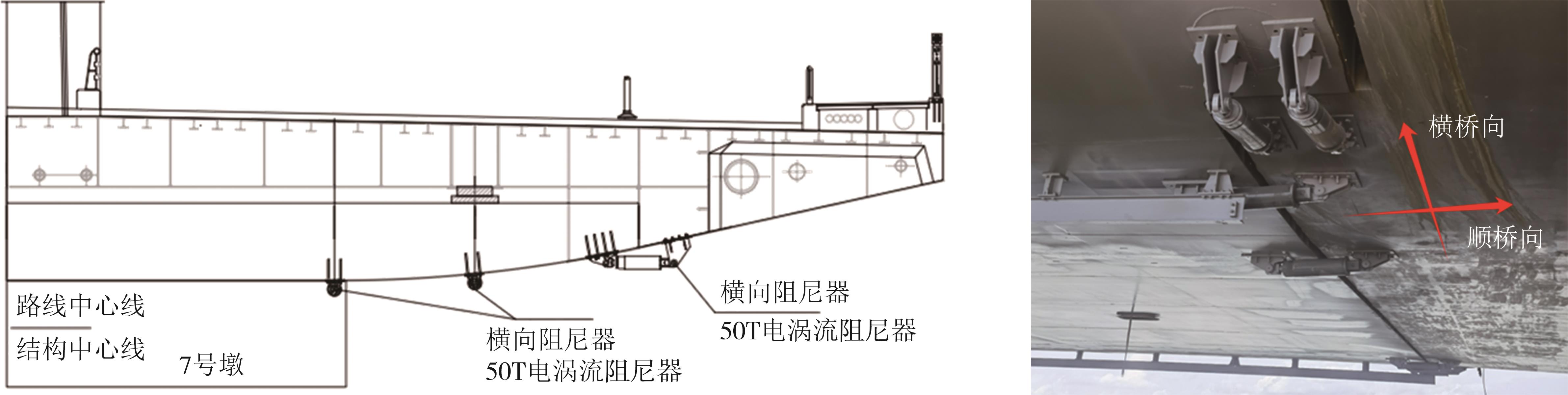 摘要:为研究电涡流阻尼器在超宽单肋系杆拱桥减震领域的应用效果,分别在某超宽桥面有背索柔性单肋系杆拱桥新型组合结构体系的主梁活动支座位置处设置纵向和横向电涡流阻尼器,并采用非线性时程分析方法计算结构在地震作用下的运动响应.为方便电涡流阻尼器的计算应用,分析时对其阻尼力模型开展简化研究,并通过试验验证了简化模型的有效性,最后以墩梁相对位移和拱脚内力为评判指标,研究了变化电涡流阻尼器参数对结构地震响应的影响.结果表明:超宽桥面有背索柔性单肋系杆拱桥新型组合结构体系的面外刚度较低,在地震作用下容易发生侧向倾覆,结构对拱脚抗弯承载力的要求较高;双折线模型可以近似与电涡流阻尼器的非线性阻尼力模型等效,用于描述电涡流阻尼器的力学性能;安装电涡流阻尼器可以有效降低超宽桥面有背索柔性单肋系杆拱桥新型组合结构体系在地震作用下的动力响应,阻尼器最大阻尼力确定时,随等效阻尼系数的提升,结构的地震运动响应呈现明显的下降趋势,其下降速度先快后慢,最终在阻尼系数达到一定阈值后趋于水平;最大阻尼力参数决定了电涡流阻尼器的阻尼力上限,在等效阻尼系数一定时,一定范围内随最大阻尼力的提高,结构各节点的运动响应会不断下降.