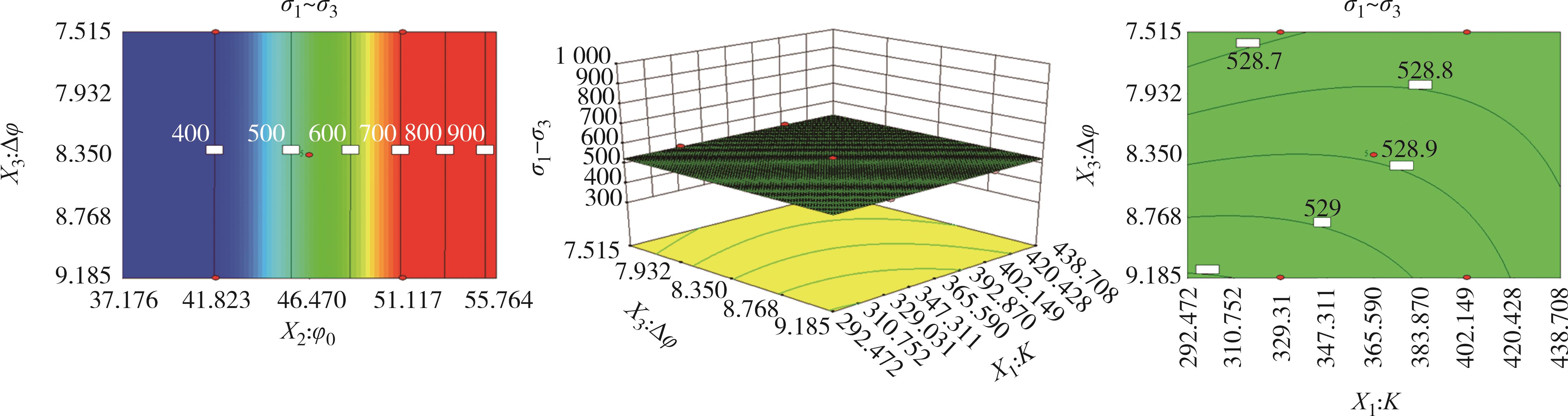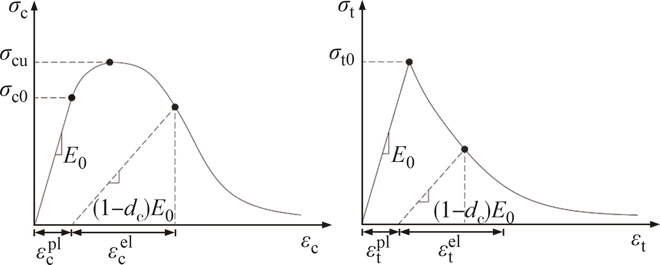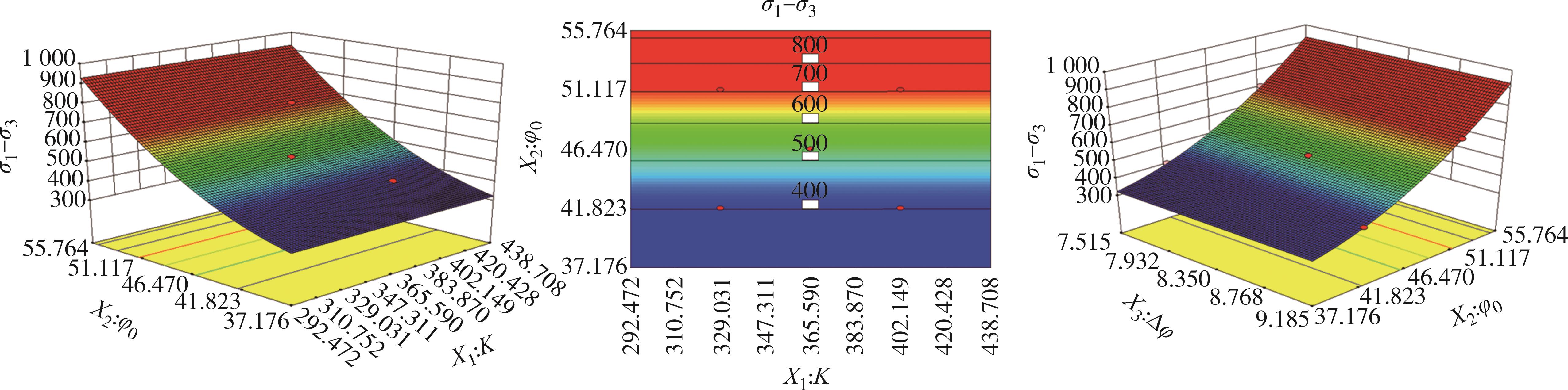 摘要:为了研究面基混合铣刨料的力学性能及其尚不明确的本构模型,在三轴试验的基础上,基于Duncan-Chang模型和Pastor-Zienkiewicz剪胀方程构建了非线性剪胀本构模型,通过应用次弹性理论推导出该本构模型的刚度矩阵,并借助ABAQUS有限元软件平台的UMAT子程序对该模型进行了二次开发,验证了模型的准确性和可靠性.此外,还对该模型的参数进行了全体敏感性分析及关键参数响应面分析.结果表明,在轴向应变为10%左右时,不同围压下两种材料的强度均逐渐达到残余强度,体积应变与轴向应变呈现出先减小后增大的趋势,且在一定范围内表现为明显的剪胀特性.利用二次开发出的UMAT子程序对三轴试验进行模拟计算,其结果与试验结果相比展现出高度的吻合度.研究指标偏差应力(σ1-σ3)受到参数φ0、Δφ、K的影响尤为突出,受参数n、φcr、α、Rf的影响则相对较弱,轴向应变ε1受参数Rf、K、φ0的影响变得显著,而n、Δφ、φcr、α的影响则显得较为有限.对(σ1-σ3)的敏感性程度由高到低次序为φ0、φ02、Δφ、φ0Δφ、KΔφ、K、K2、Δφ2、Kφ0,对ε1的敏感性程度由高到低次序为Rf、φ0、Rf2、K、Rfφ0、KRf、φ02、Kφ0、K2.通过响应面法分析比较关键参数之间交互作用,发现它们对(σ1-σ3)的具体影响程度为:φ0>Δφ>K;对ε1的具体影响程度为:Rf>φ0>K.研究成果可为面基混合铣刨料的工程应用提供理论依据及为参数选取提供参考.