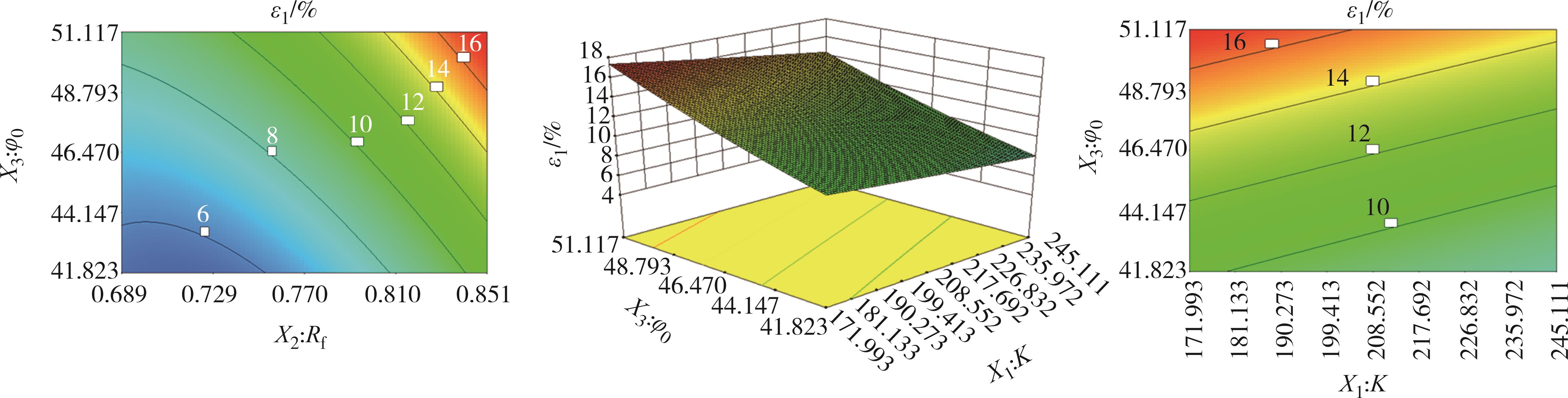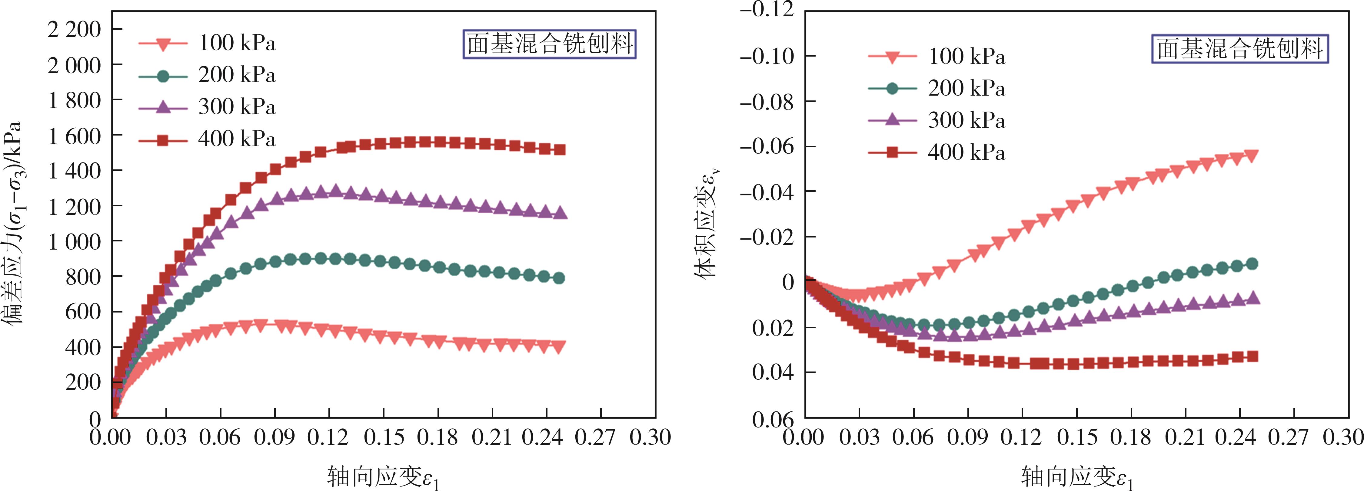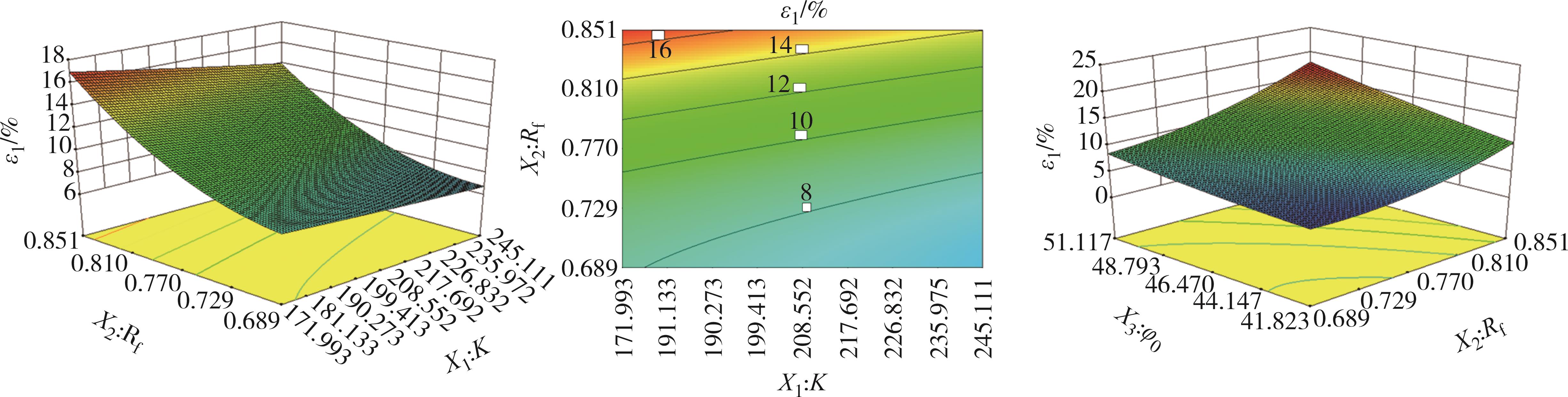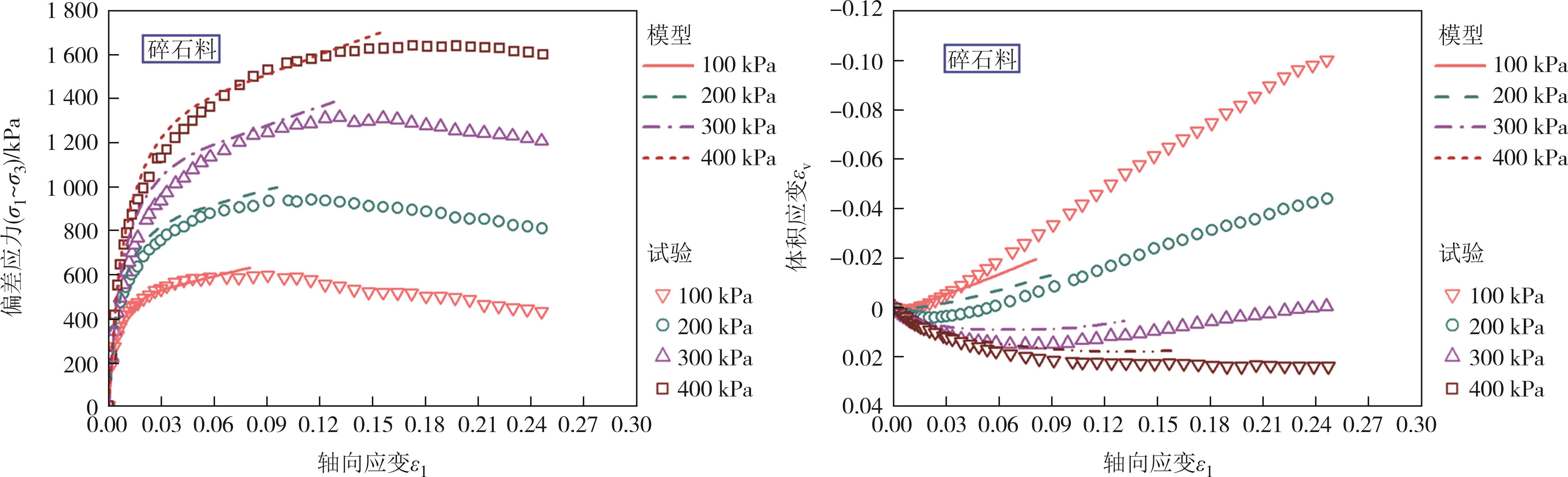 摘要:为了研究面基混合铣刨料的力学性能及其尚不明确的本构模型,在三轴试验的基础上,基于Duncan-Chang模型和Pastor-Zienkiewicz剪胀方程构建了非线性剪胀本构模型,通过应用次弹性理论推导出该本构模型的刚度矩阵,并借助ABAQUS有限元软件平台的UMAT子程序对该模型进行了二次开发,验证了模型的准确性和可靠性.此外,还对该模型的参数进行了全体敏感性分析及关键参数响应面分析.结果表明,在轴向应变为10%左右时,不同围压下两种材料的强度均逐渐达到残余强度,体积应变与轴向应变呈现出先减小后增大的趋势,且在一定范围内表现为明显的剪胀特性.利用二次开发出的UMAT子程序对三轴试验进行模拟计算,其结果与试验结果相比展现出高度的吻合度.研究指标偏差应力(σ1-σ3)受到参数φ0、Δφ、K的影响尤为突出,受参数n、φcr、α、Rf的影响则相对较弱,轴向应变ε1受参数Rf、K、φ0的影响变得显著,而n、Δφ、φcr、α的影响则显得较为有限.对(σ1-σ3)的敏感性程度由高到低次序为φ0、φ02、Δφ、φ0Δφ、KΔφ、K、K2、Δφ2、Kφ0,对ε1的敏感性程度由高到低次序为Rf、φ0、Rf2、K、Rfφ0、KRf、φ02、Kφ0、K2.通过响应面法分析比较关键参数之间交互作用,发现它们对(σ1-σ3)的具体影响程度为:φ0>Δφ>K;对ε1的具体影响程度为:Rf>φ0>K.研究成果可为面基混合铣刨料的工程应用提供理论依据及为参数选取提供参考.