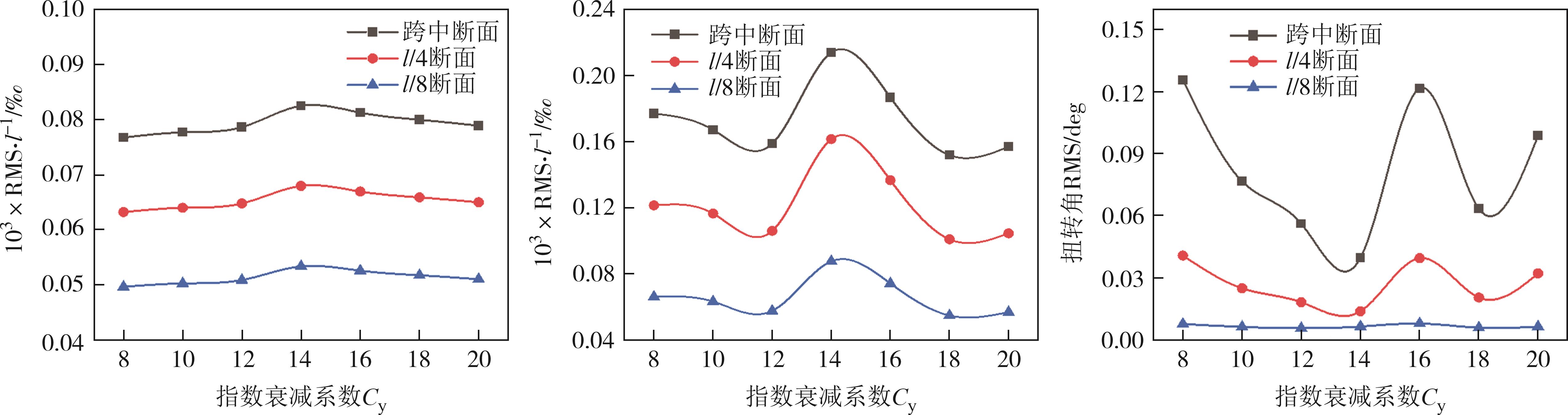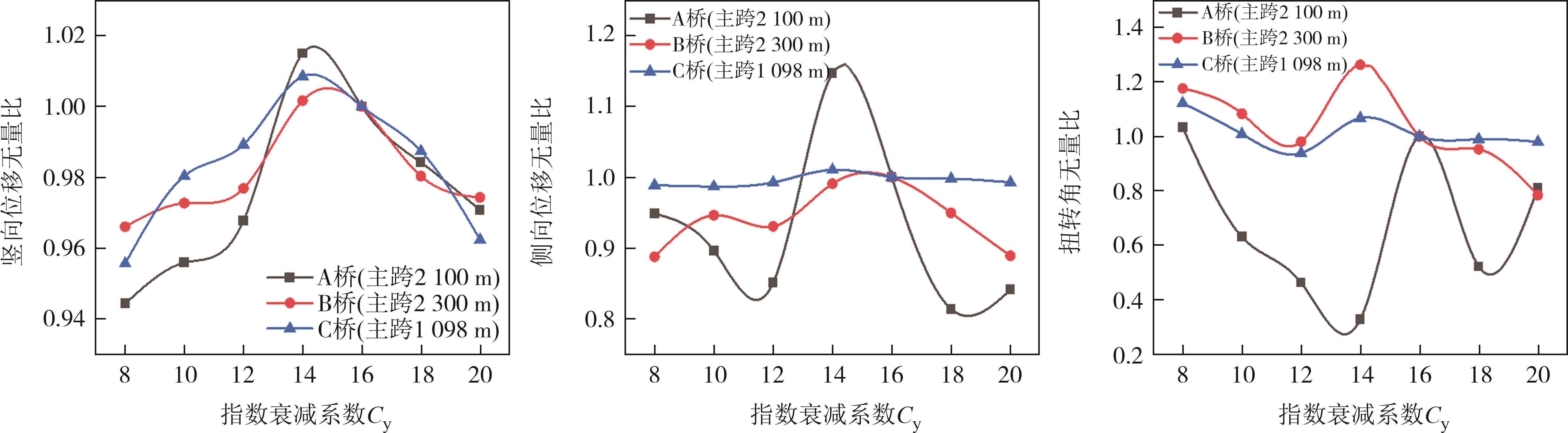 摘要:为研究传统指数衰减系数Cy设定的模拟脉动风场对大跨径悬索桥抖振响应的影响,首先以三座1 000~2 000 m级的大跨径悬索桥为背景进行频域法和时域法的抖振响应分析.结果表明,考虑风荷载非线性等因素的时域法抖振响应结果更加安全;在此基础上,基于时域法,分析了不同Cy取值时悬索桥各展向位置处的抖振响应,并与Davenport推荐的Cy=16时的抖振响应进行对比.研究表明,悬索桥抖振响应并非单纯随Cy的改变而线性变化,在不同Cy取值下三座悬索桥跨中位置处的抖振位移响应RMS值始终最大.Cy为14时的主梁竖向位移、侧向位移及扭转角RMS最大值比Cy=16时的值大,分别大1.5%、14.6%和26.3%.用Davenport的建议值进行大跨度悬索桥抖振响应分析结果偏危险,在进行抖振响应最不利分析时,建议选取多组Cy值进行计算.