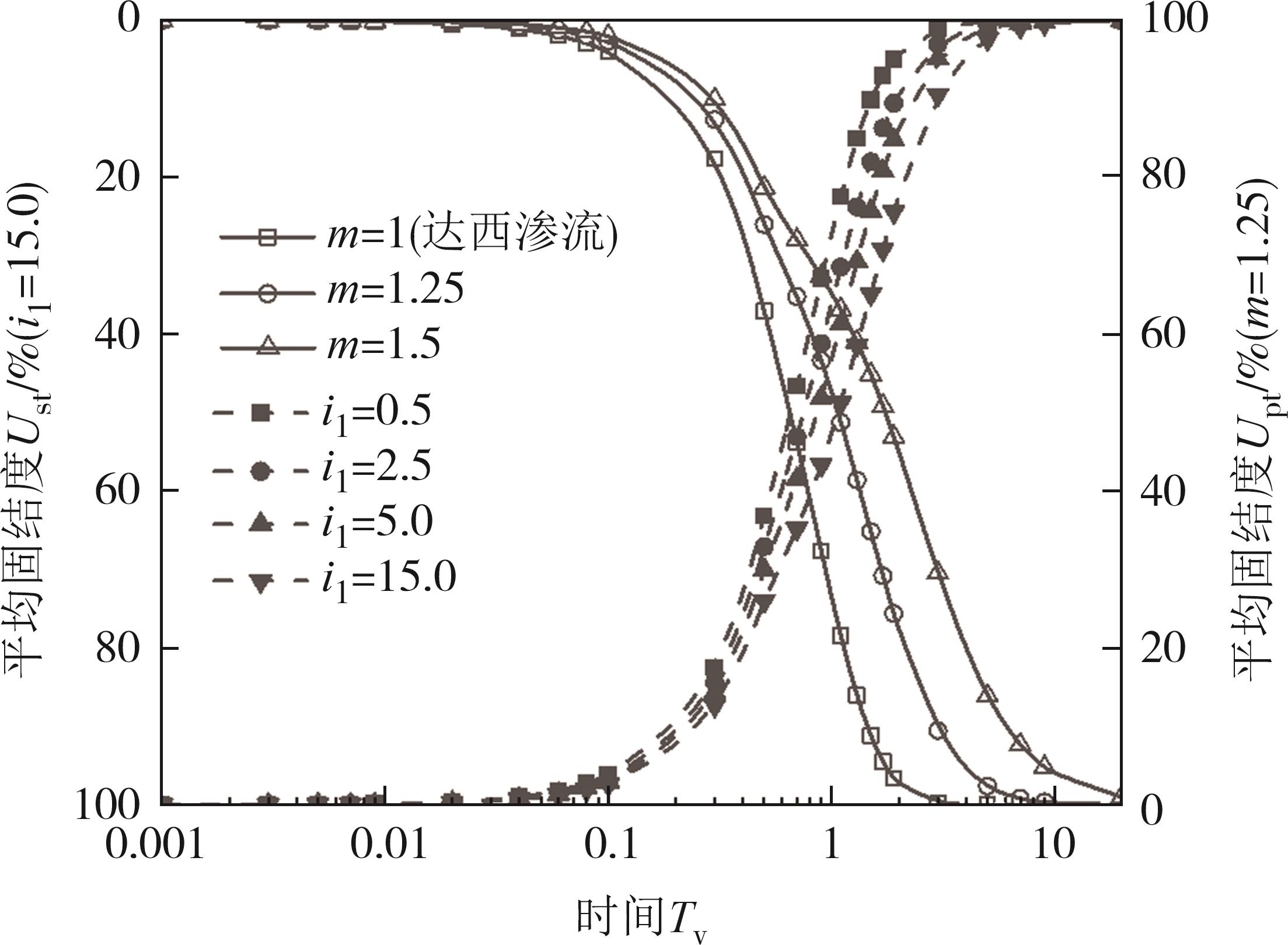 摘要:传统固结理论大多基于小应变假定,不适用于大应变软土固结.为了预测任意荷载下大应变软土的固结沉降,基于双对数渗透压缩模型,建立了考虑任意荷载以及非达西渗流的软土一维非线性大应变固结模型,并通过有限差分法推导出固结方程数值解.与解析解以及室内试验进行对比,验证了该数值解的可靠性.在此解答的基础上,分析压缩指数(Ic)、渗透模型参数(α)、非达西参数(m、i1)、加载历时以及任意荷载对土体固结沉降的影响.结果表明:任意荷载下,Ic和α越大,平均固结度越小,超静孔隙水压消散越慢,但软土固结沉降的最终沉降量只与Ic的大小相关,非达西参数m和i1越大,软土层固结沉降过程中达到最终沉降值所需要的时间越长,即固结过程中的相同时刻下土层的沉降就越小;随着施工荷载与指数荷载加载历时增大,土层沉降速率会变慢,而增大循环荷载的荷载周期时,土层沉降速率会变快;此外,相较于其他荷载,循环荷载下的软土固结性状呈现明显的周期性.研究结果进一步丰富了软土地基一维大应变固结理论,为软土地基施工提供理论支持.