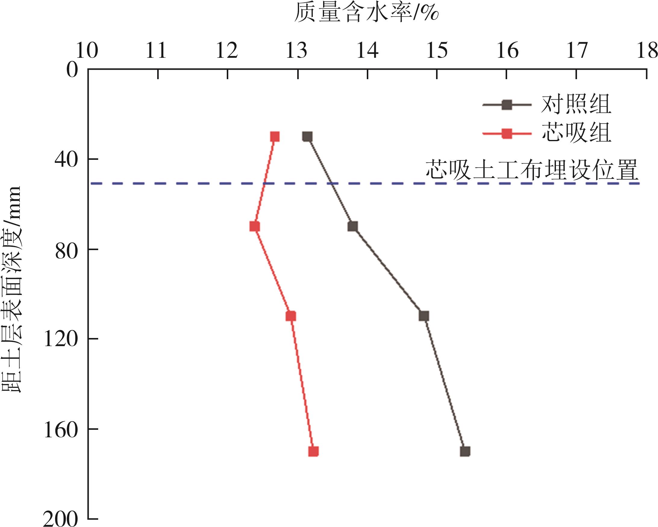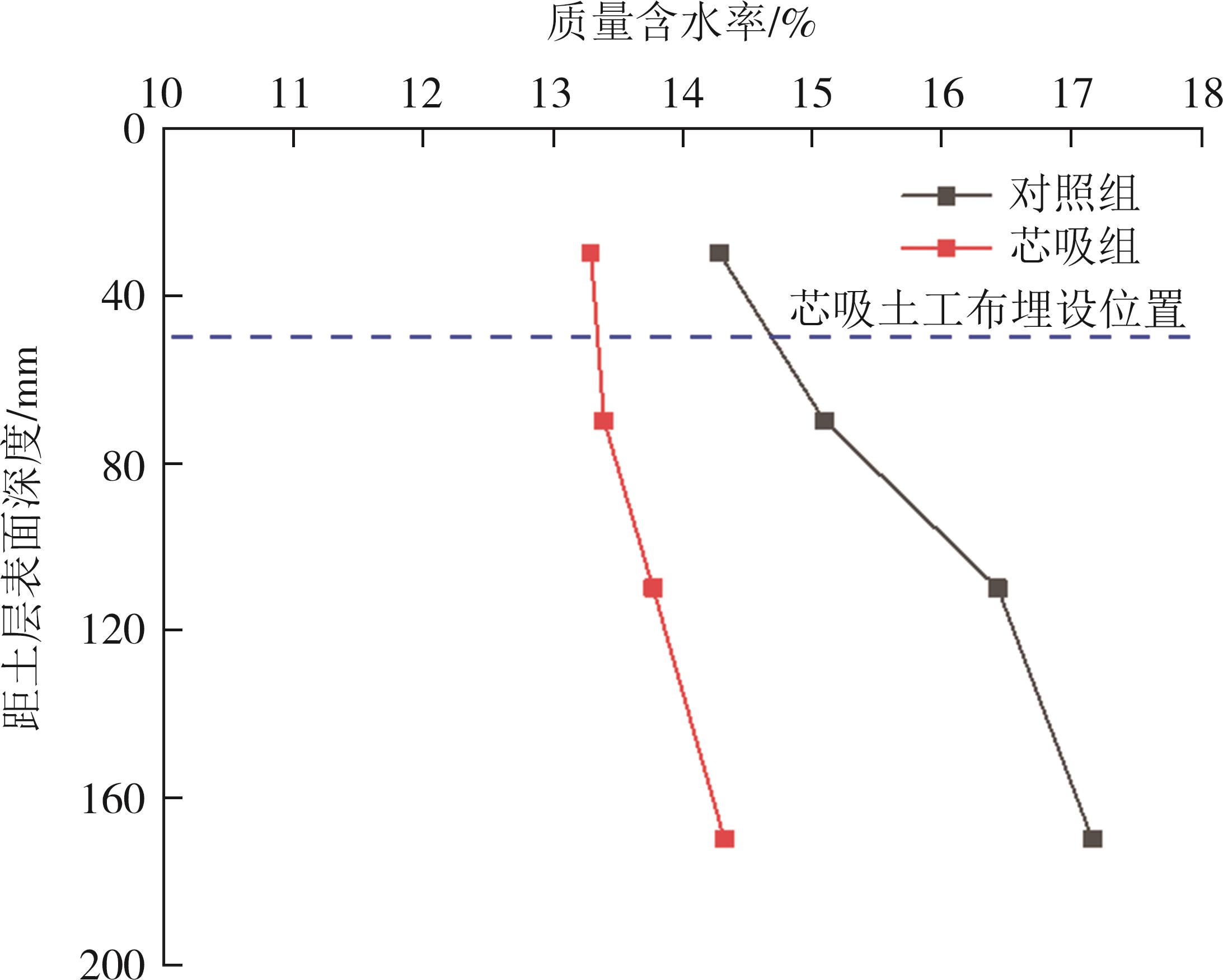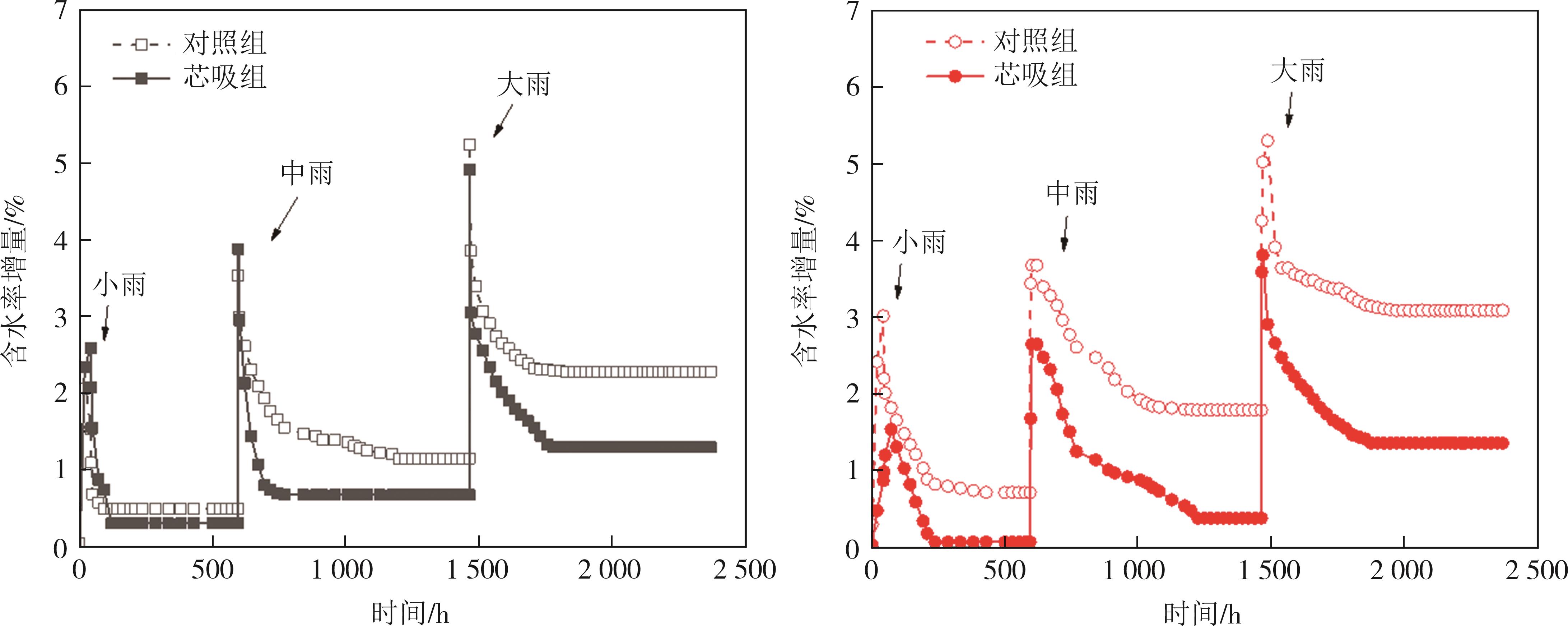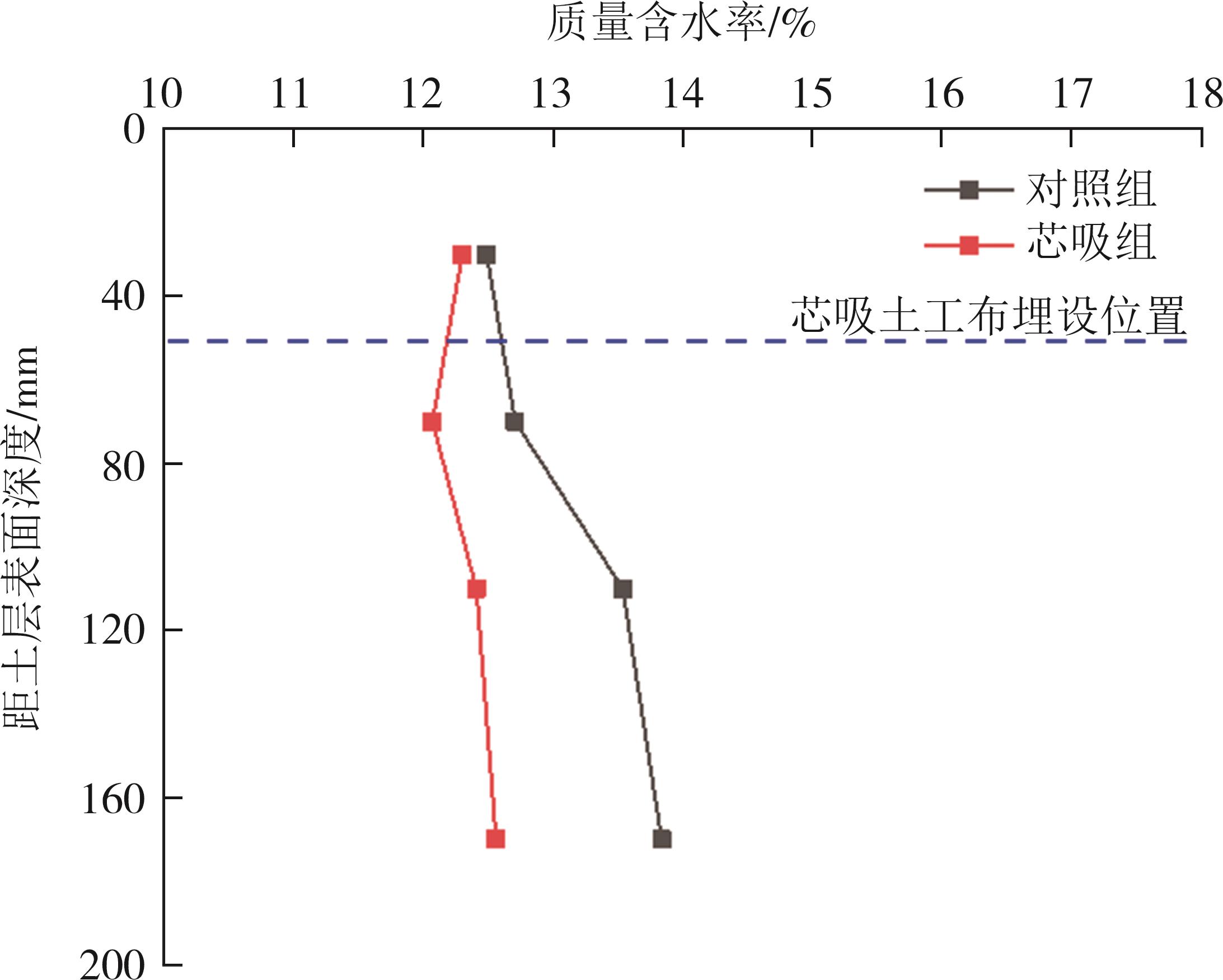 摘要:道路结构的长期服役性能与路基湿化状态密切相关.本文针对降雨入渗下的细粒土路基水分迁移控制效果,选取我国黄河中下游流域典型粉质黏土路基填料,基于压力板仪试验获得了粉质黏土和芯吸土工布的水力学特性,构建了芯吸土工布加筋粉质黏土物理模型,开展了不同降雨强度下粉质黏土填料的水分迁移试验研究,探究了有无芯吸土工布作用下的粉质黏土路基含水率和基质吸力的演化规律.结果表明:芯吸土工布具有较高的水平渗透系数(2.2 cm/s)、较低的持水性和进气值(2.8 kPa),可在较低的基质吸力作用下实现水分的横向导排;降雨入渗下的土体内部水分迁移受重力势和基质势的共同作用,芯吸土工布的存在可使土层的基质吸力提高5.1~34 kPa,土工布上方土体受重力势和基质势共同驱动,水分由上向下迁移,但土工布下方的土体,基质势需要克服重力势作用,驱动水分从下向上迁移;芯吸土工布加筋土体的含水率由对照组的13.8%(小雨)~17.2%(大雨)降低至12.6%(小雨)~14.0%(大雨),可有效控制土体含水率在ωopt+2%以内,这对于保障路基路面的长期服役寿命具有重要的实践价值.