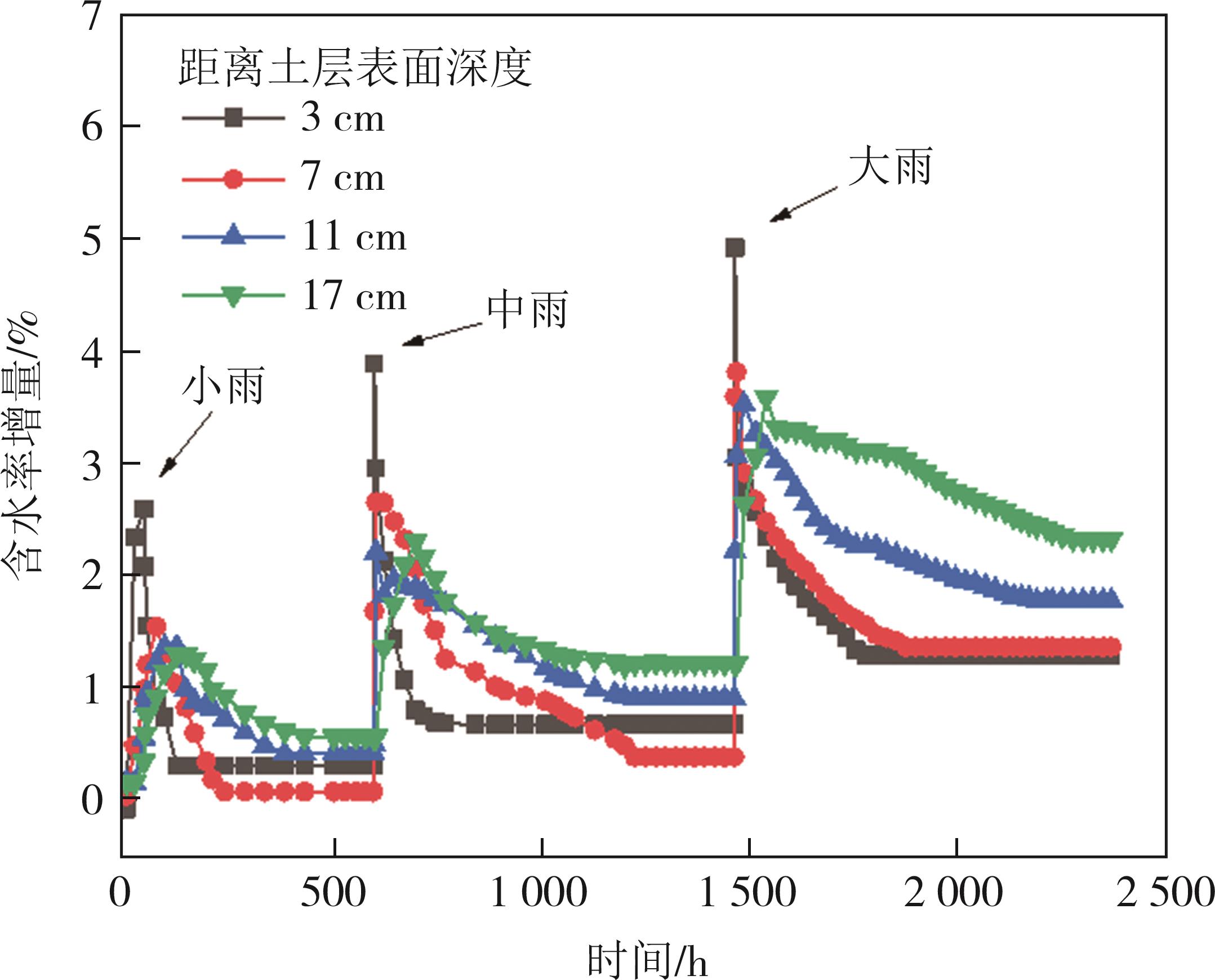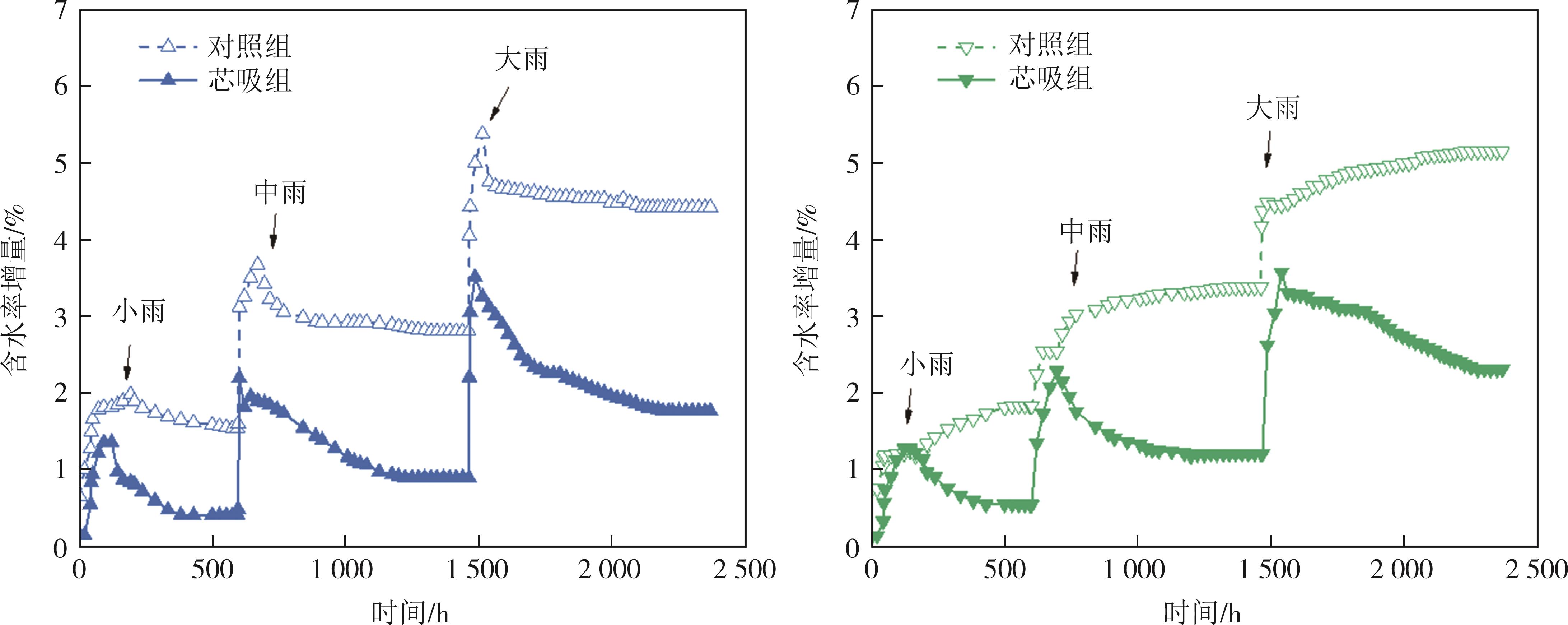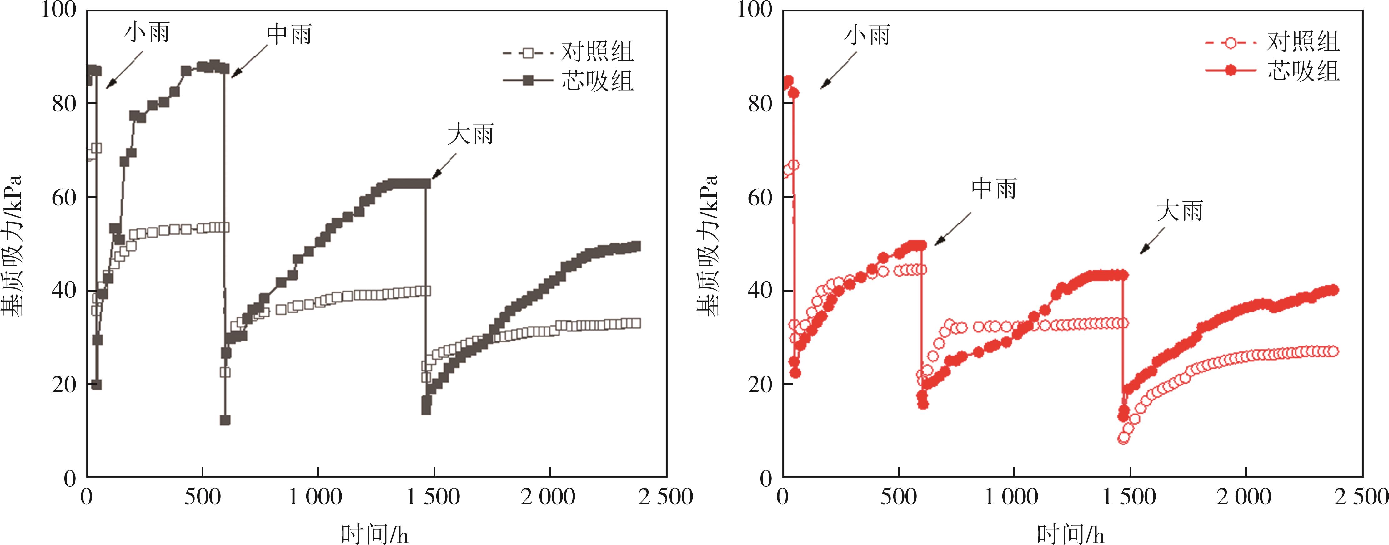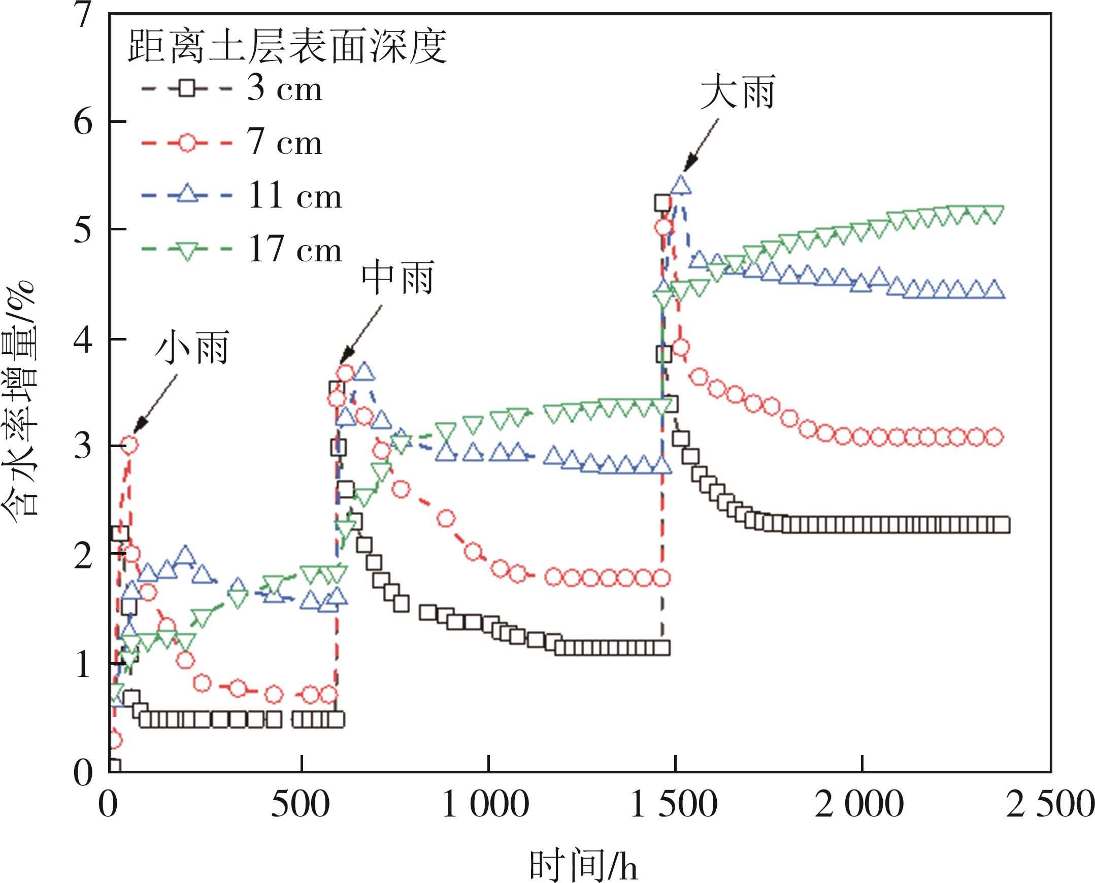 摘要:道路结构的长期服役性能与路基湿化状态密切相关.本文针对降雨入渗下的细粒土路基水分迁移控制效果,选取我国黄河中下游流域典型粉质黏土路基填料,基于压力板仪试验获得了粉质黏土和芯吸土工布的水力学特性,构建了芯吸土工布加筋粉质黏土物理模型,开展了不同降雨强度下粉质黏土填料的水分迁移试验研究,探究了有无芯吸土工布作用下的粉质黏土路基含水率和基质吸力的演化规律.结果表明:芯吸土工布具有较高的水平渗透系数(2.2 cm/s)、较低的持水性和进气值(2.8 kPa),可在较低的基质吸力作用下实现水分的横向导排;降雨入渗下的土体内部水分迁移受重力势和基质势的共同作用,芯吸土工布的存在可使土层的基质吸力提高5.1~34 kPa,土工布上方土体受重力势和基质势共同驱动,水分由上向下迁移,但土工布下方的土体,基质势需要克服重力势作用,驱动水分从下向上迁移;芯吸土工布加筋土体的含水率由对照组的13.8%(小雨)~17.2%(大雨)降低至12.6%(小雨)~14.0%(大雨),可有效控制土体含水率在ωopt+2%以内,这对于保障路基路面的长期服役寿命具有重要的实践价值.