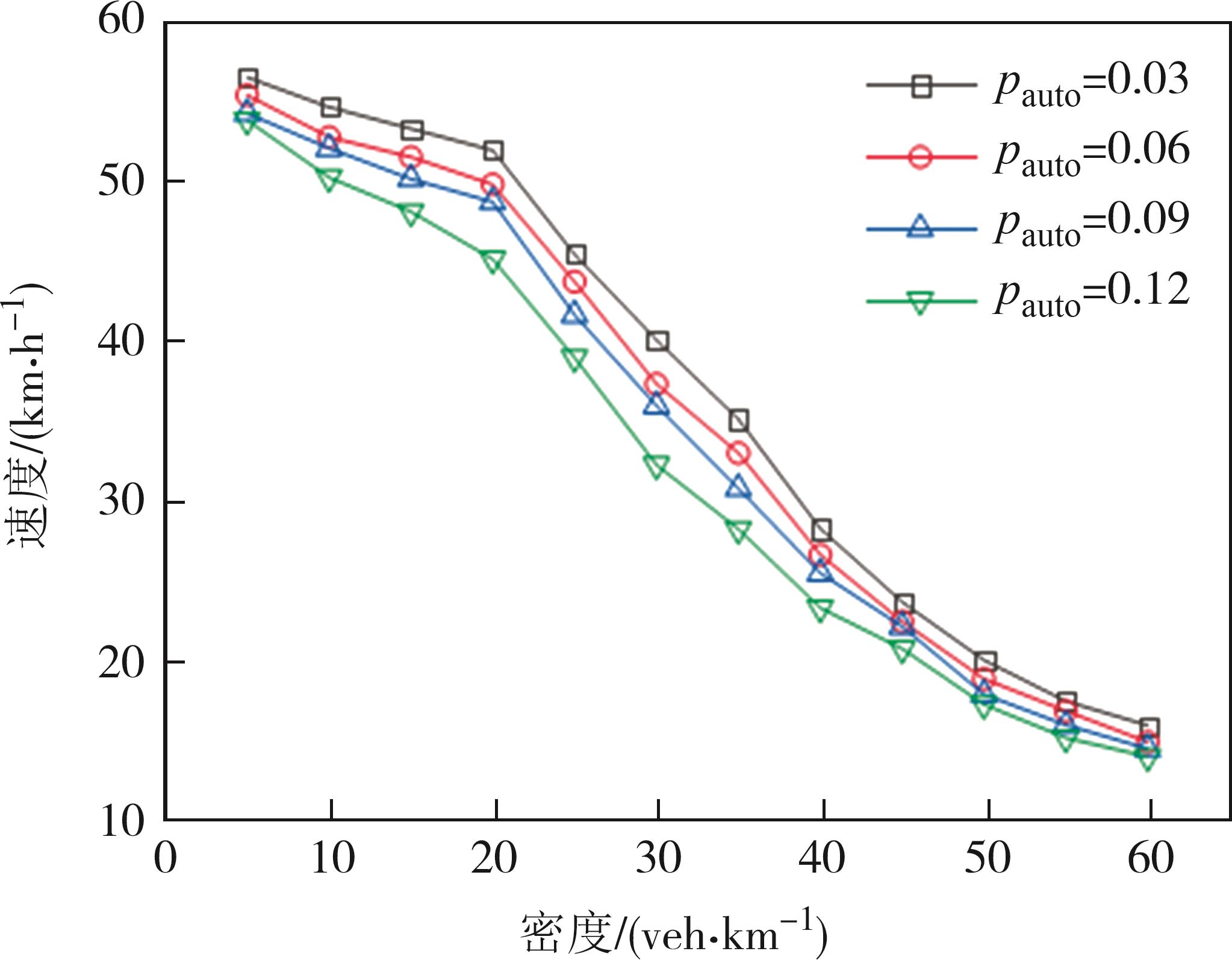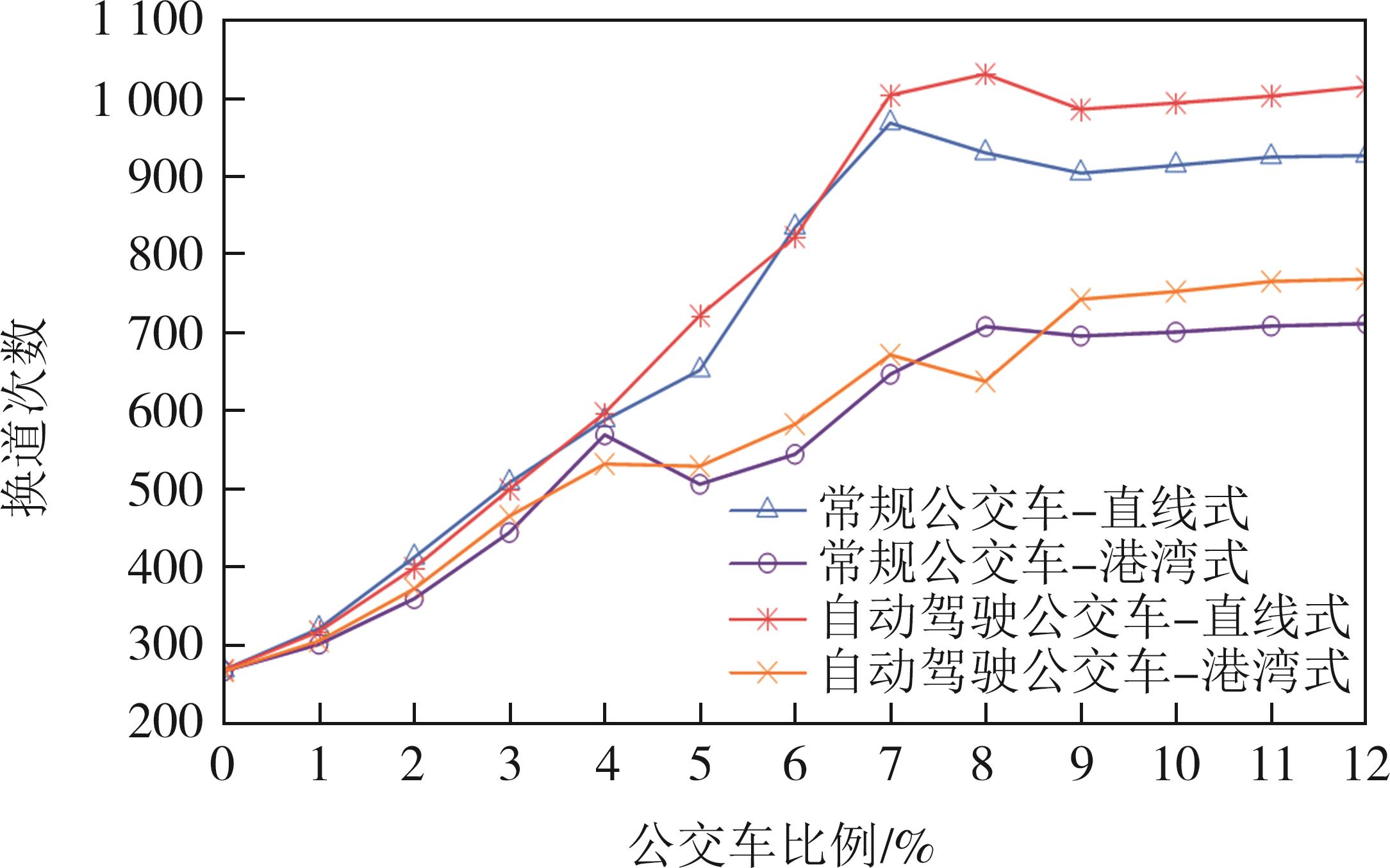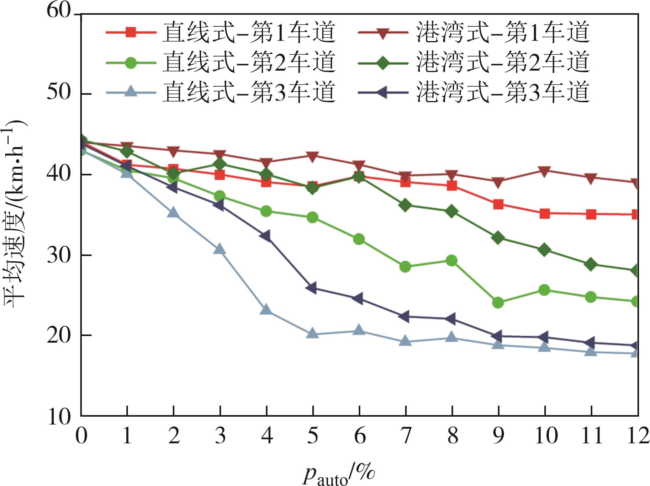 摘要:针对城市道路上自动驾驶公交车与人工驾驶小汽车混合行驶交通流中跟驰、换道和停靠等行为的特殊性,以元胞自动机理论为基础,提出了一种考虑自动驾驶公交车影响的车辆换道模型,研究含有自动驾驶公交车的混合交通流特征. 针对自动驾驶车辆行驶特性,并结合公交车在停靠站路段的行驶特征,对路段进行划分,分别构建自动驾驶公交车、常规公交车和小汽车的跟驰和换道规则,基于数值仿真实验对不同交通密度、公交车比例下的交通流特征进行了分析. 结果表明,相同的道路交通条件下,港湾式公交停靠站对道路交通干扰较小,自动驾驶公交车的换道和停靠行为对道路交通的影响小于常规公交车.