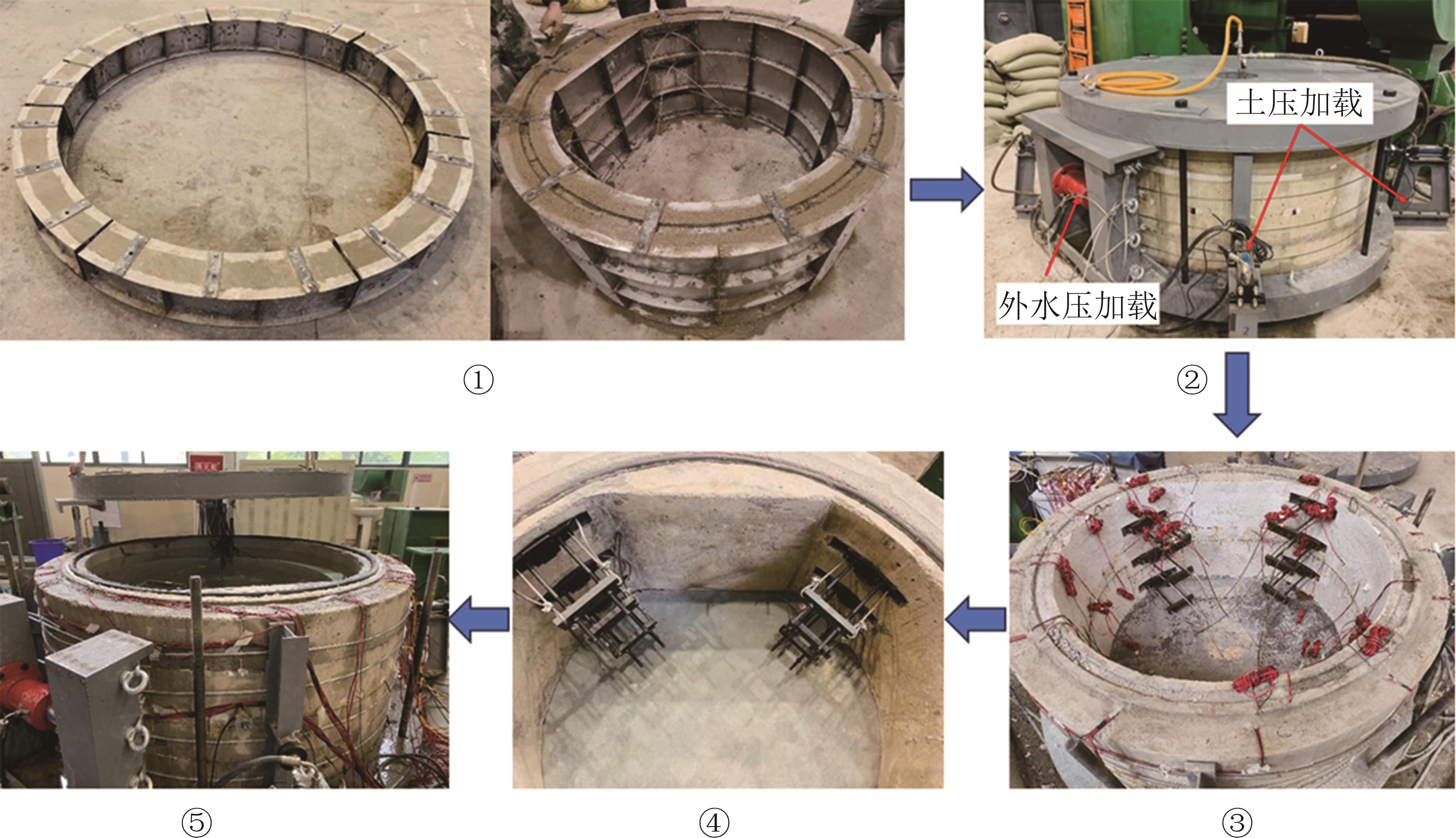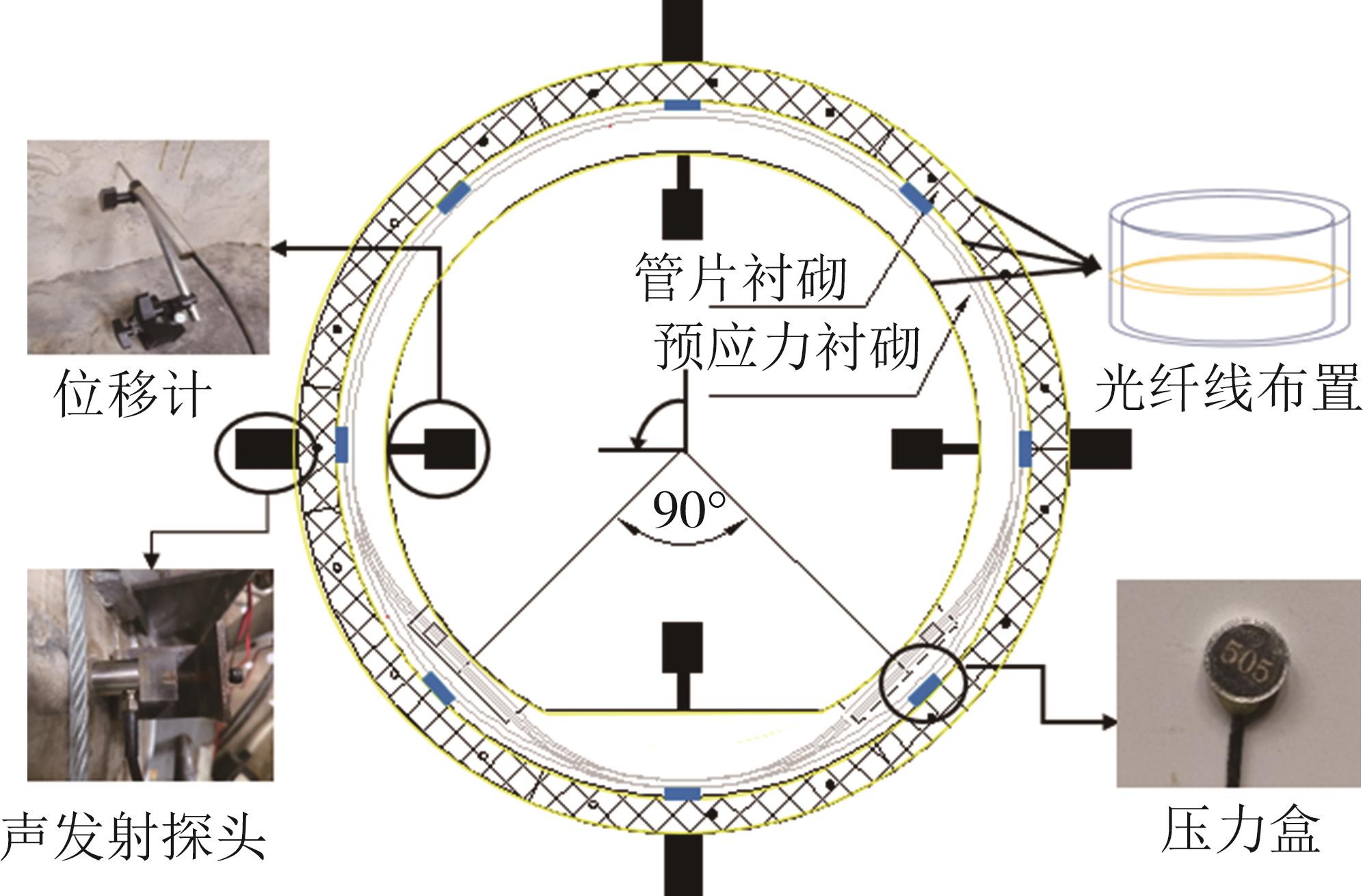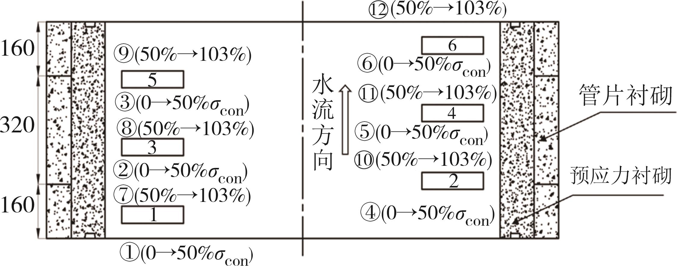 摘要:由于在承受高内水压方面具有显著的优越性,近年来预应力双层衬砌结构在输水盾构隧道中逐渐得到广泛的应用.为揭示预应力双层衬砌结构的力学特性,以珠三角水资源配置工程输水盾构隧道为原型,创新采用相似模型试验方法并结合声发射探测技术,对预应力双层衬砌结构在施工和运行全过程的内力、接触压力、位移以及损伤破坏等进行分析.试验结果表明:在拼装阶段,管片衬砌结构能够单独承担外水土压力,在预应力张拉阶段,管片衬砌和预应力衬砌均全环受压,而随着内水压的逐级施加,结构的轴压力逐渐减小,但在1.5 MPa内水压下,结构仍保持大部分区域受压;在预应力张拉阶段,管片衬砌和预应力衬砌脱开,不考虑其相互作用,在运行阶段,脱开区域闭合,两结构协调承载;随着预应力的逐级张拉,双层衬砌结构的位移线性增加,在张拉完成时,位移值和截面椭圆率分别达到1.37 mm和0.012‰,施加1.5 MPa内水压后,位移值减小至1.30 mm,截面椭圆率增加到0.20‰;在整个加载过程中,双层衬砌结构的渐进性损伤经历了初始弹性阶段和细观损伤阶段,结构内部从缺陷压密到逐渐出现损伤,但并未出现宏观裂纹,故结构处于安全状态.