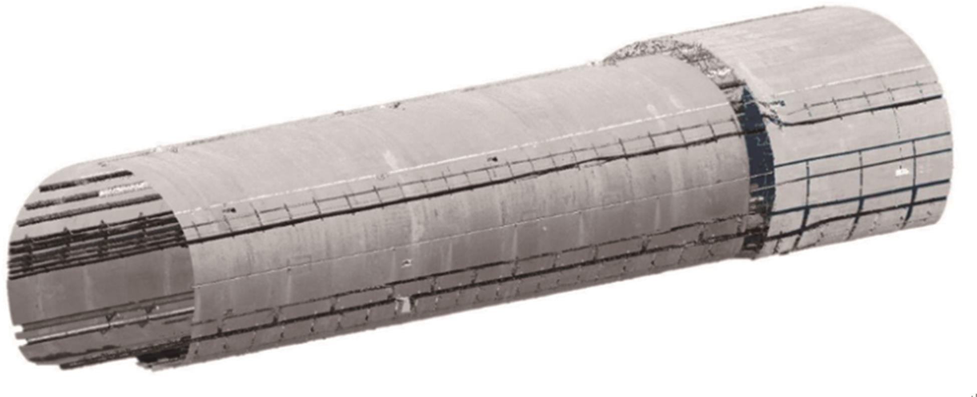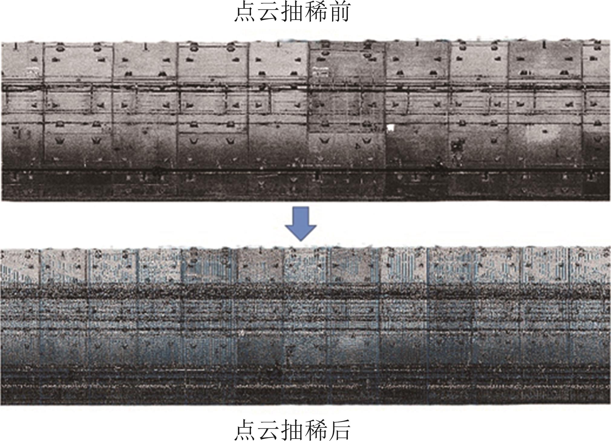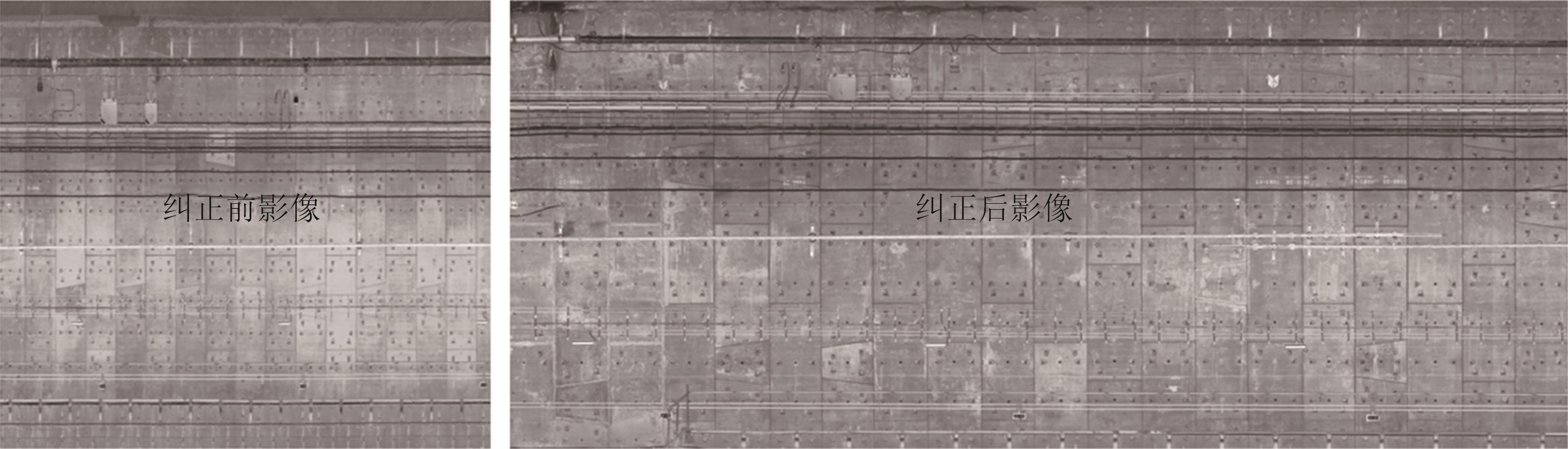 摘要:针对目前移动激光扫描获取的点云难以准确生成任意形状隧道的正射灰度影像难题开展系统研究.首先基于自主研发的TLSD(Tunnel Laser Scanning Detection)移动隧道检测系统获取隧道的点云数据,结合距离阈值法、图像增强算法、聚类算法及抽稀算法实现初始点云冗余及异常信息的有效处理;在此基础上,提出一种包含纵向和环向校准相结合的隧道正射影像生成方法,其中纵向校准方法以轨枕间距为量化基准,结合智能标注软件实现了隧道点云数据的纵向有效校准.在环向校准算法中,首先基于Douglas-Peucker隧道进行环向点云多边形拟合,随后进行投影中心转换,最后基于本文提出的定距等分法对隧道断面点云进行简化和校准,得到了与真实物理空间匹配的灰度图像,完成了任意形貌隧道正射影像的高效构建.测试结果表明,本文研发的方法可有效提高隧道关键几何信息量测及病害统计效率.其中隧道裂损、渗漏等病害量测精度达厘米级,可为隧道服役性能评判与处理提供准确的量化分析数据.