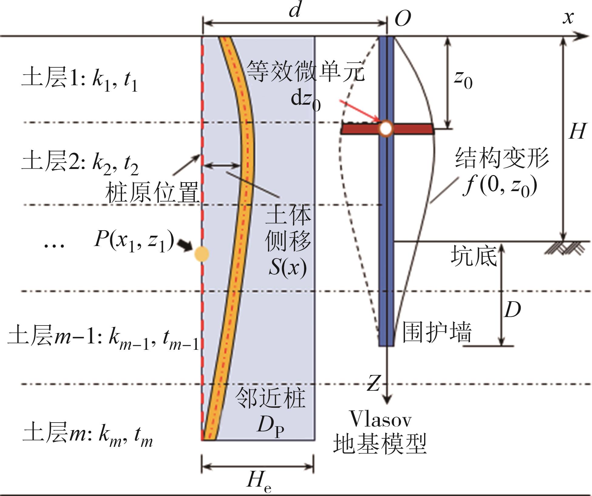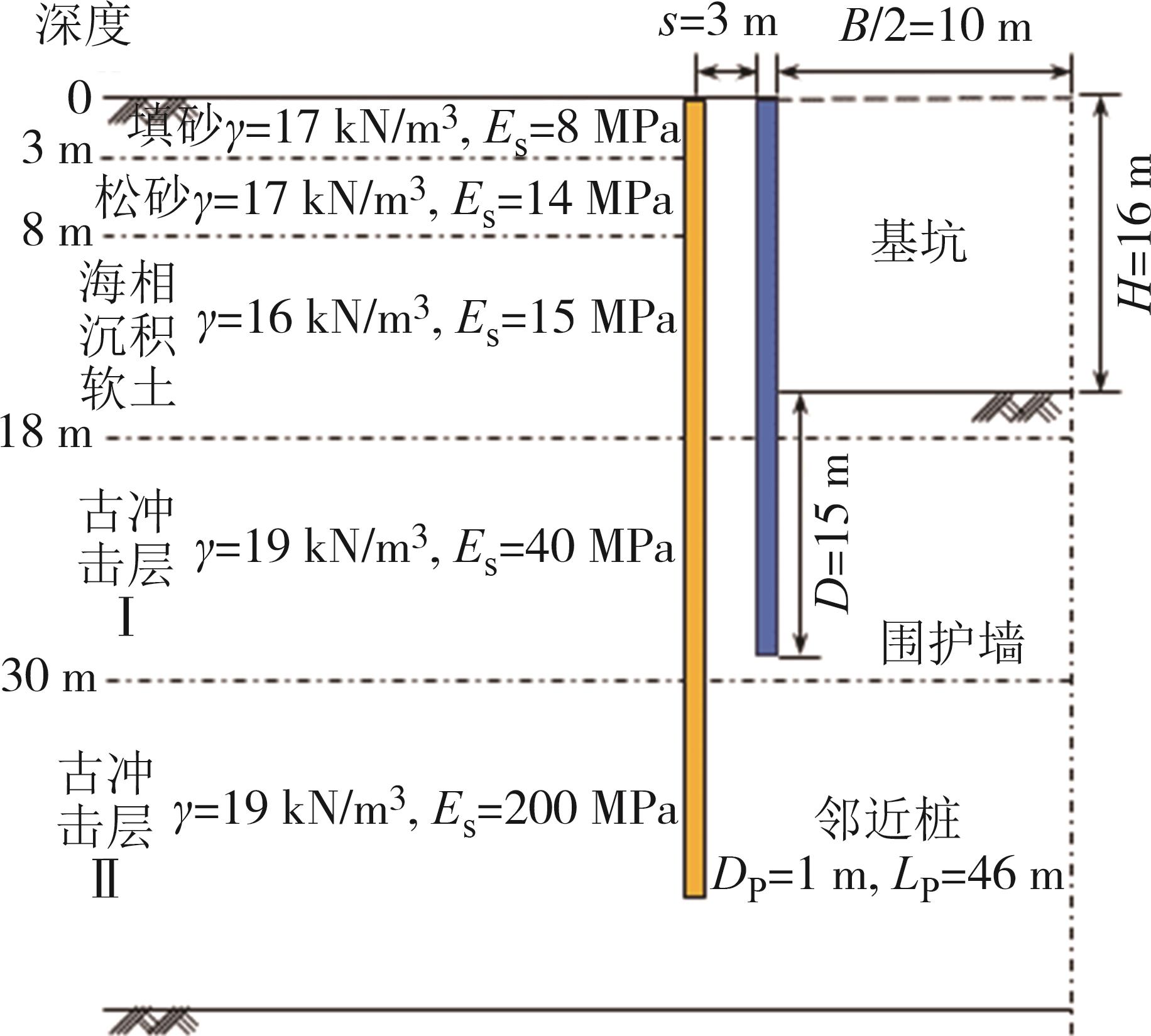 摘要:针对基坑开挖引起邻近桩基的响应问题,首先基于镜像源法,从基坑围护墙变形曲线出发,推导出地基土体非均匀收敛模式下的坑外土体自由位移场;其次,考虑地基土体的成层性,引入Vlasov地基模型,基于两阶段法建立成层地基中基坑开挖引起的邻近桩基响应微分控制方程,并利用有限差分法建立其理论解答和计算方法;在此基础上,结合两项工程案例,验证所建立计算方法的可行性,并探讨成层地基土体弹性模量和非等量收敛系数对邻近桩基响应的影响.结果表明:基坑坑底所处土层的土体参数变化对邻近桩基响应的影响最为显著;邻近桩基的截面剪力在成层地基的土层分界处存在转折点,而地基反力则在分界面处产生突变;随着土体非等量收敛系数的增大,桩基上部的水平位移和地基反力逐渐增大,而桩基下部的水平位移和地基反力则逐渐减小,且桩基上部所受影响程度大于下部所受影响程度,桩基截面剪力和弯矩所受的影响则相反.