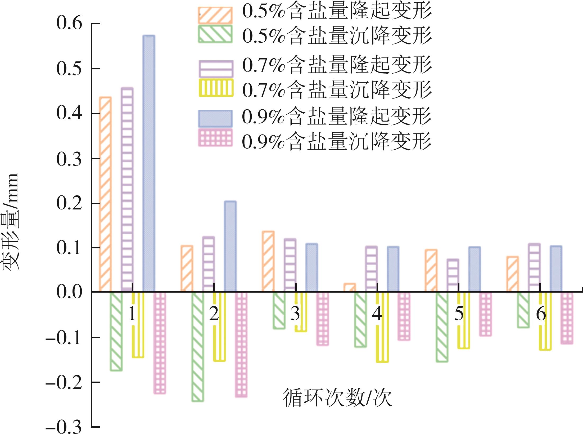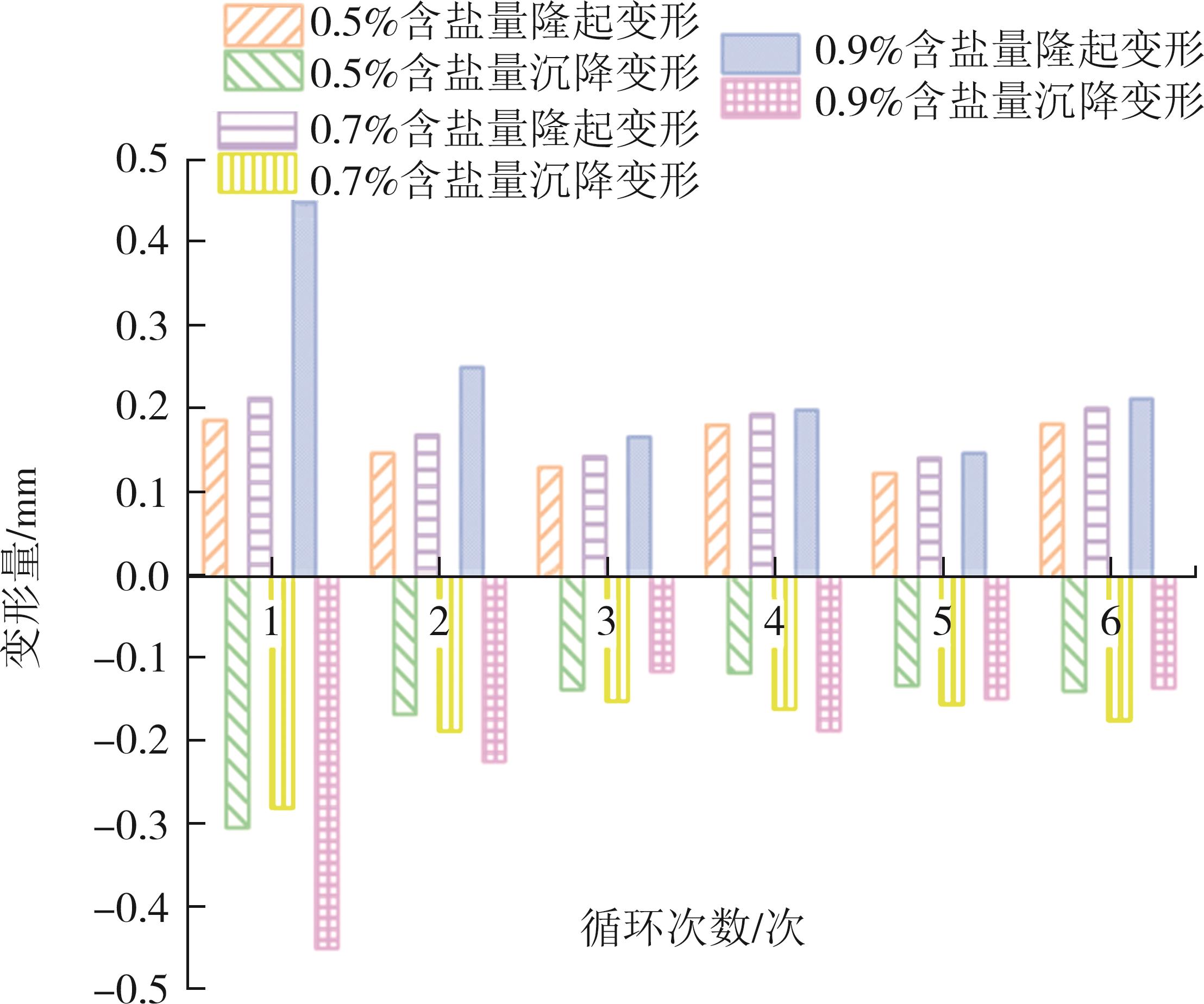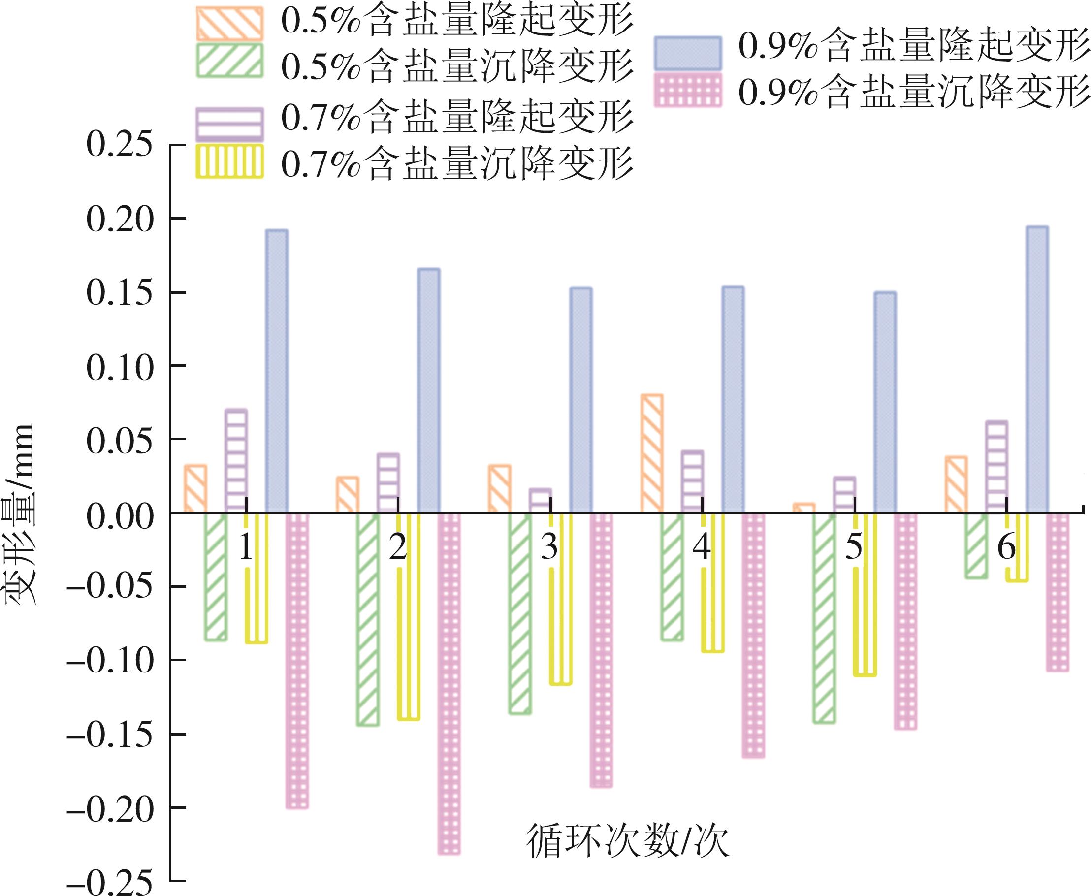 摘要:针对干旱-季节性冻土地区砾质硫酸盐渍土作为高填方道基填料的适用性问题,通过不同工况下的恒温试验和冻融循环试验,深入分析了含盐量、含水率、细粒土含量等因素对砾质硫酸盐渍土填料的水盐迁移和变形特性的影响规律.试验结果表明:含盐量(0.5%~0.9%)、含水率(3.07%~5.07%)和细粒土含量(0.3%~5%)的增加,对砾质硫酸盐渍土冻结温度的影响幅度分别为61.9%、20.9%和4.96%,试验土样的冻结温度范围为-1.15~-0.67 ℃;当试样的级配相同时,随着易溶盐含量的增加,冻结温度逐渐降低,可促进试样中水盐向冷端迁移;当试样的含盐量相同时,细粒土含量从0.3%增至5%,最大变形量提高了62.8%;细粒土含量和含盐量的增加,能促进砾质硫酸盐渍土由沉降变形转向隆起变形;3%细粒土含量试样的总变形量较小,水盐分布近似初始值,相对稳定,建议该地区砾质硫酸盐渍土高填路堤填料应控制细粒土含量不大于3%.
