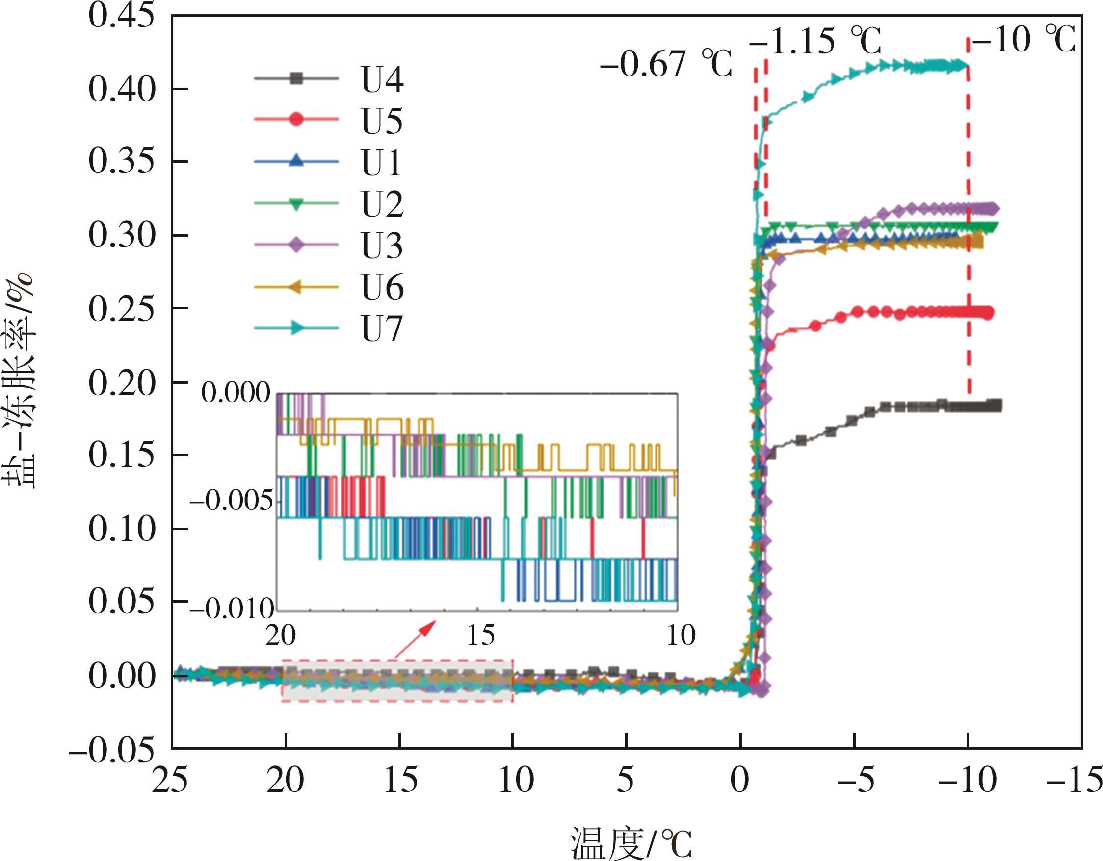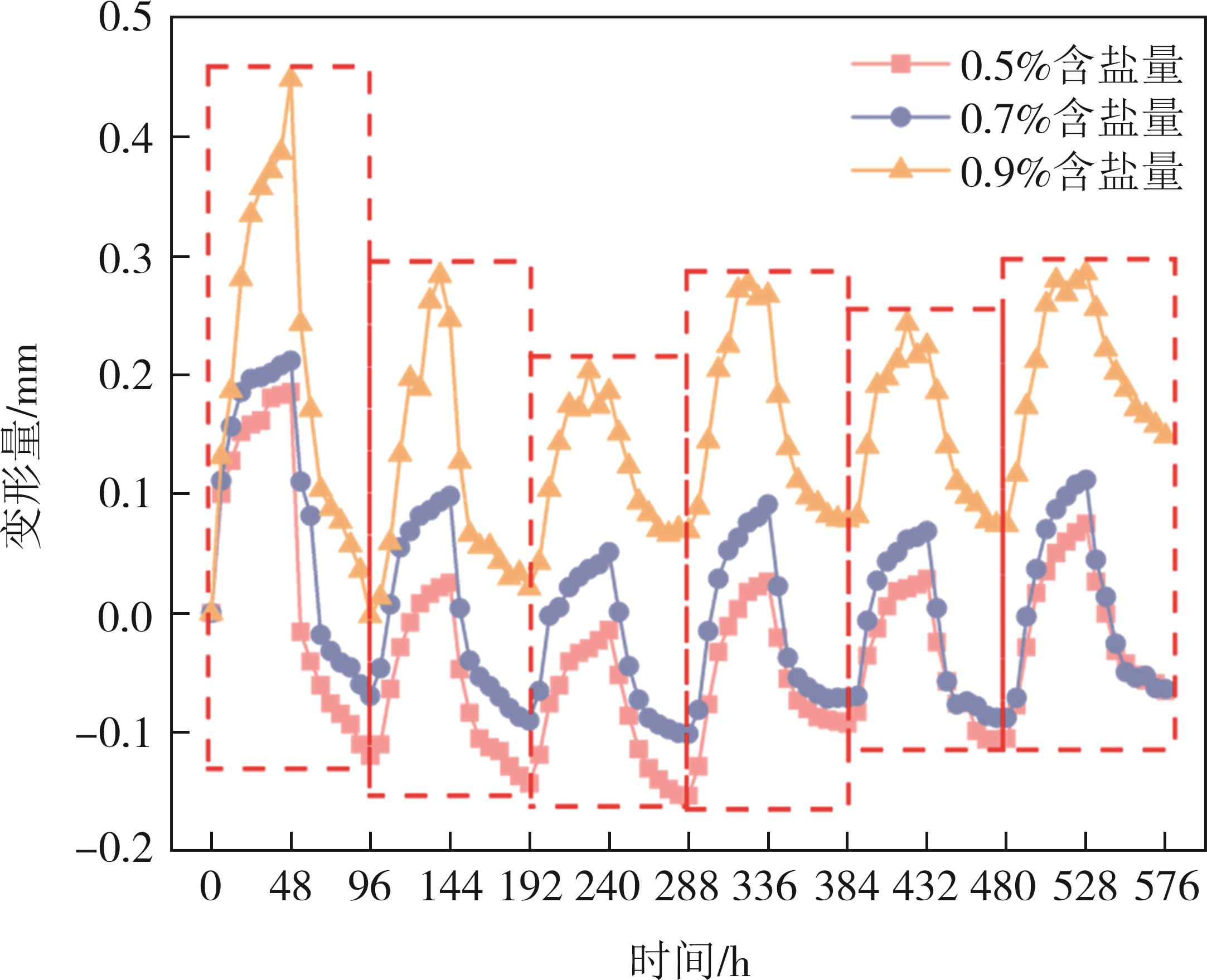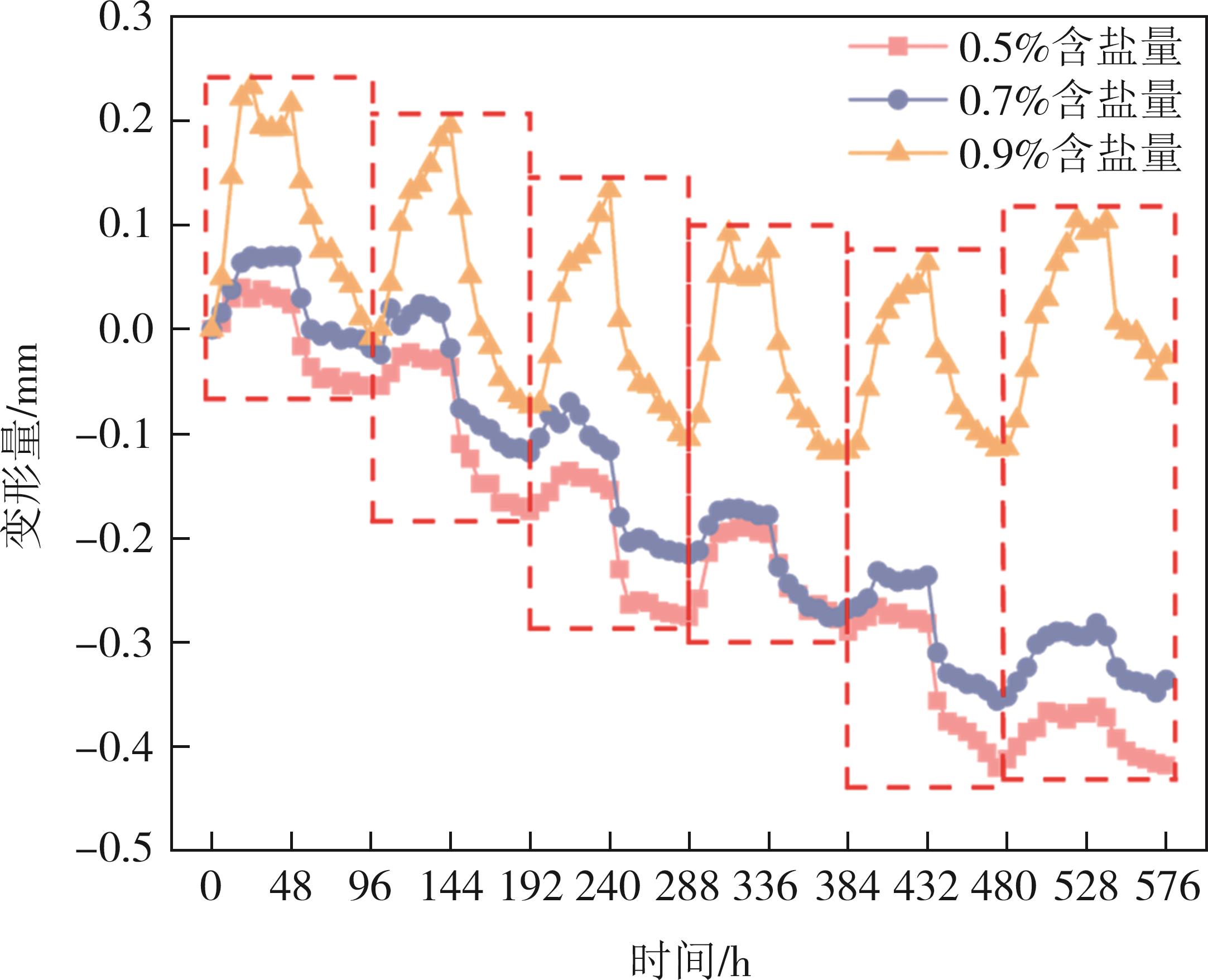 摘要:针对干旱-季节性冻土地区砾质硫酸盐渍土作为高填方道基填料的适用性问题,通过不同工况下的恒温试验和冻融循环试验,深入分析了含盐量、含水率、细粒土含量等因素对砾质硫酸盐渍土填料的水盐迁移和变形特性的影响规律.试验结果表明:含盐量(0.5%~0.9%)、含水率(3.07%~5.07%)和细粒土含量(0.3%~5%)的增加,对砾质硫酸盐渍土冻结温度的影响幅度分别为61.9%、20.9%和4.96%,试验土样的冻结温度范围为-1.15~-0.67 ℃;当试样的级配相同时,随着易溶盐含量的增加,冻结温度逐渐降低,可促进试样中水盐向冷端迁移;当试样的含盐量相同时,细粒土含量从0.3%增至5%,最大变形量提高了62.8%;细粒土含量和含盐量的增加,能促进砾质硫酸盐渍土由沉降变形转向隆起变形;3%细粒土含量试样的总变形量较小,水盐分布近似初始值,相对稳定,建议该地区砾质硫酸盐渍土高填路堤填料应控制细粒土含量不大于3%.