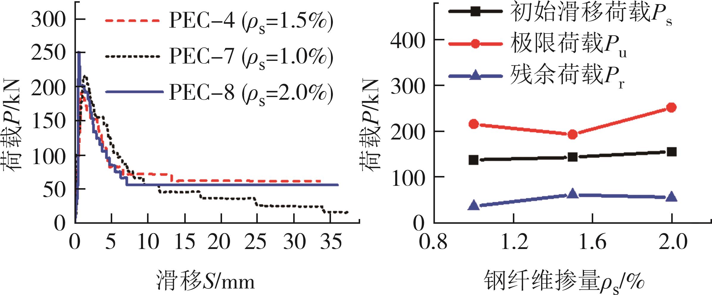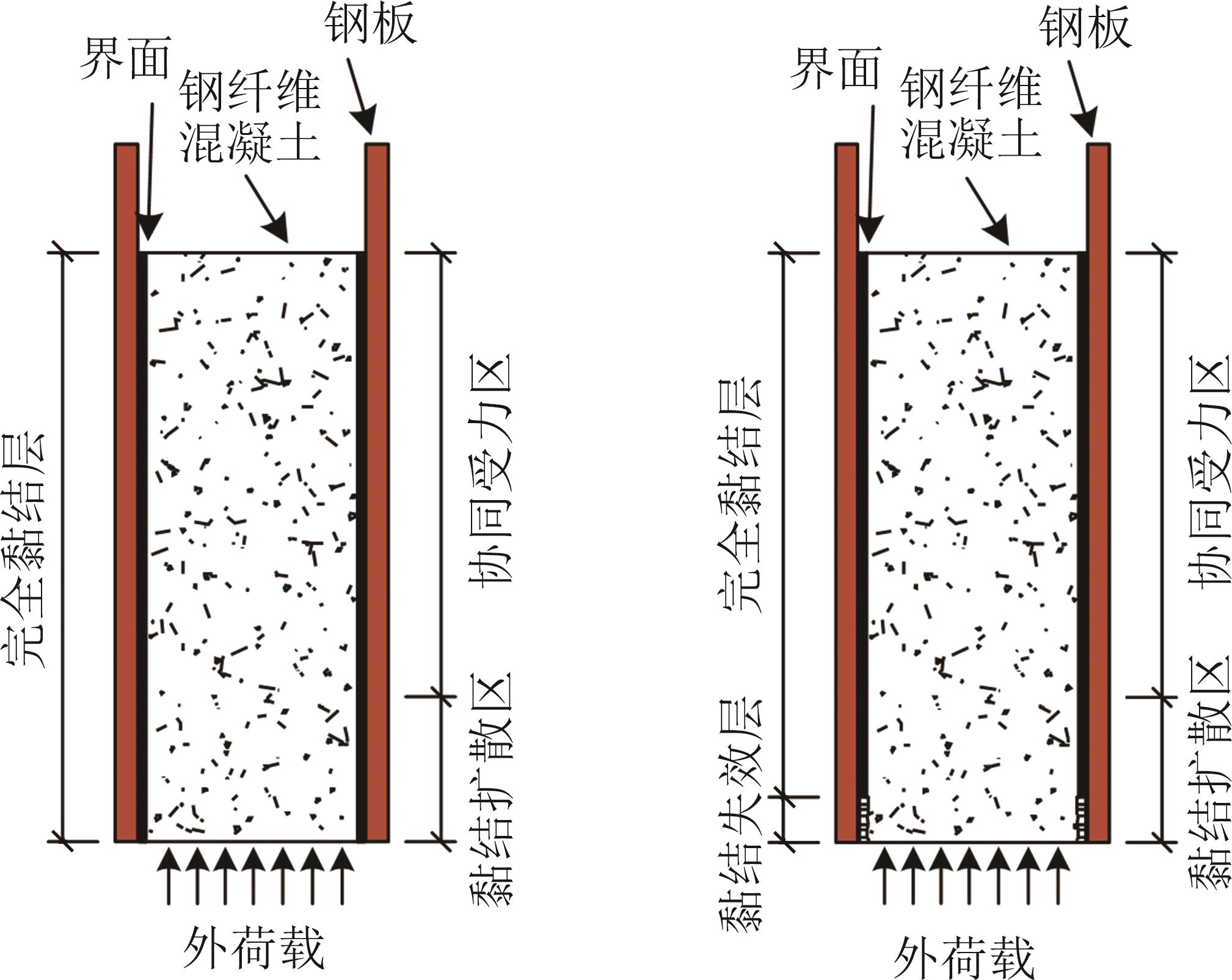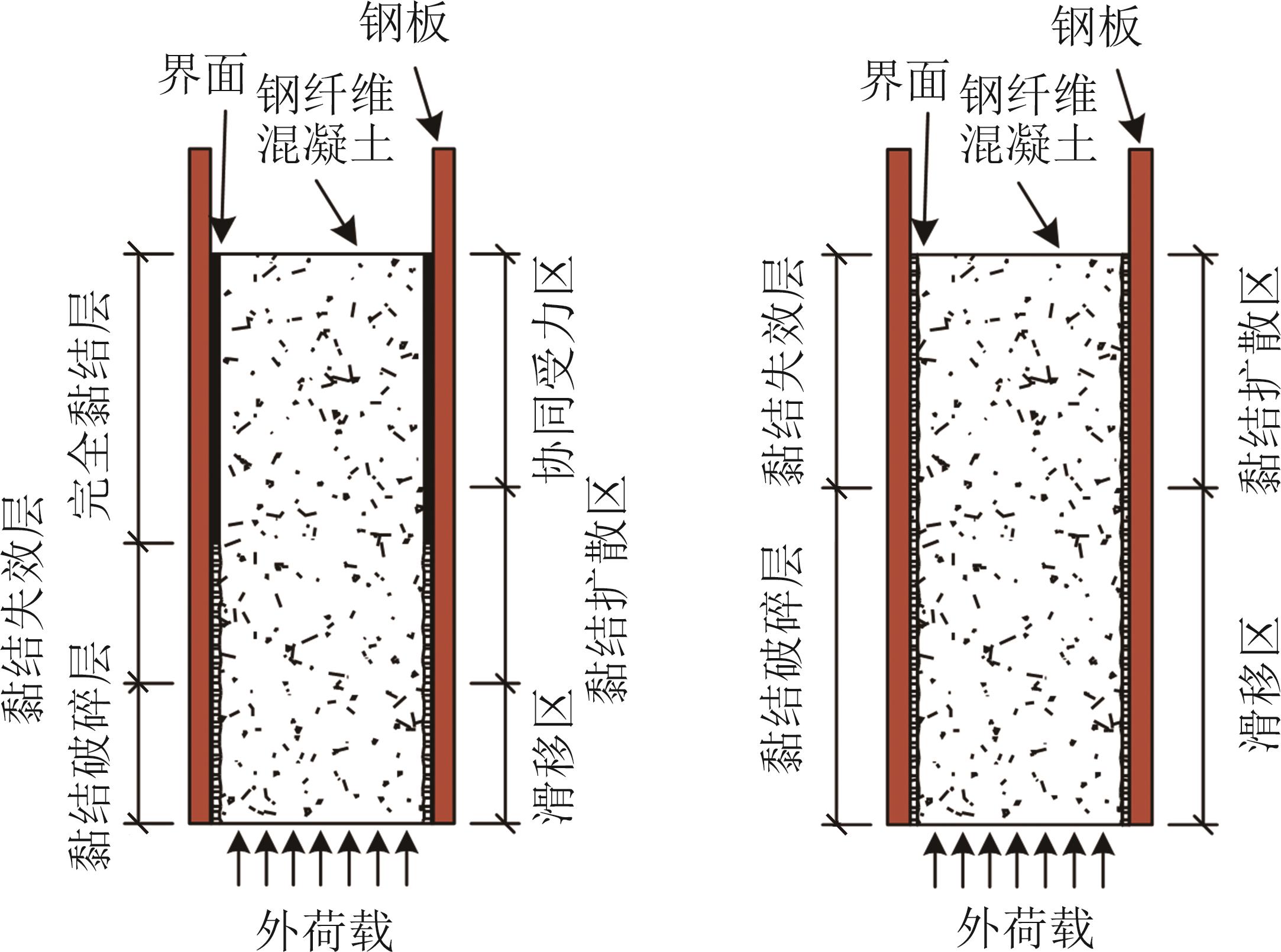 摘要:PEC柱具有稳定性好、预制化程度高的优点,在其中加入钢纤维可有效抑制混凝土裂纹的发展. 以锚固长度和钢纤维掺量为变量,设计了8个波形腹板钢纤维PEC柱试件并进行推出试验,研究了其界面黏结滑移性能. 结果表明:钢纤维混凝土试件在荷载下降段界面裂纹贯通,试件破坏模式均为界面自然黏结力失效破坏;当钢纤维掺量一定、锚固长度为650 mm时,界面黏结性能最佳;在混凝土中加入钢纤维可提升黏结性能,随着钢纤维掺量增大,初始滑移荷载与初始强度随之增大,极限荷载先减后增,当钢纤维掺量为1.5%时,极限强度达到最小值而残余强度达到最大值;钢板翼缘应变在荷载上升段随锚固长度近似呈指数分布,波形腹板应变呈波浪形;通过线性回归拟合得出试件特征黏结强度的计算式,将计算值与试验值对比,发现误差较小,可为波形腹板钢纤维PEC柱的承载力设计及应用提供参考.