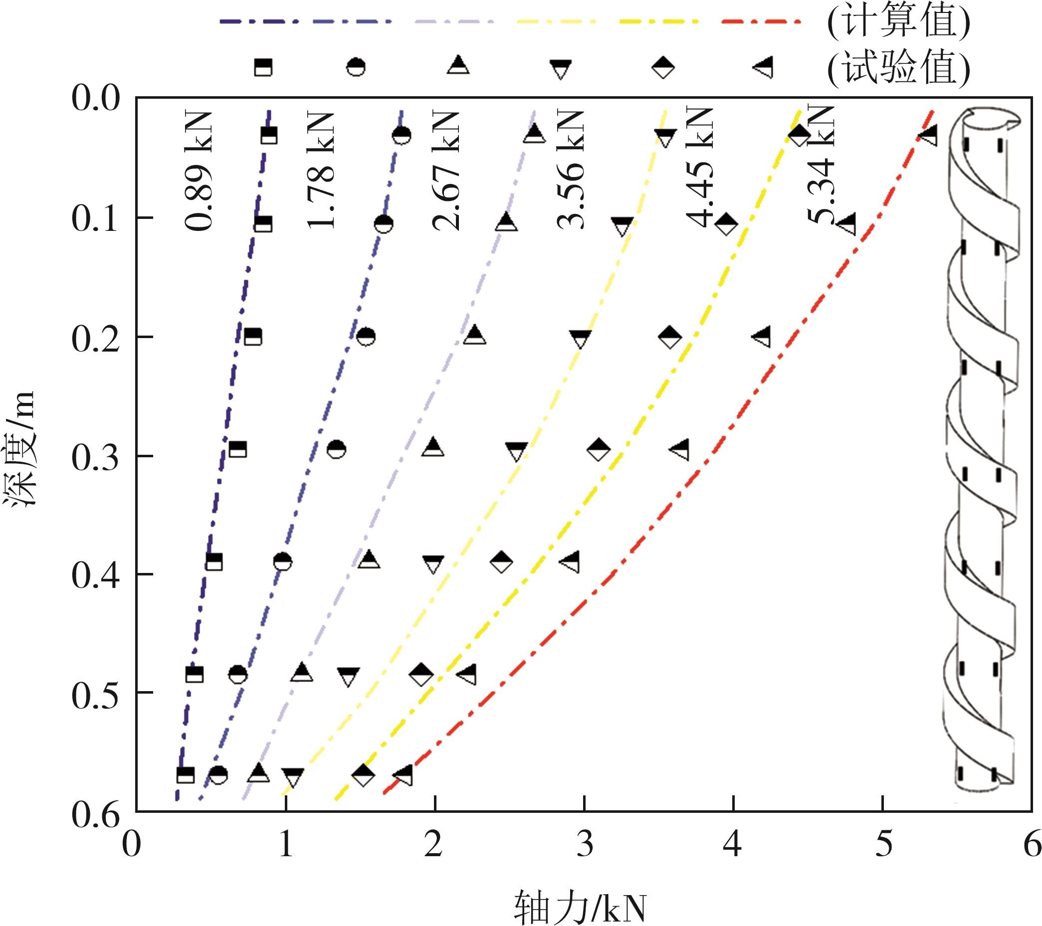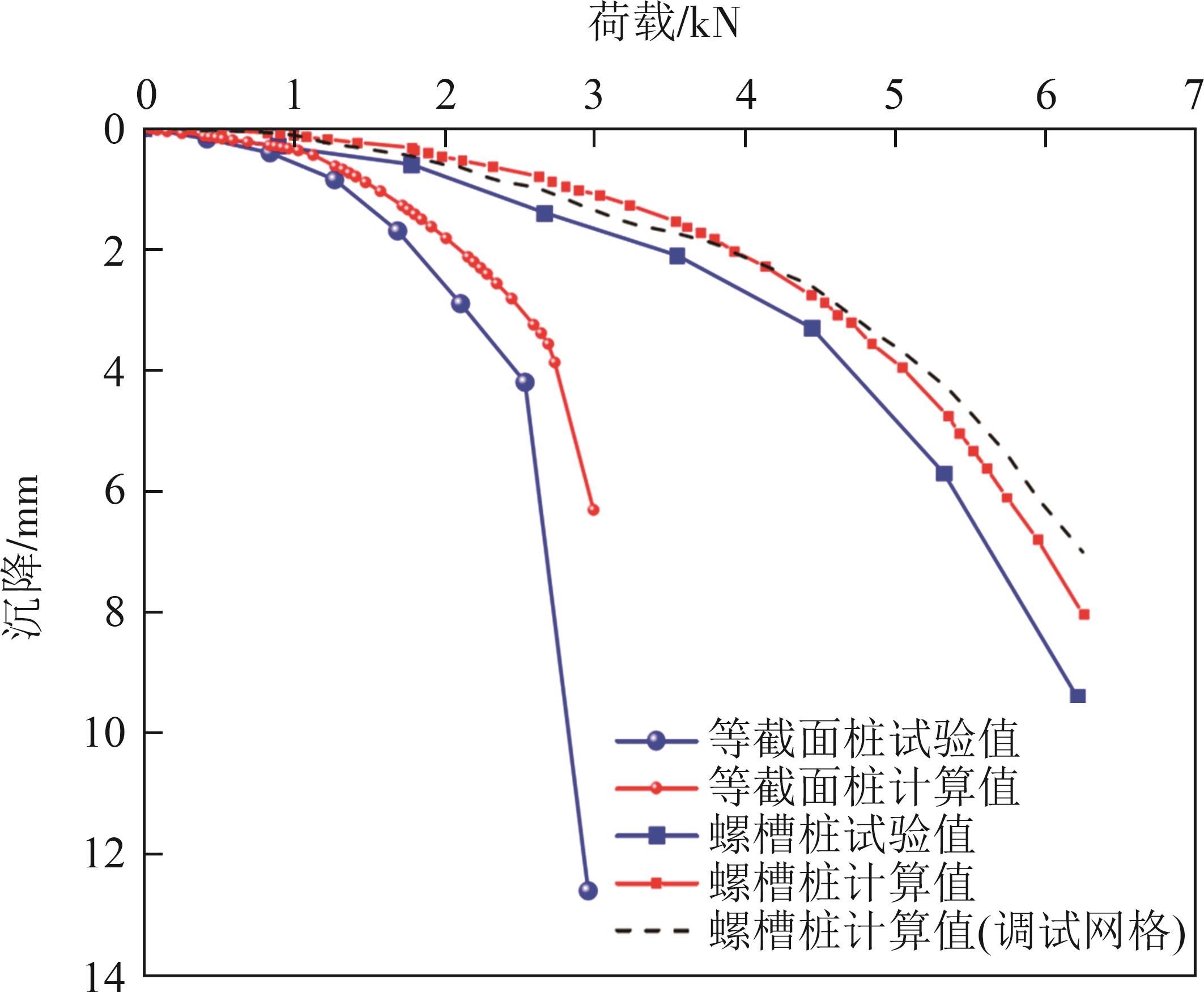 摘要:螺槽桩是一种经济低碳的新型预制桩,通过桩侧特殊螺槽结构改善桩体承载性能. 通过模型试验与有限元计算,分析螺槽桩与等截面桩荷载传递特性差异,引入材料利用率概念,探讨不同螺槽参数下桩体承载特性. 结果表明:螺槽桩竖向沉降曲线呈缓变趋势,其极限承载力为等截面桩的1.85倍,材料利用率为等截面桩的2.85倍;螺旋形槽体构造增大了桩-土接触面积,提升了侧阻力,螺槽端与桩端形成多点端阻承载模式增强端承力;增加螺槽内径桩体承载能力(提升了337.2%),然而材料利用率比下降了133.8%;存在最优螺槽间距使得材料高效利用,螺槽厚度与内径比大于1时会导致材料利用率降低;增大螺槽宽度可显著提升螺槽桩承载能力,但会导致材料利用率出现先增后减的趋势.