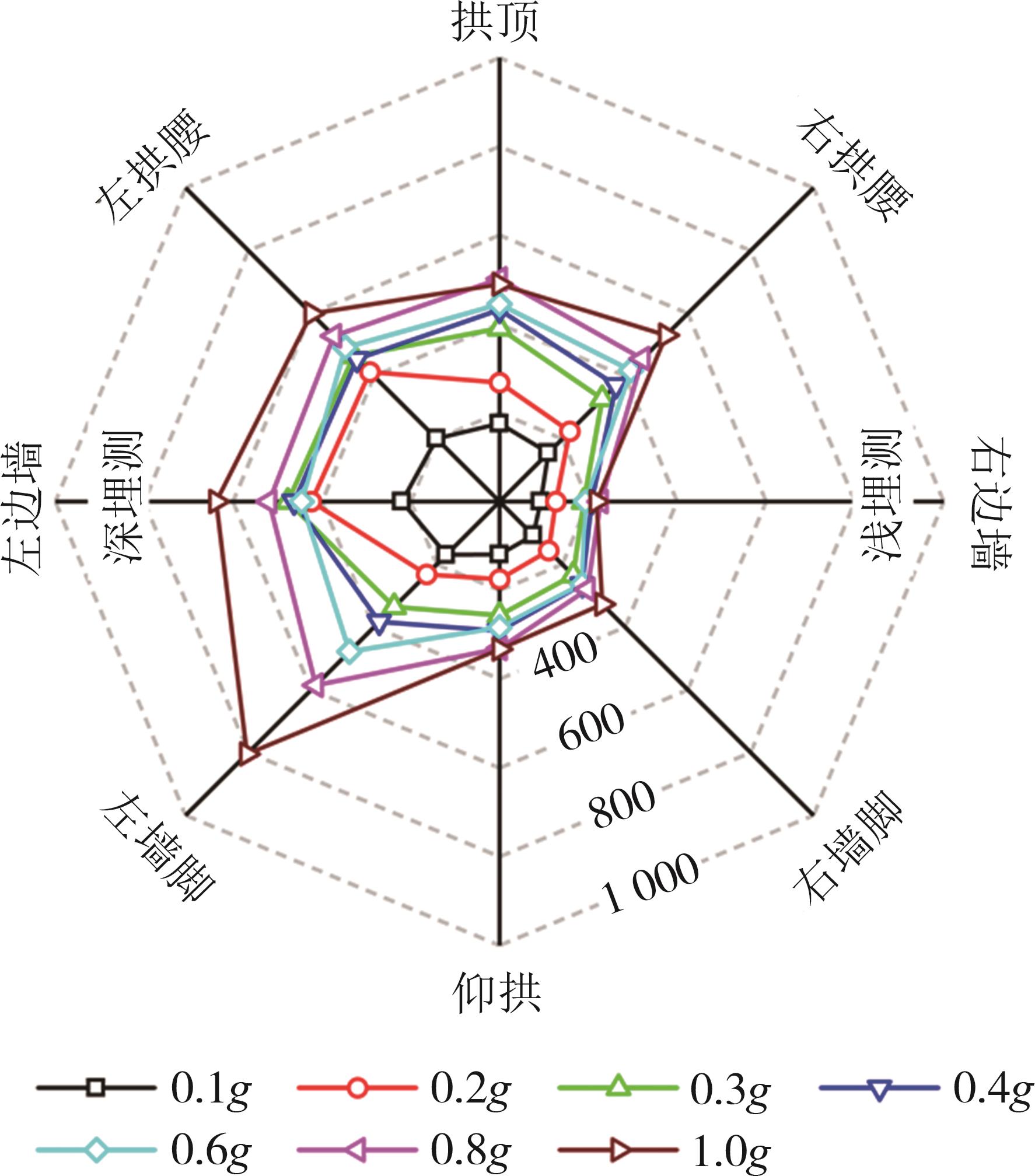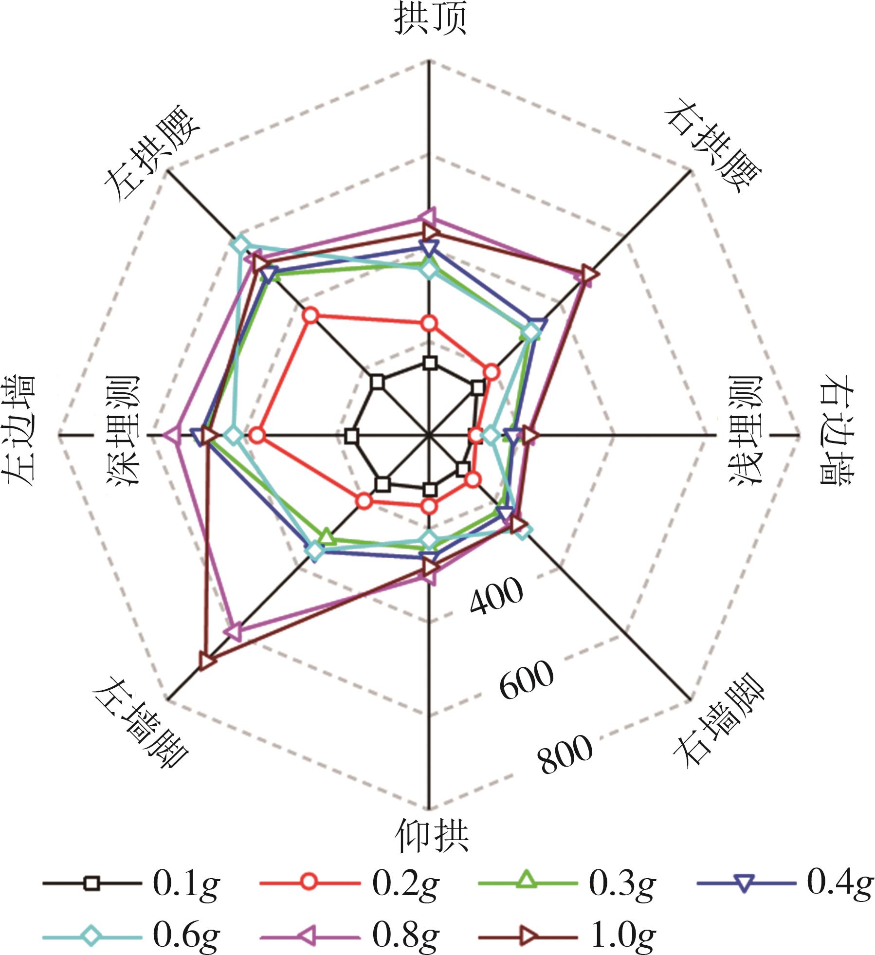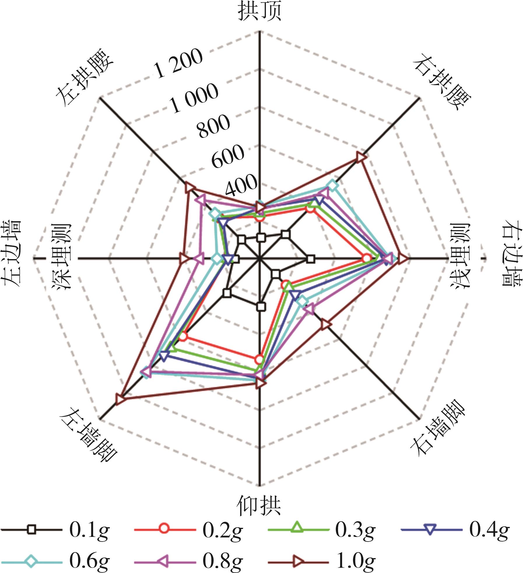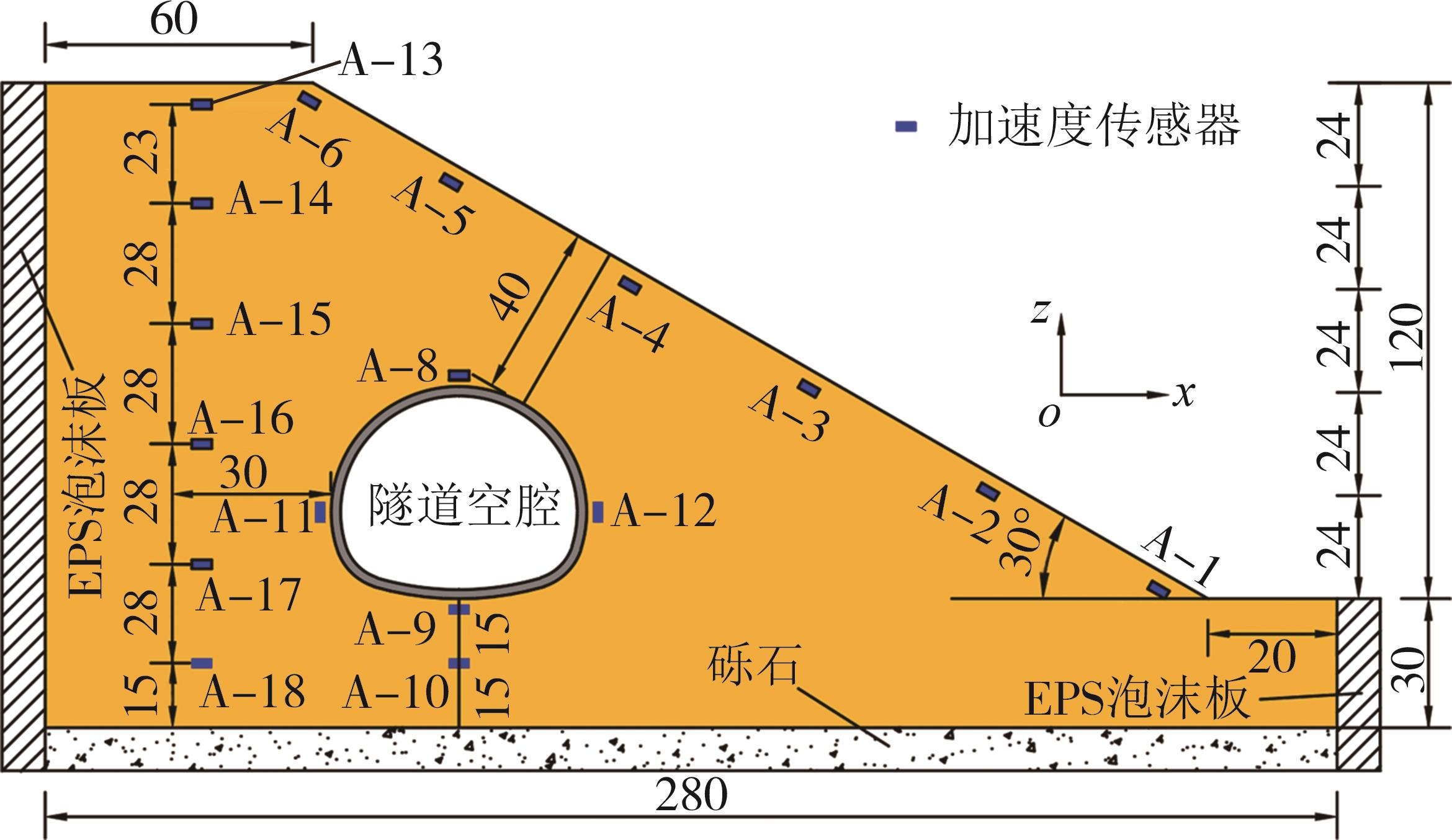 摘要:黄土高原地区强震频发,常发生大规模密集型黄土滑坡. 浅埋偏压黄土隧道因覆盖层厚度小、坡面临空面等因素的影响,地震动放大效应明显,易发生严重震害. 本文基于大型振动台模型试验,对浅埋偏压大断面黄土隧道的震害特征和震害机制进行了系统研究. 结果表明,隧道空腔的存在对坡面加速度放大系数的分布特征影响较大,影响区域主要集中在0.25H~0.80H范围内;坡体内水平向加速度放大系数随高程的增大呈非线性增长趋势,约2/3坡高以下区域加速度放大效应较弱,约2/3坡高以上区域加速度放大效应显著增强;在水平向地震动作用下,偏压隧道衬砌沿右拱腰至左墙脚以及左拱腰至右墙脚共轭45°方向形成贯通拉压裂缝,震害严重;小角度偏压条件下,坡体内部产生了从坡顶贯通至隧道深埋侧墙脚处的连续滑裂面,坡体表面和坡顶产生了局部连续滑移和局部坍塌;隧道空腔的动力放大作用是坡表局部滑裂面形成的主要原因,而地震惯性力与岩土体重力产生的斜向合力是隧道衬砌深埋侧挤入变形、浅埋侧挤出变形的根本原因. 本研究可为浅埋偏压黄土隧道的抗震设计提供参考.