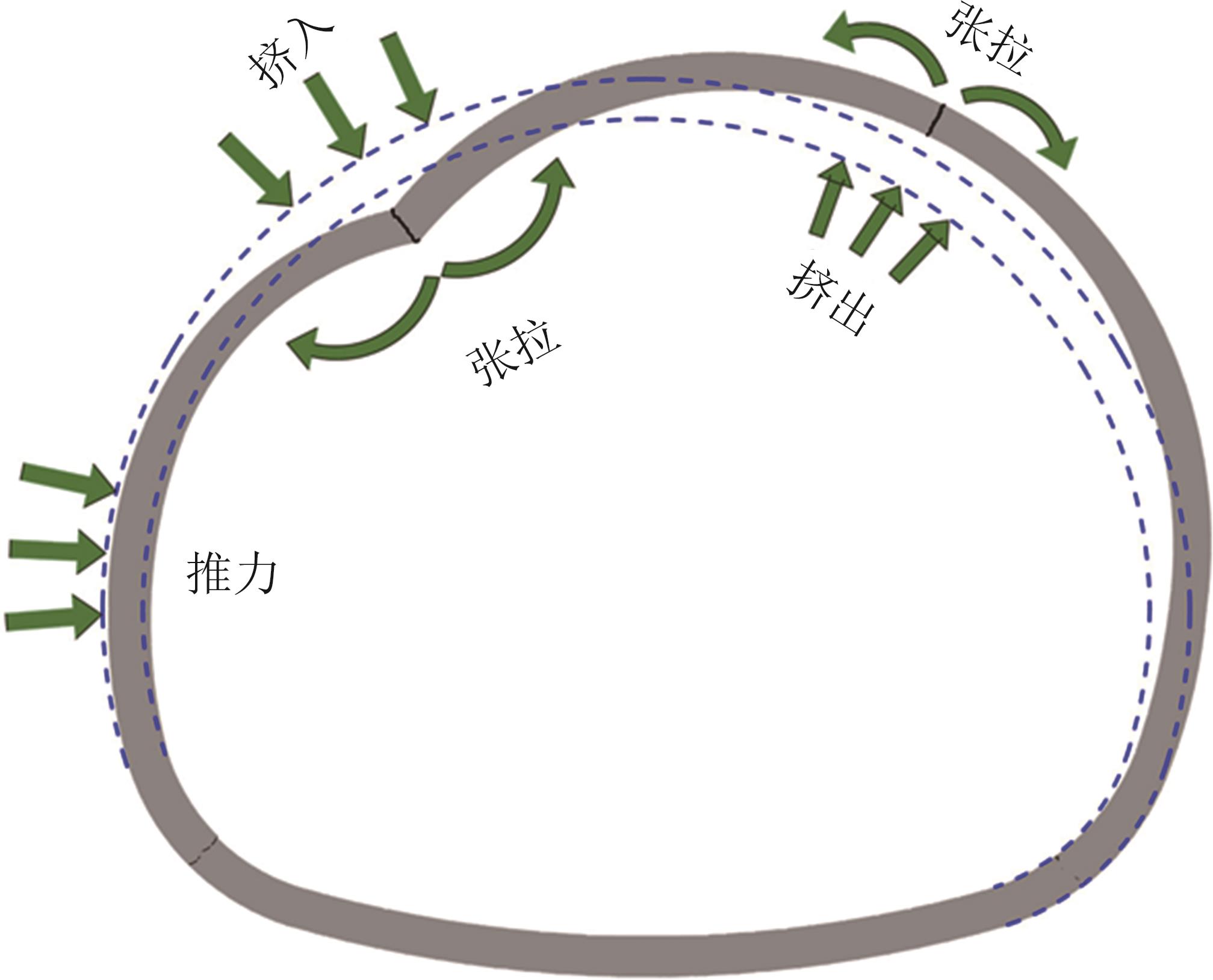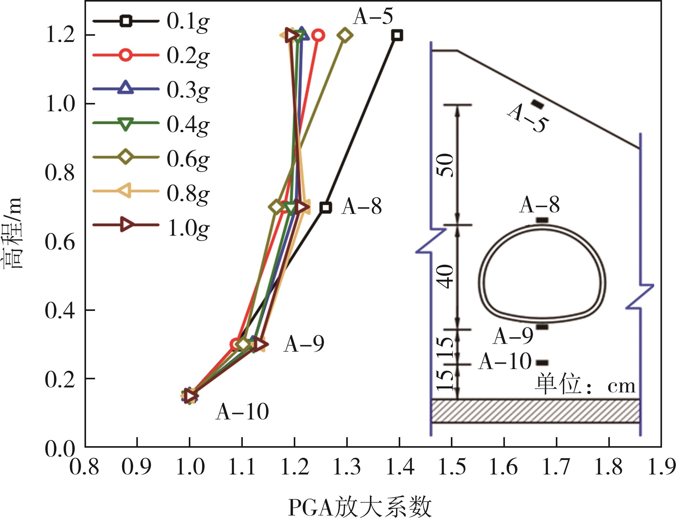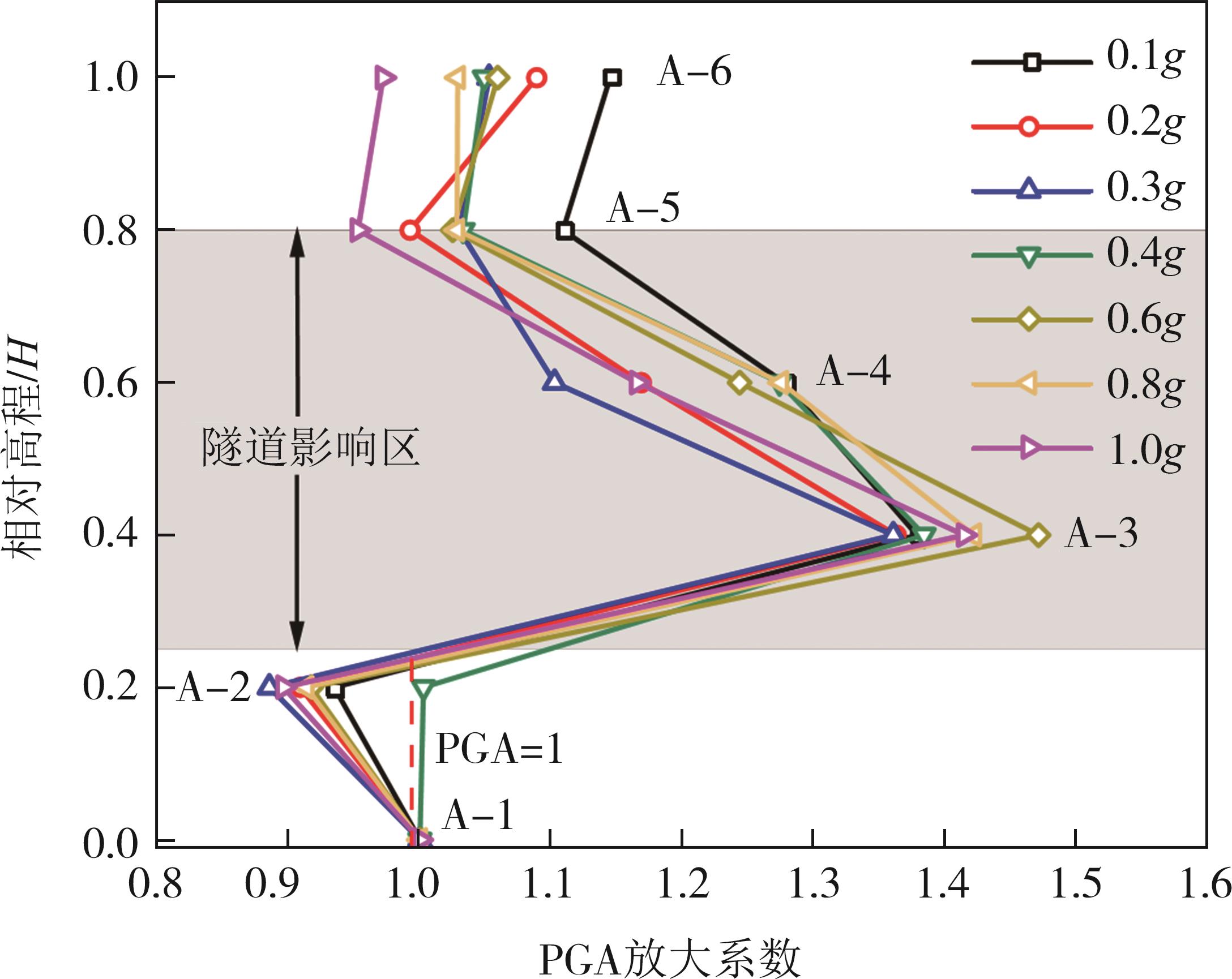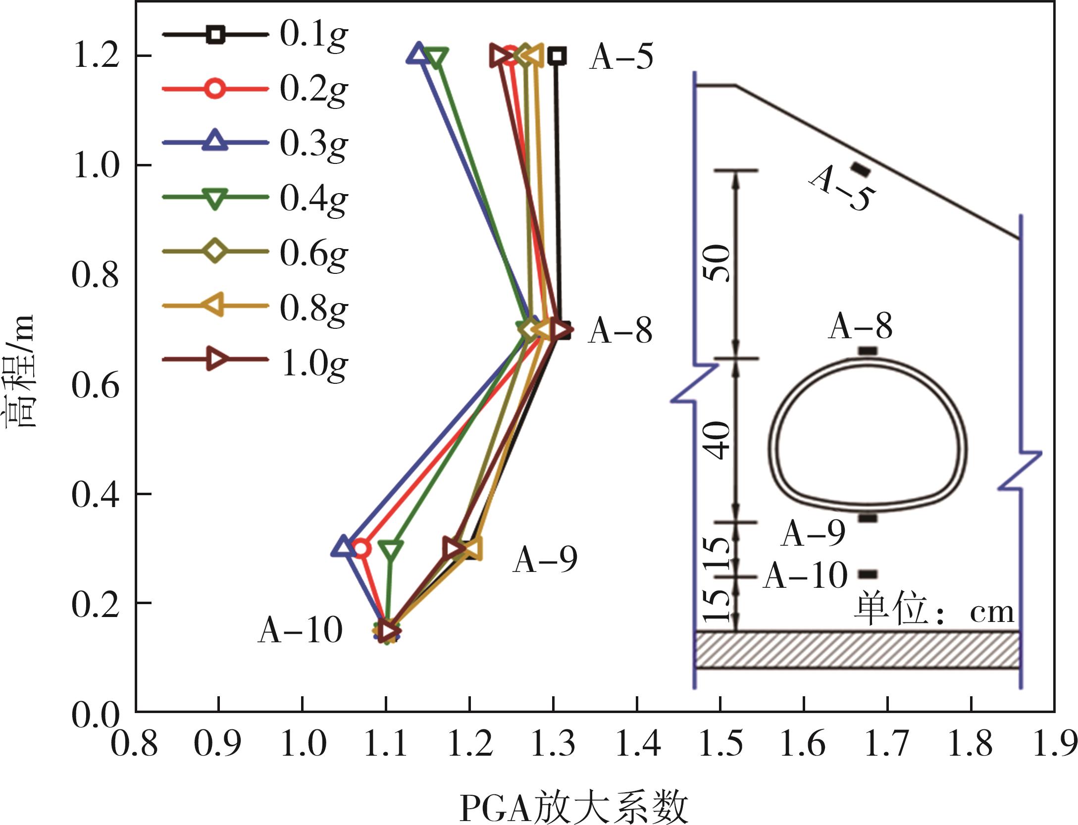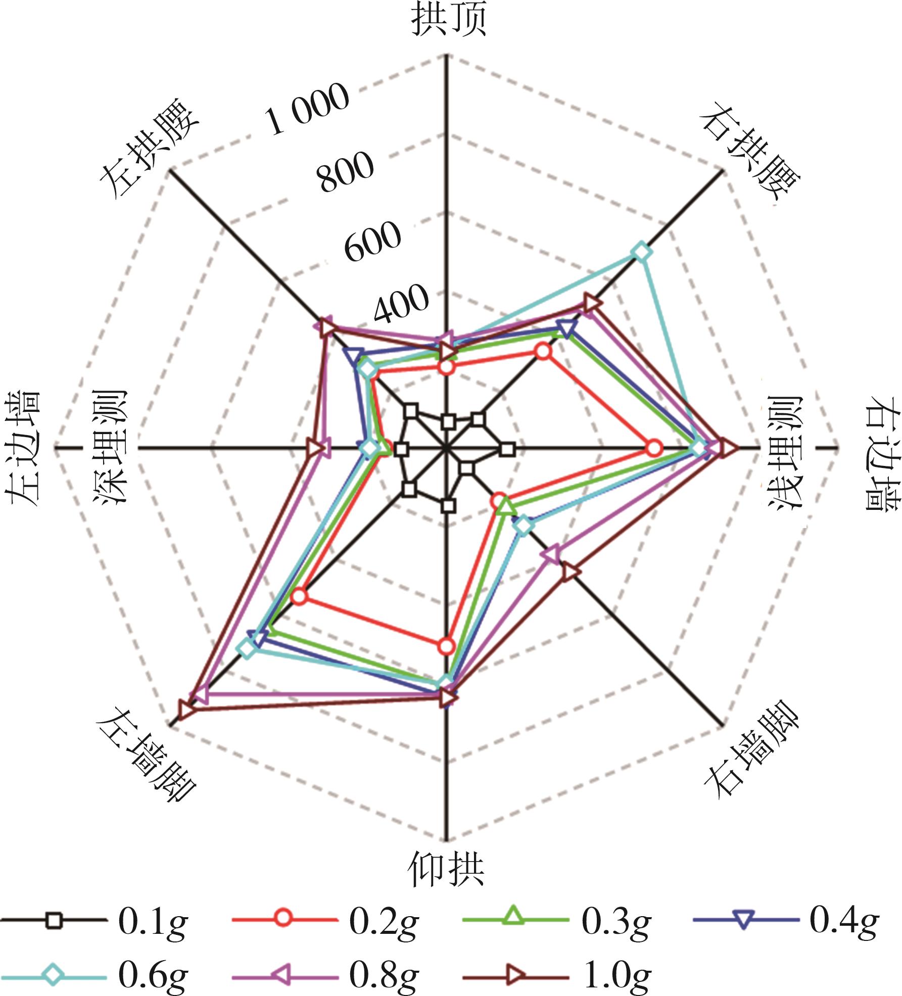 摘要:黄土高原地区强震频发,常发生大规模密集型黄土滑坡. 浅埋偏压黄土隧道因覆盖层厚度小、坡面临空面等因素的影响,地震动放大效应明显,易发生严重震害. 本文基于大型振动台模型试验,对浅埋偏压大断面黄土隧道的震害特征和震害机制进行了系统研究. 结果表明,隧道空腔的存在对坡面加速度放大系数的分布特征影响较大,影响区域主要集中在0.25H~0.80H范围内;坡体内水平向加速度放大系数随高程的增大呈非线性增长趋势,约2/3坡高以下区域加速度放大效应较弱,约2/3坡高以上区域加速度放大效应显著增强;在水平向地震动作用下,偏压隧道衬砌沿右拱腰至左墙脚以及左拱腰至右墙脚共轭45°方向形成贯通拉压裂缝,震害严重;小角度偏压条件下,坡体内部产生了从坡顶贯通至隧道深埋侧墙脚处的连续滑裂面,坡体表面和坡顶产生了局部连续滑移和局部坍塌;隧道空腔的动力放大作用是坡表局部滑裂面形成的主要原因,而地震惯性力与岩土体重力产生的斜向合力是隧道衬砌深埋侧挤入变形、浅埋侧挤出变形的根本原因. 本研究可为浅埋偏压黄土隧道的抗震设计提供参考.