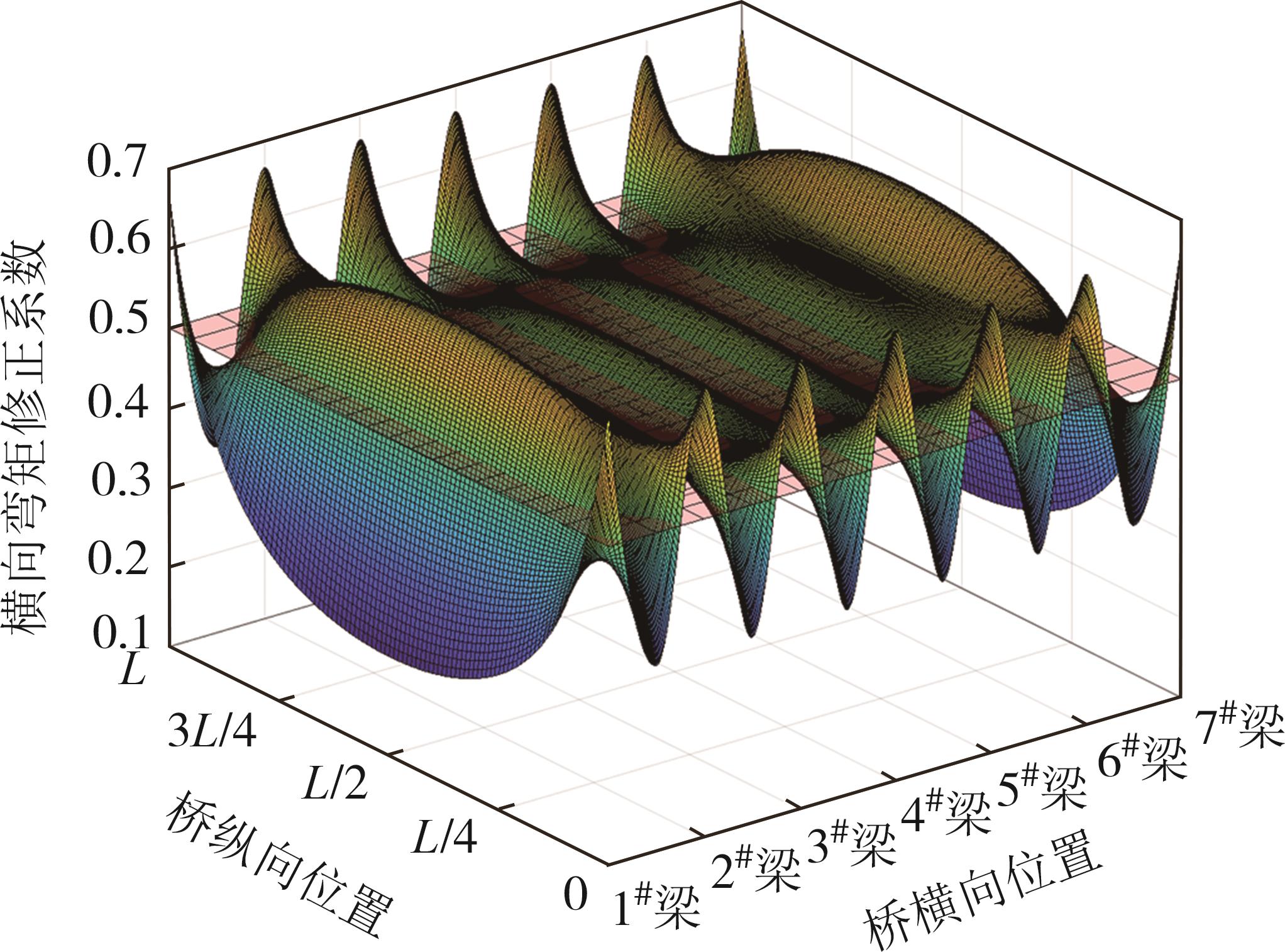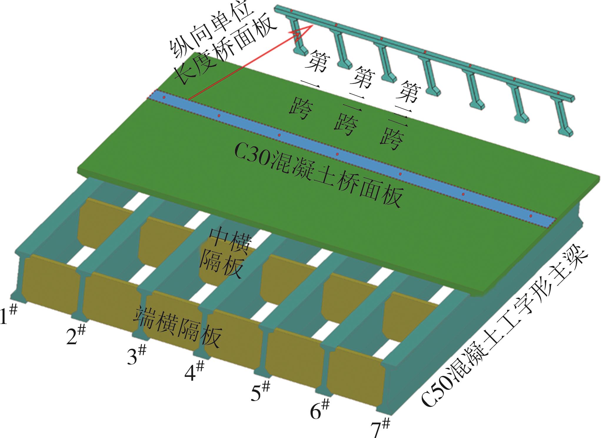 摘要:基于有效工作宽度概念,将桥面板简化成多跨连续梁,主梁对桥面板的约束等效成抗弯弹簧;分析桥面板内某跨的受力性能时,将此跨结构等效成单跨梁,其两侧桥面板对其弯曲约束也等效成抗弯弹簧,建立了主梁扭转和桥面板边跨对等效单跨梁约束的综合等效刚度系数递推公式. 分析了综合等效刚度系数随主梁抗扭刚度与桥面板横向抗弯刚度比的变化规律,导出了两侧抗弯弹簧约束下等效单跨梁在均布荷载、集中荷载和区间均布荷载作用下的支点和跨中的转角、弯矩计算公式,为多跨连续桥面板横向弯矩计算提供了一种简化理论. 结合预应力混凝土工形组合梁为工程背景,分析了模拟自重均布荷载作用、汽车区间均布荷载作用下的桥面板横向弯矩和横向弯矩修正系数,研究了梁高、桥面板厚度、主梁片数和荷载等参数对横向弯矩修正系数的影响. 计算结果表明,横向弯矩的本文理论结果与杆系有限元完全一致,等效单跨梁的简化方法可行;桥面板支点横向弯矩修正系数最大值为0.666 7,小于《公路钢筋混凝土及预应力混凝土桥涵设计规范》(JTG 3362—2018,简称《公预规》)的规定值0.7. 当t/h(桥面板厚度t与主梁高度h之比)<1/4时,横向弯矩修正系数最大值为0.670 3,大于《公预规》的规定值0.5,规范结果偏不安全;当t/h>1/4时,横向弯矩修正系数最大值为0.679 4,小于《公预规》的规定值0.7. 为确保桥面板设计安全,提出了《公预规》关于多跨连续桥面板横向弯矩修正方法应进行深入研究的建议.